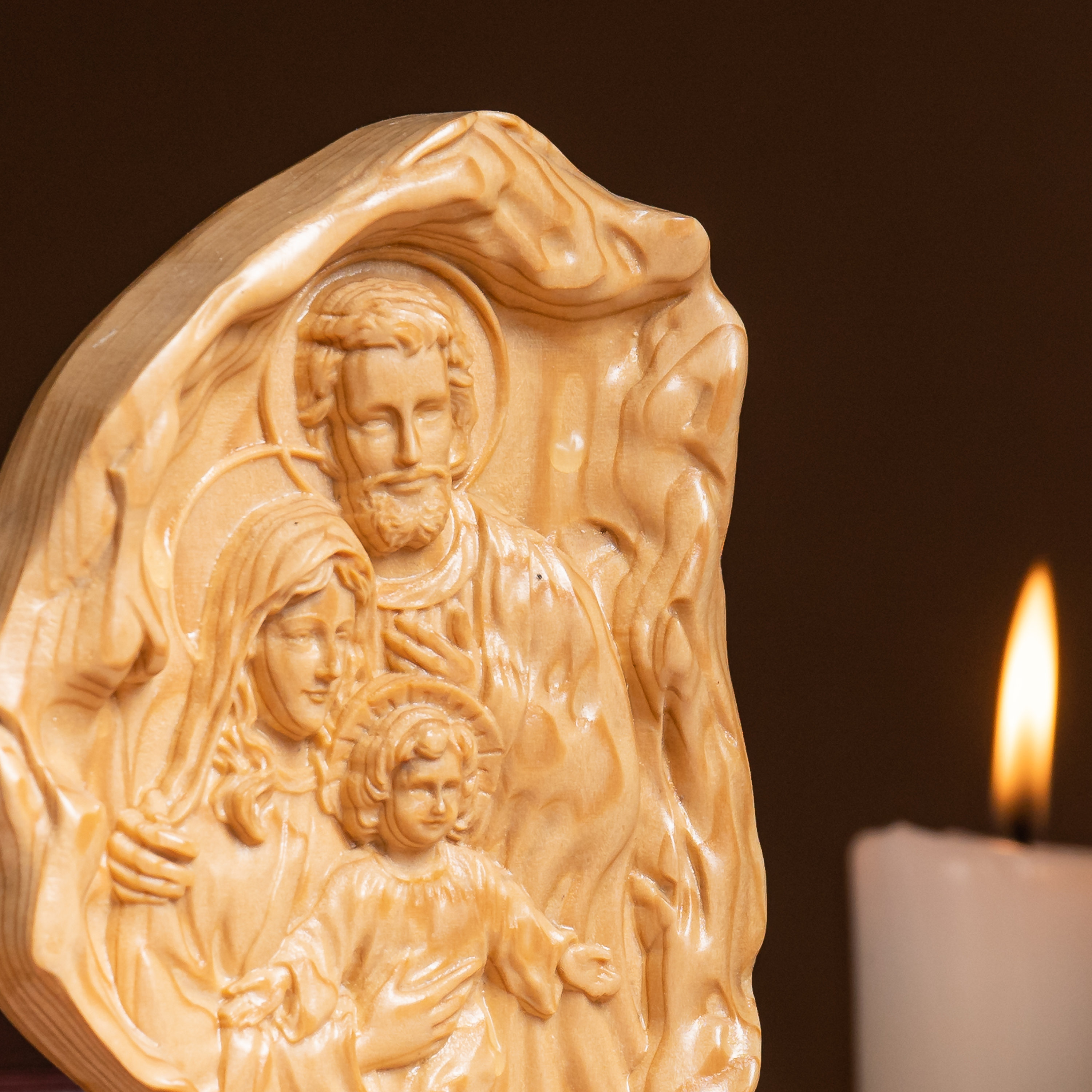 Bring the love and blessings of the Holy Family into your home with our beautiful Wood reliefs Holy Family statue. This Religious Catholic statue is the perfect addition to your home decor and makes for a thoughtful Housewarming Gift or New Home Gift. Handcrafted with care, each detail of this Wooden Religious Gift is a testament to the love and devotion of the Holy Family. Whether you're looking for a meaningful Christian Gift or simply a way to add some religious inspiration to your home, this Holy Family statue is the perfect choice. With its beautiful wood carving, it is a touching reminder of the love and protection that the Holy Family provides β€οΈ