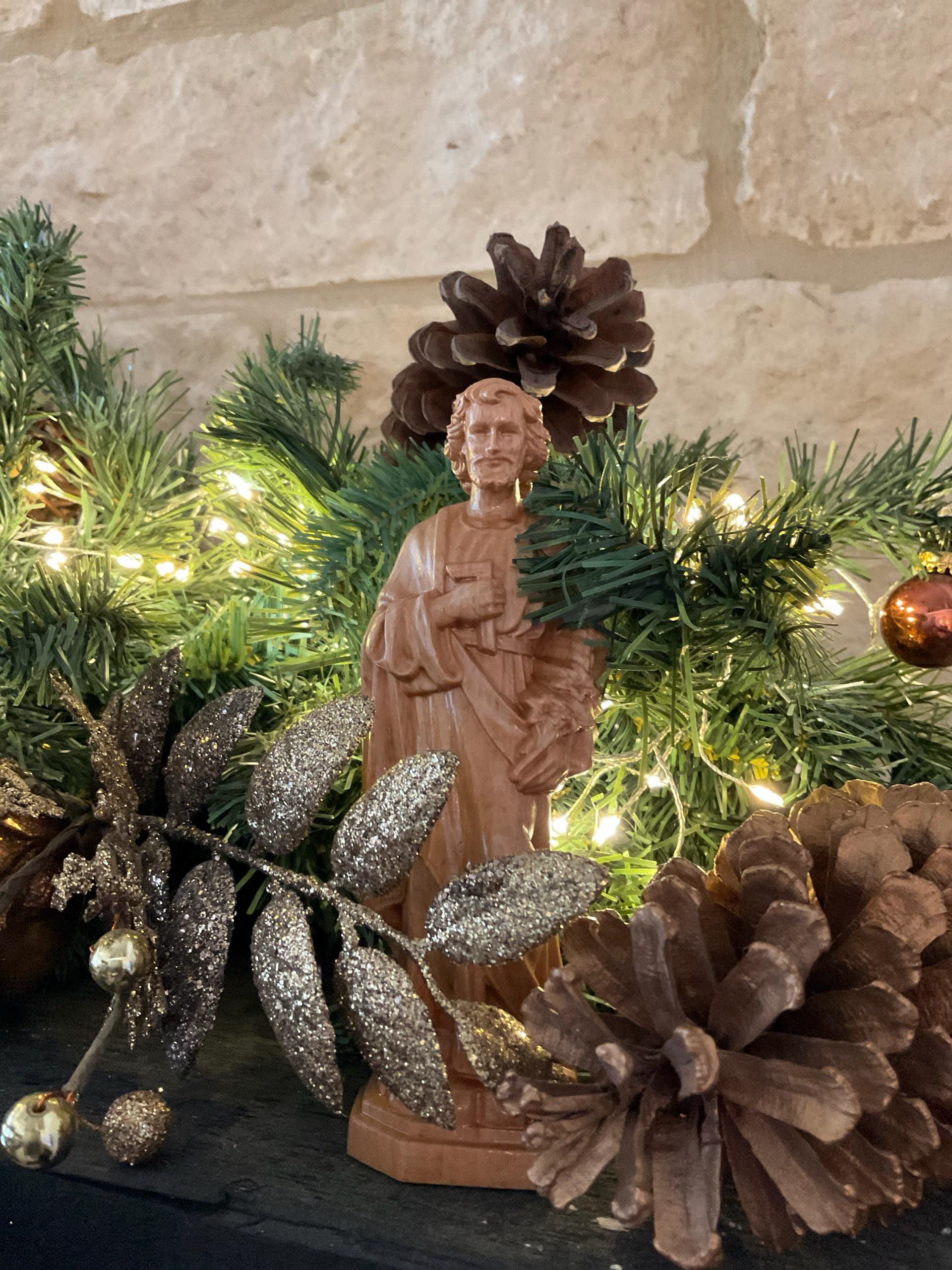 St Joseph Wooden Statue Hand Carved Catholic Gift for Husband Dad Christian Art Patron Saint of Workers Holy Family Spiritual Home Decor