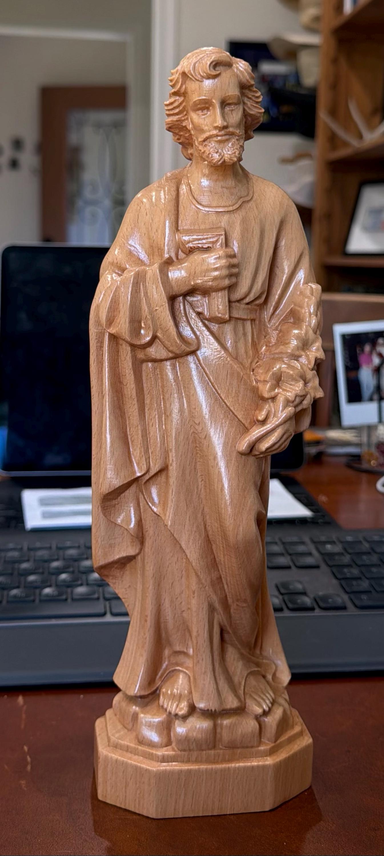 Bring a peaceful, prayerful presence into your home with this St. Joseph wooden statue, a reverent Catholic devotional piece inspired by the quiet strength of Saint Joseph, patron saint of workers and families. Hand-carved with care, this statue is made to support daily prayer, a home altar, or a meaningful faith-filled gift for someone you love.