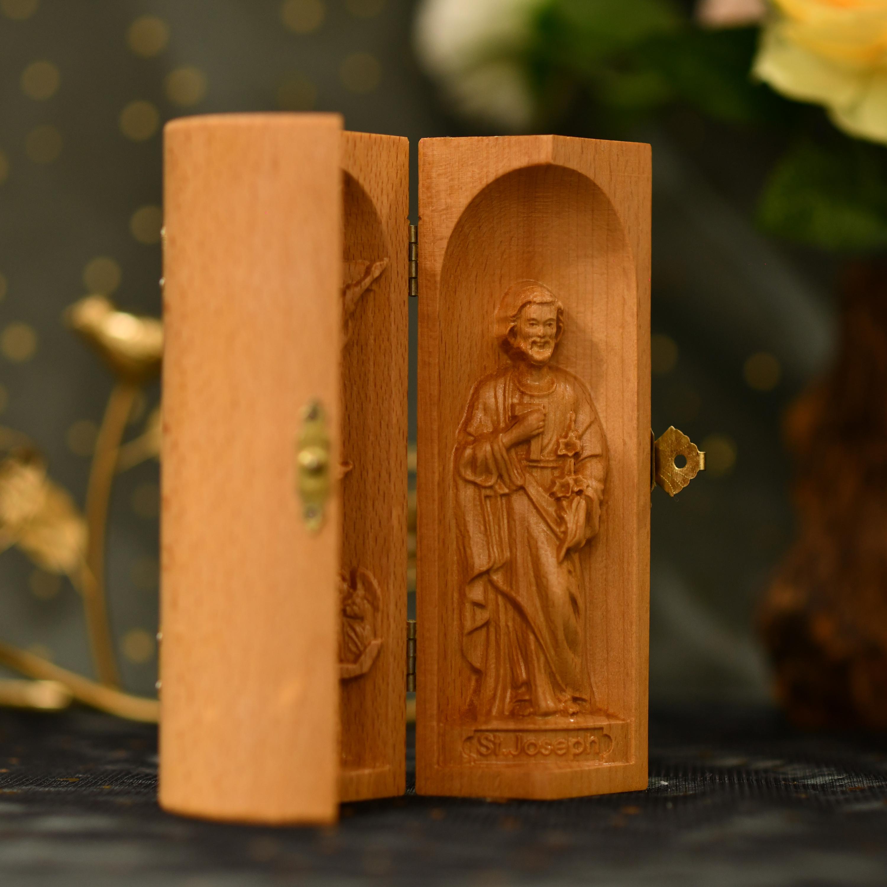 Home Portable Altar Table Catholic Triptych Art Wood Carving Catholic Collectibles Religious Triptych Catholic Gifts Housewarming Gifts