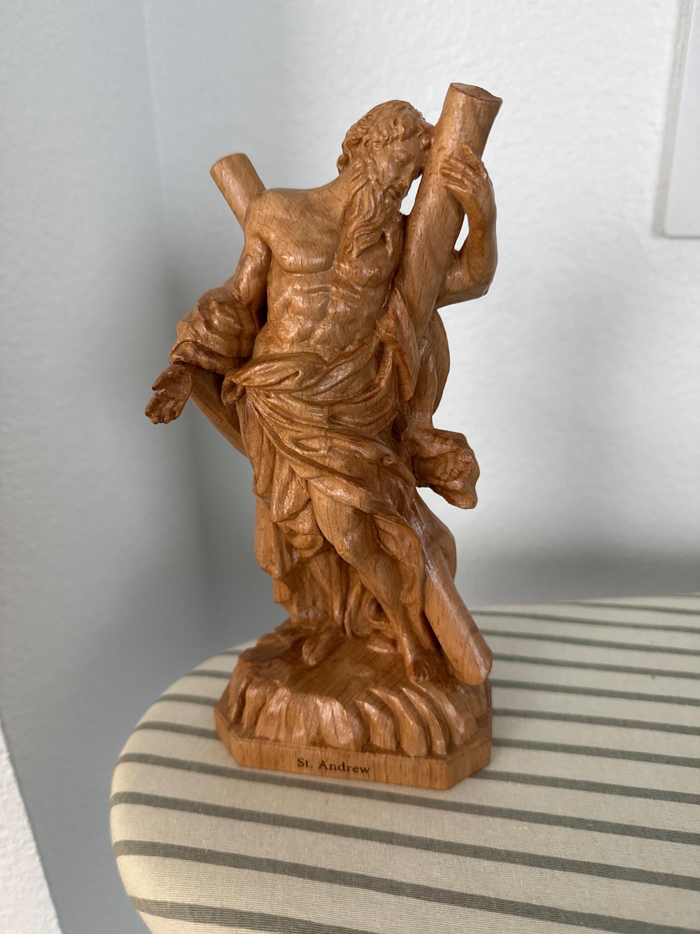 Saint Andrew Wooden Statue Catholic Apostle Figurine Jesus Disciple Religious Home Decor Christian Gift Hand Carved Wood Saint Sculpture