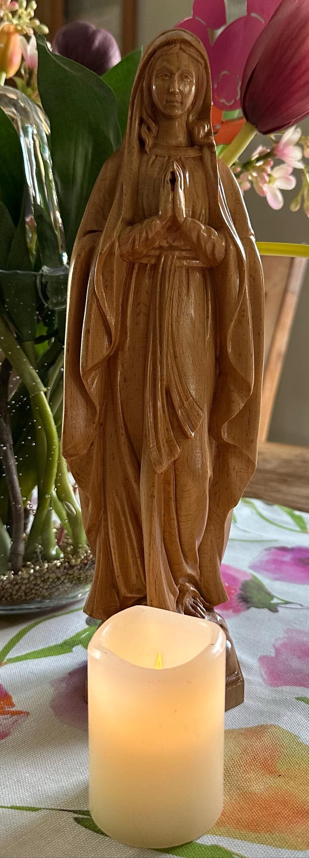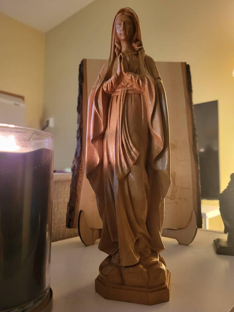 Our Lady of Lourdes Catholic Icons Wooden Virgin Mary Statue Home Decor and Gifts Catholic Art Mothers Day Gifts Handmade Gift Holiday Decor