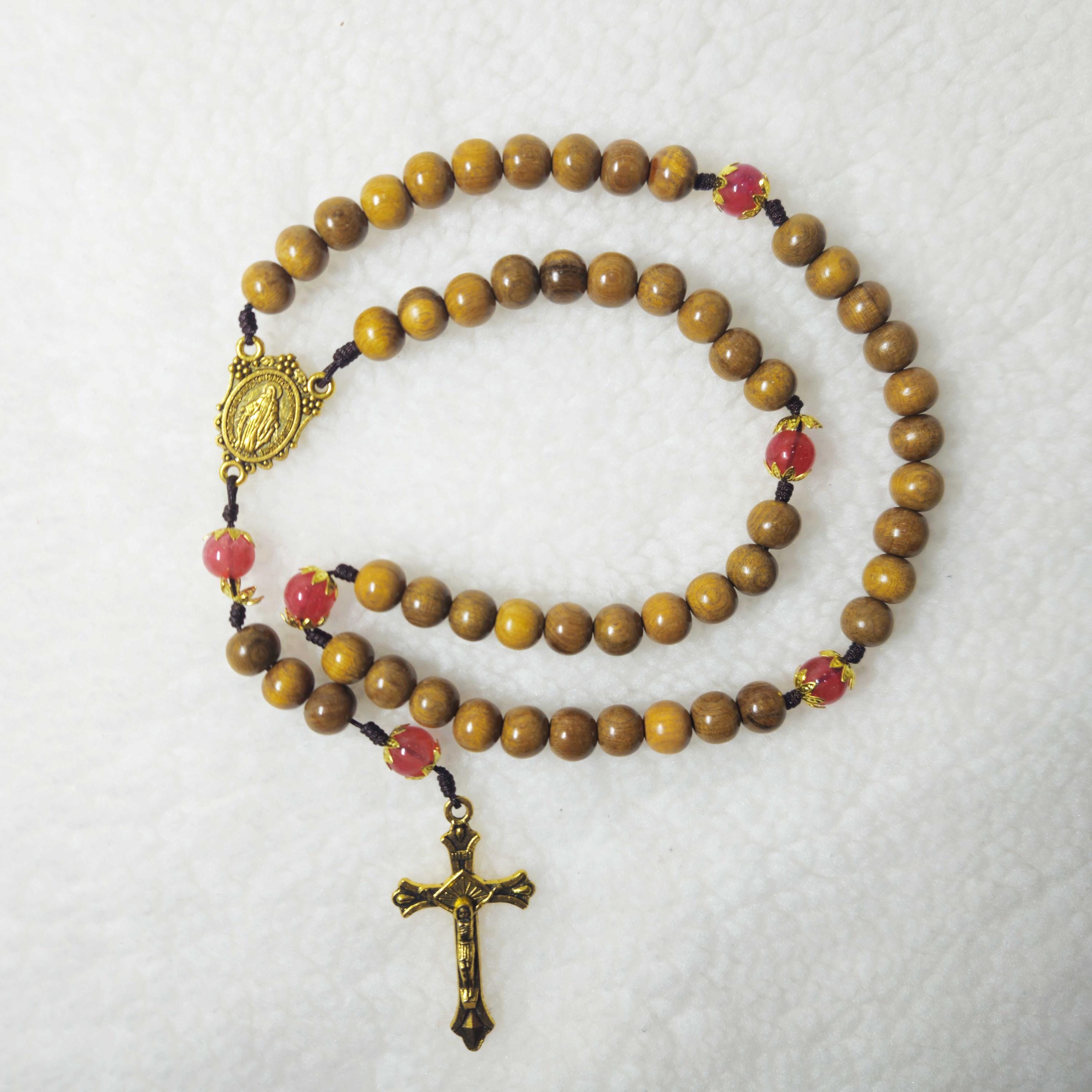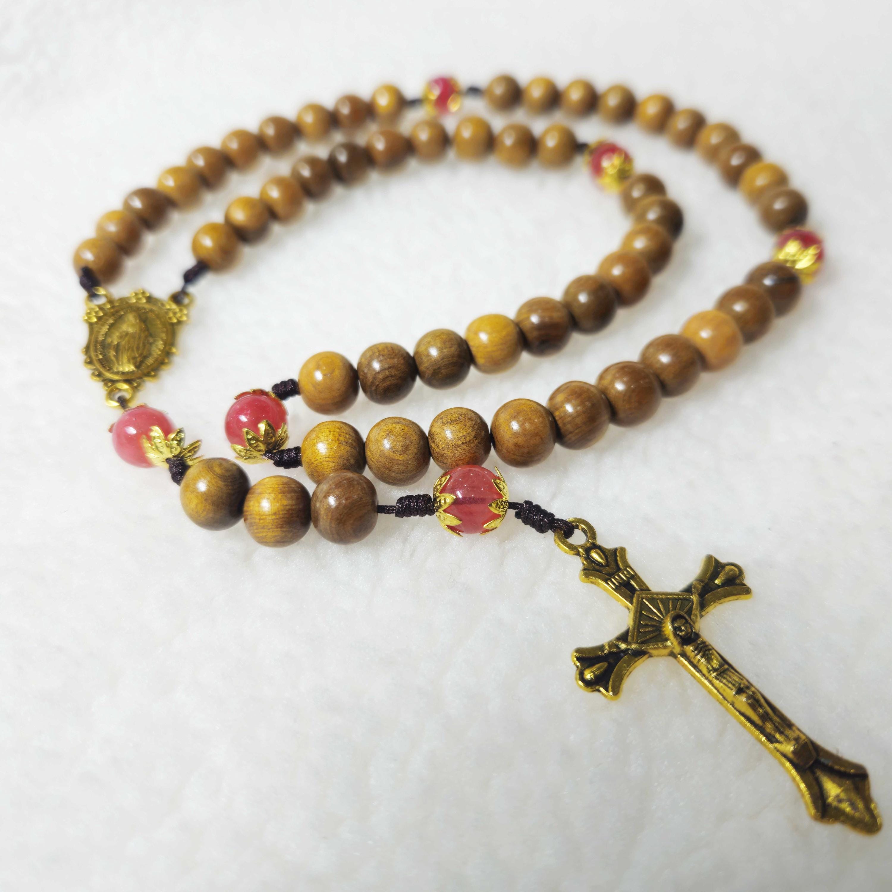 Red Gemstone Catholic Rosary, Paracord Rosary, Wood Bead rosary, Pardon Crucifix Rosary, Catholic Gifts, First Communion Gift