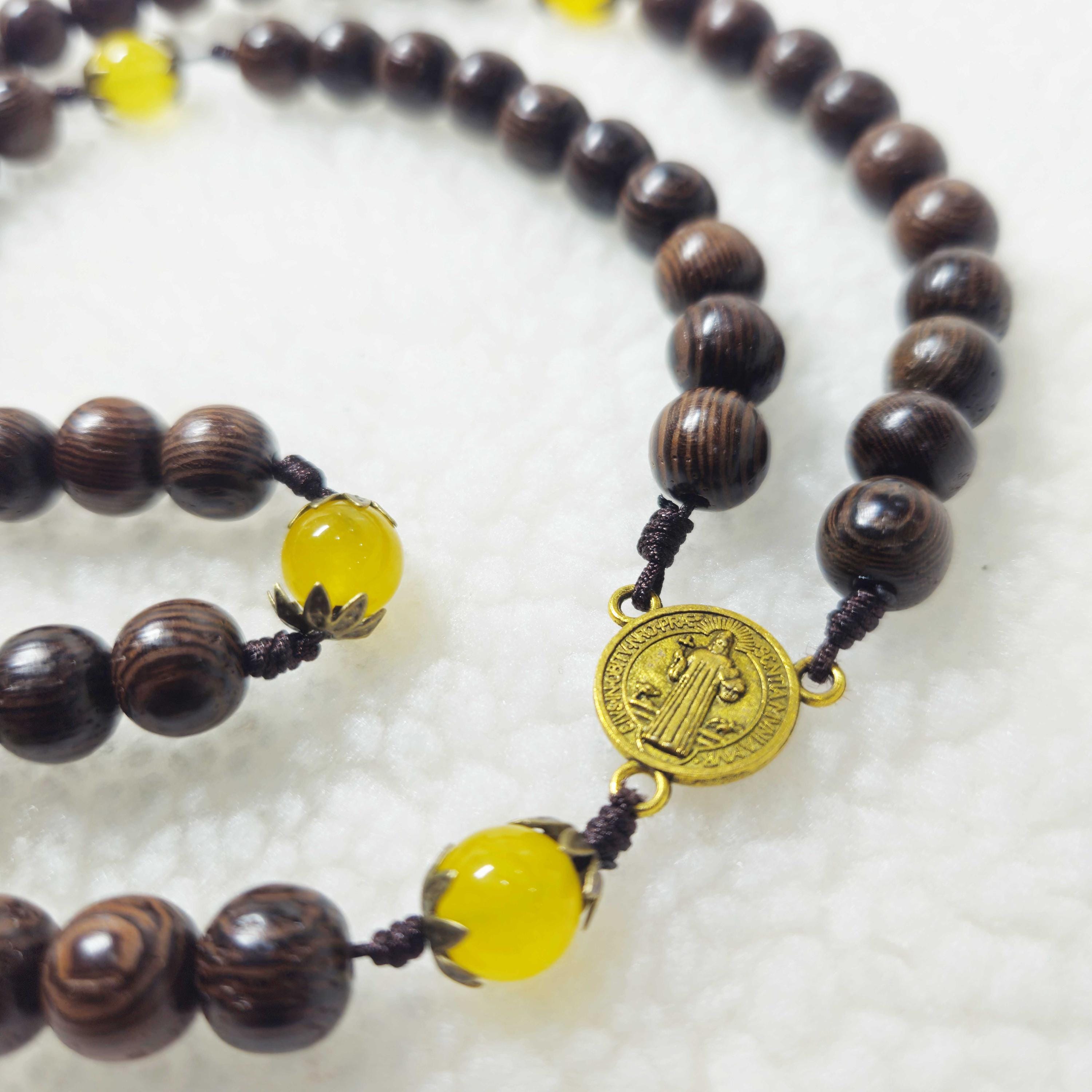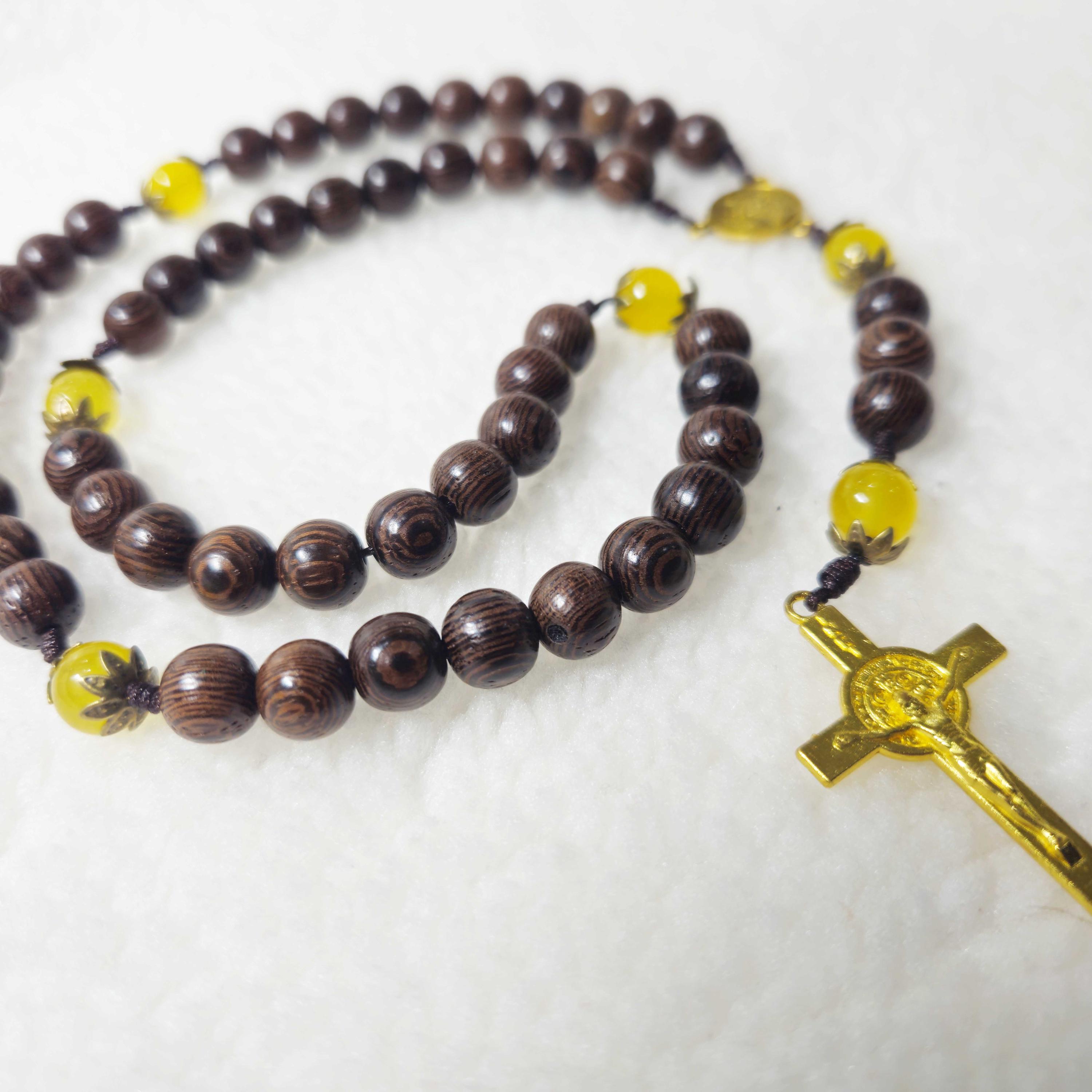 Catholic Rosary with black wooden beads and yellow gemstone beads, Paracord Rosary, Wood Bead rosary, Pardon Crucifix Rosary, Catholic Gifts