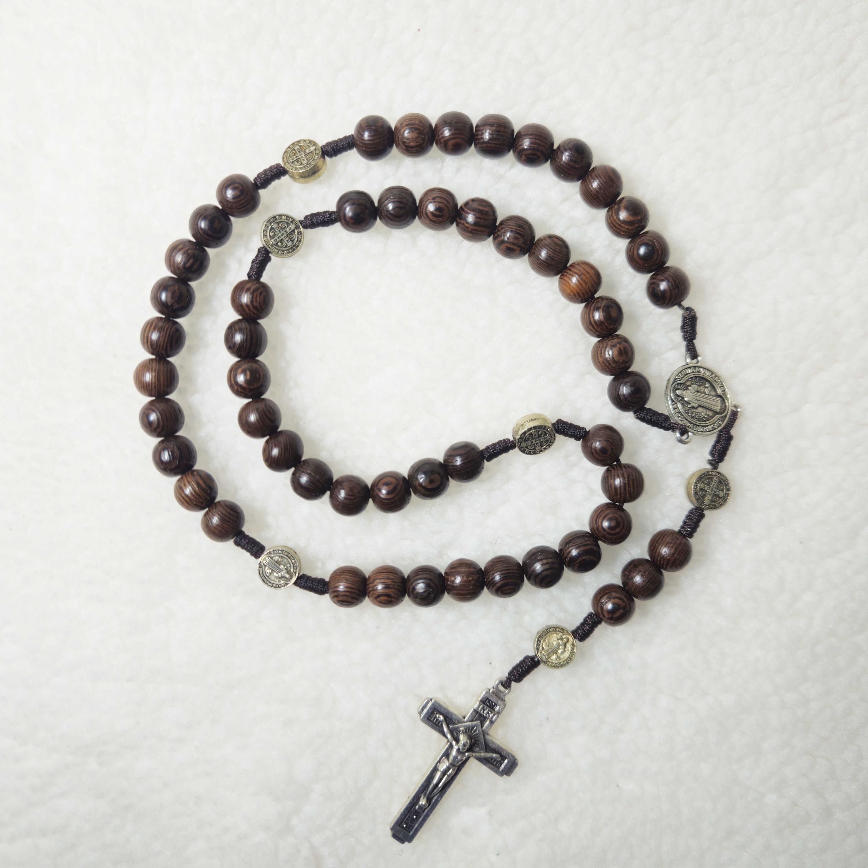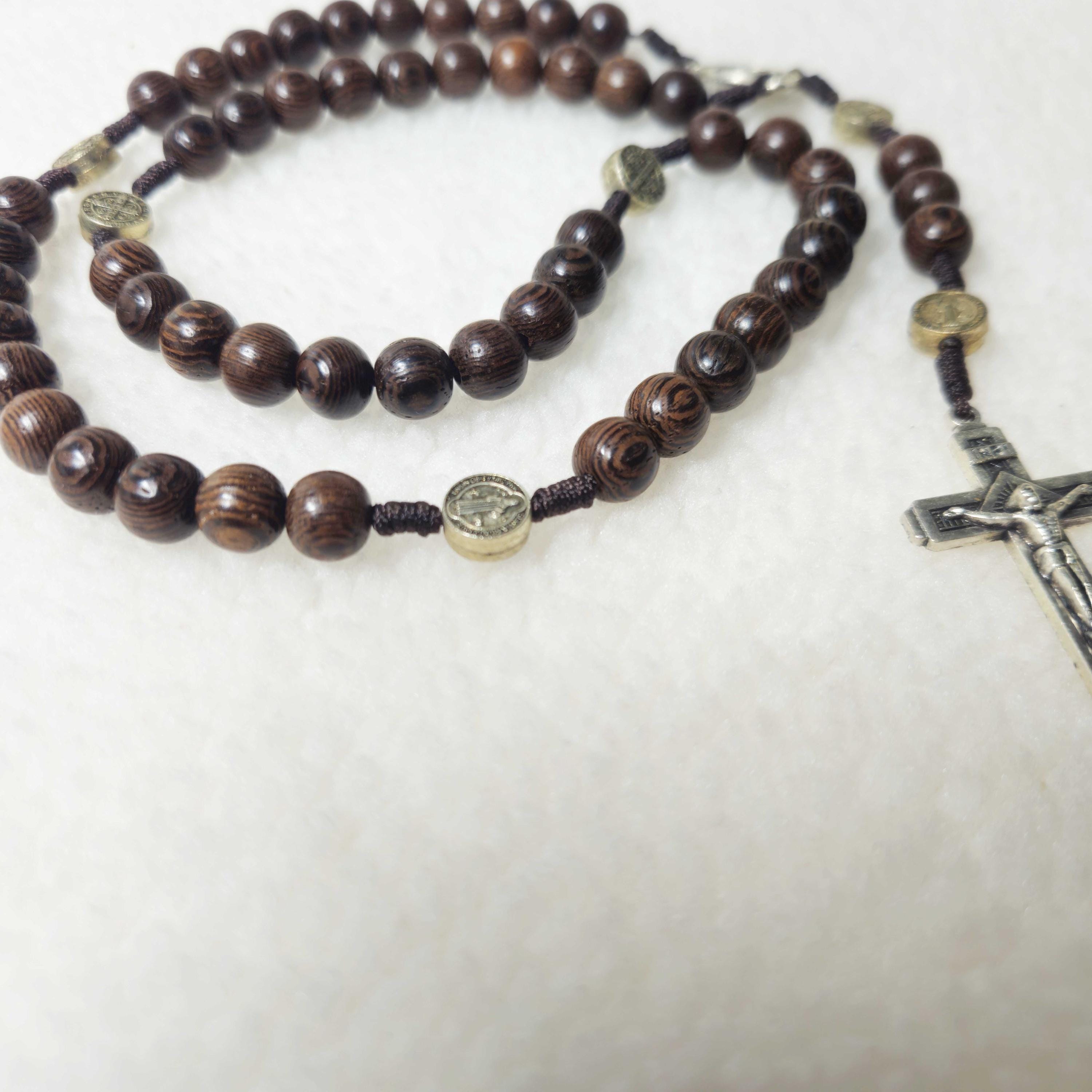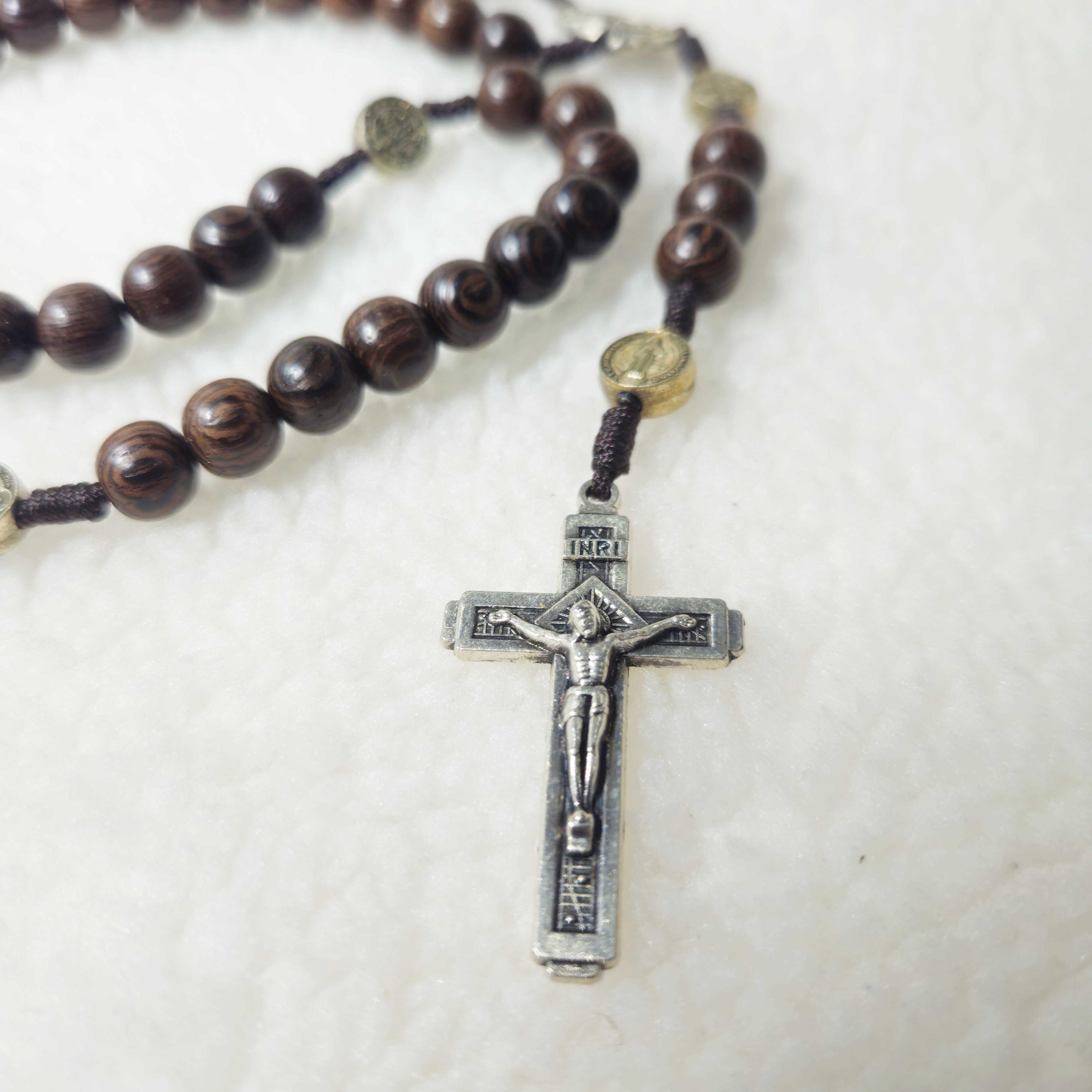 Immerse yourself in the craftsmanship of this intricately fashioned Catholic rosary, distinguished by its remarkable elegance and unique nature. Formed from 8mm beads of green cypress wood, this rosary truly encapsulates devotion. Enhanced by a 1.6-inch crucifix, the beads are expertly threaded and carefully knotted onto micro cord, ensuring both lasting durability and captivating visual appeal.