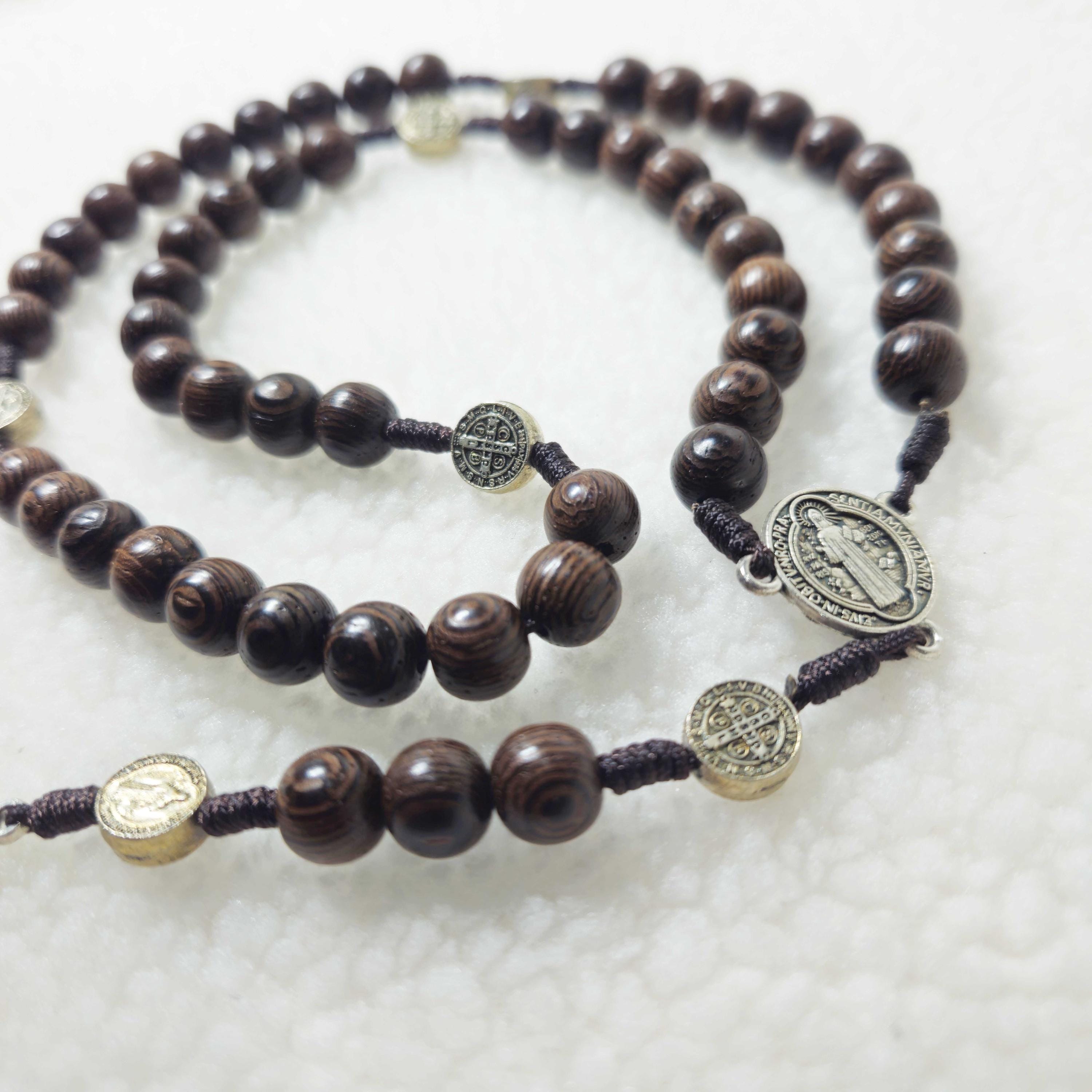 Catholic Rosary with black wooden beads, designed for Catholic believers, Paracord Rosary, Wood Bead rosary, Catholic Gifts, Rosary for Men