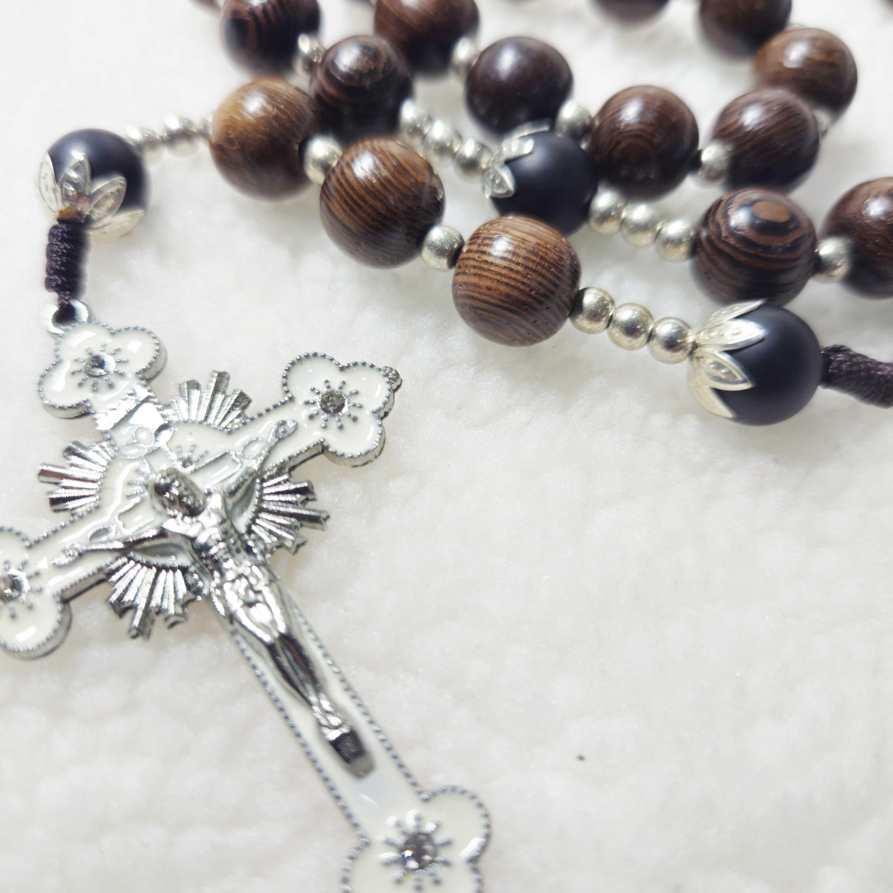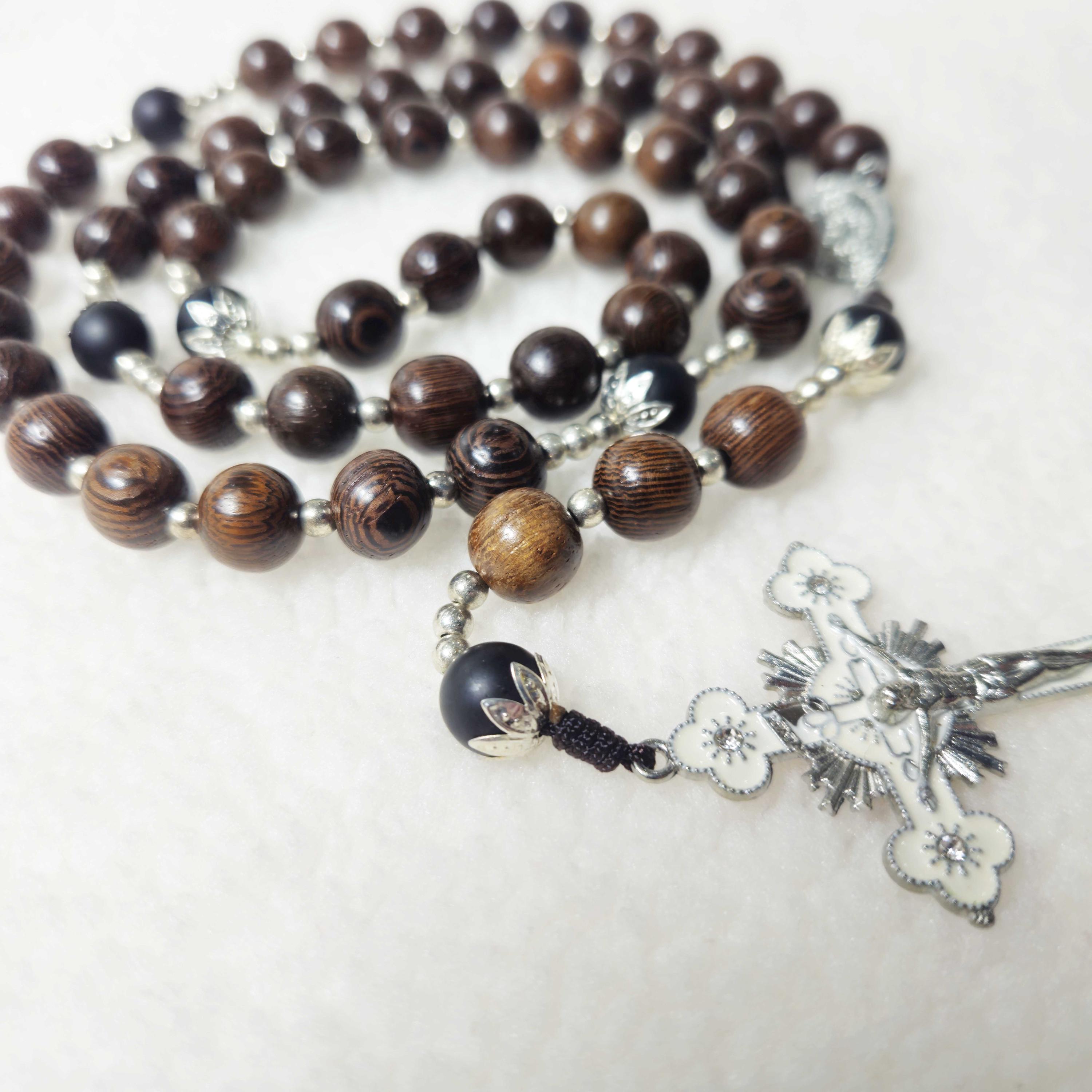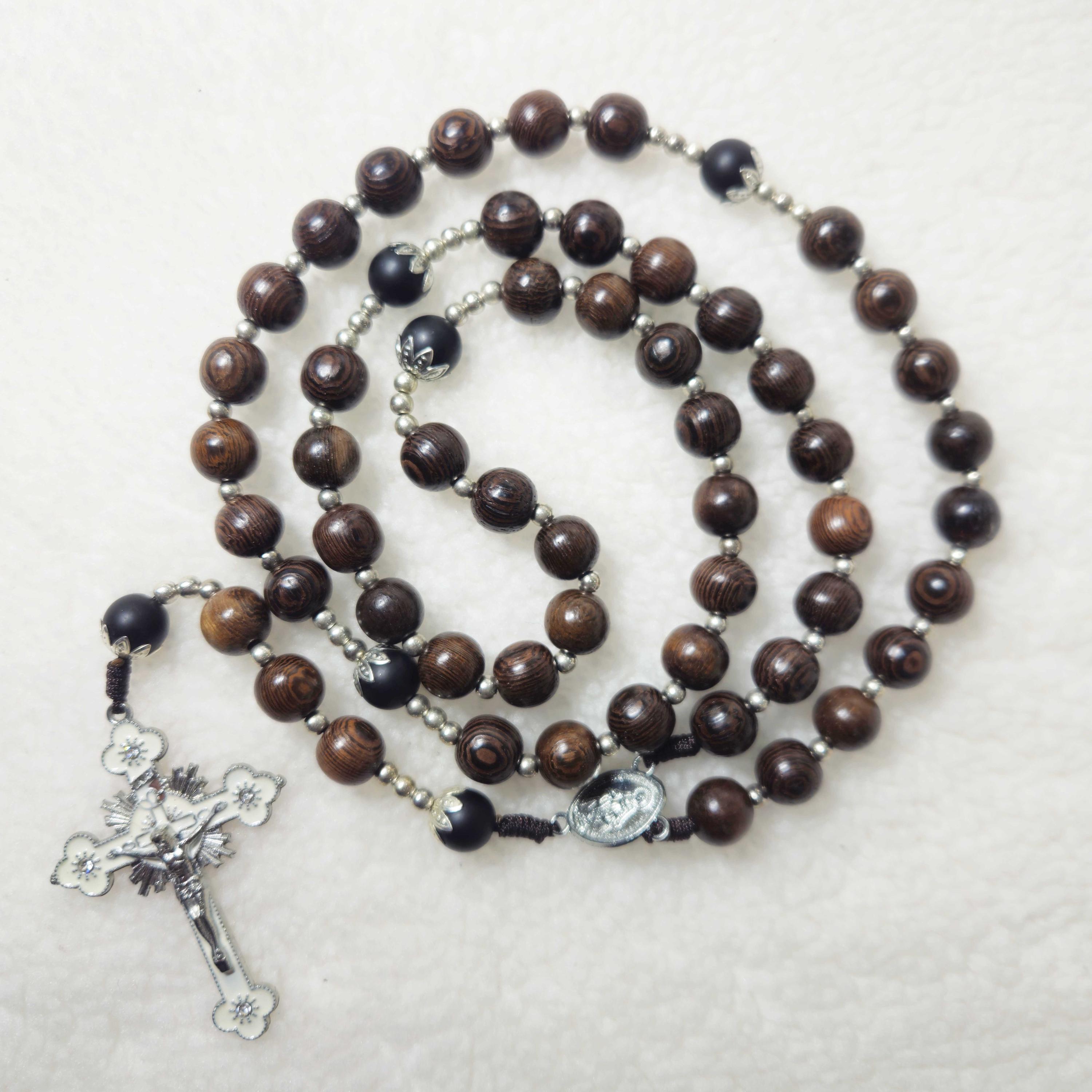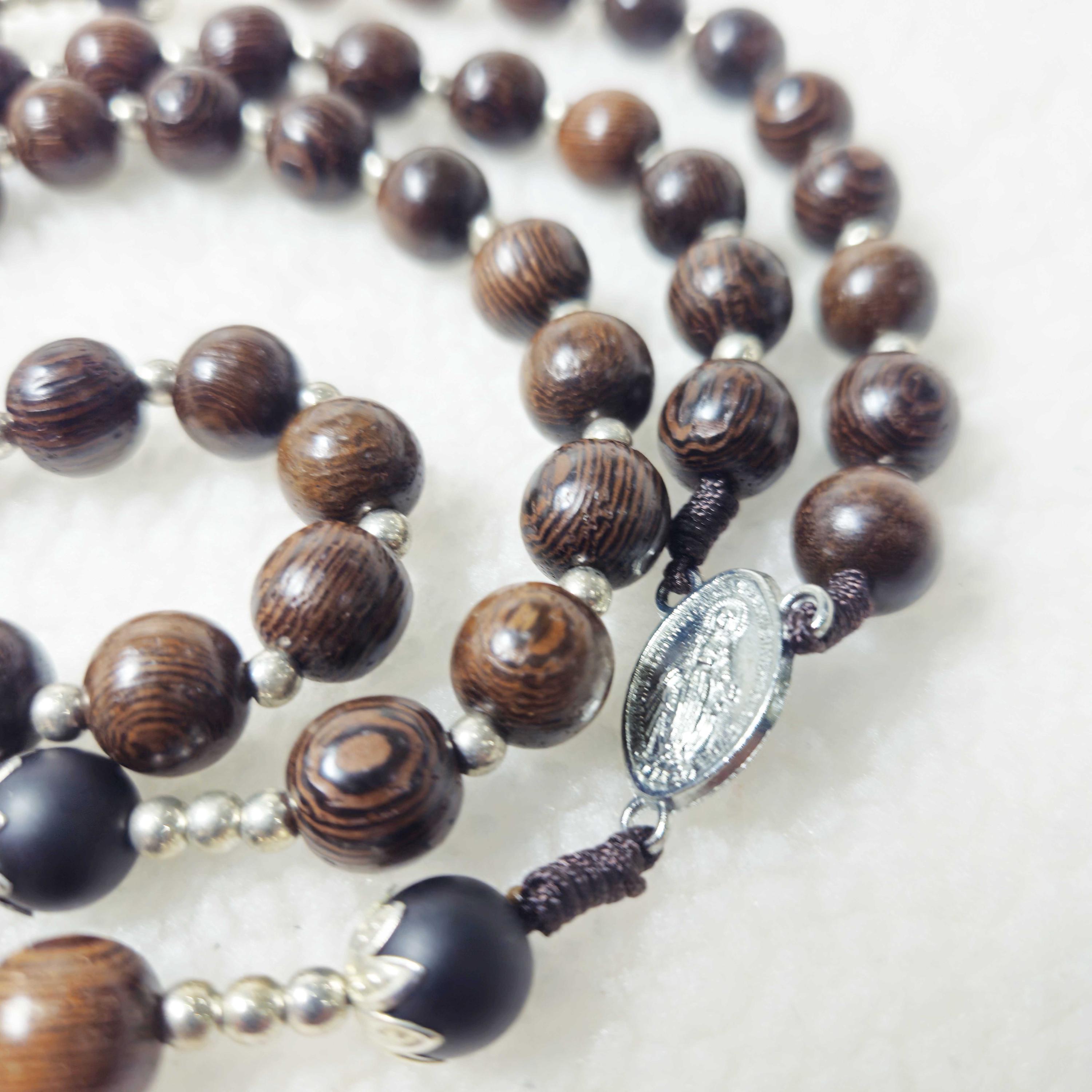 Catholic Rosary harmoniously blends wood and black gemstone beads, Wood Bead rosary, Catholic Gifts, First Communion Gift