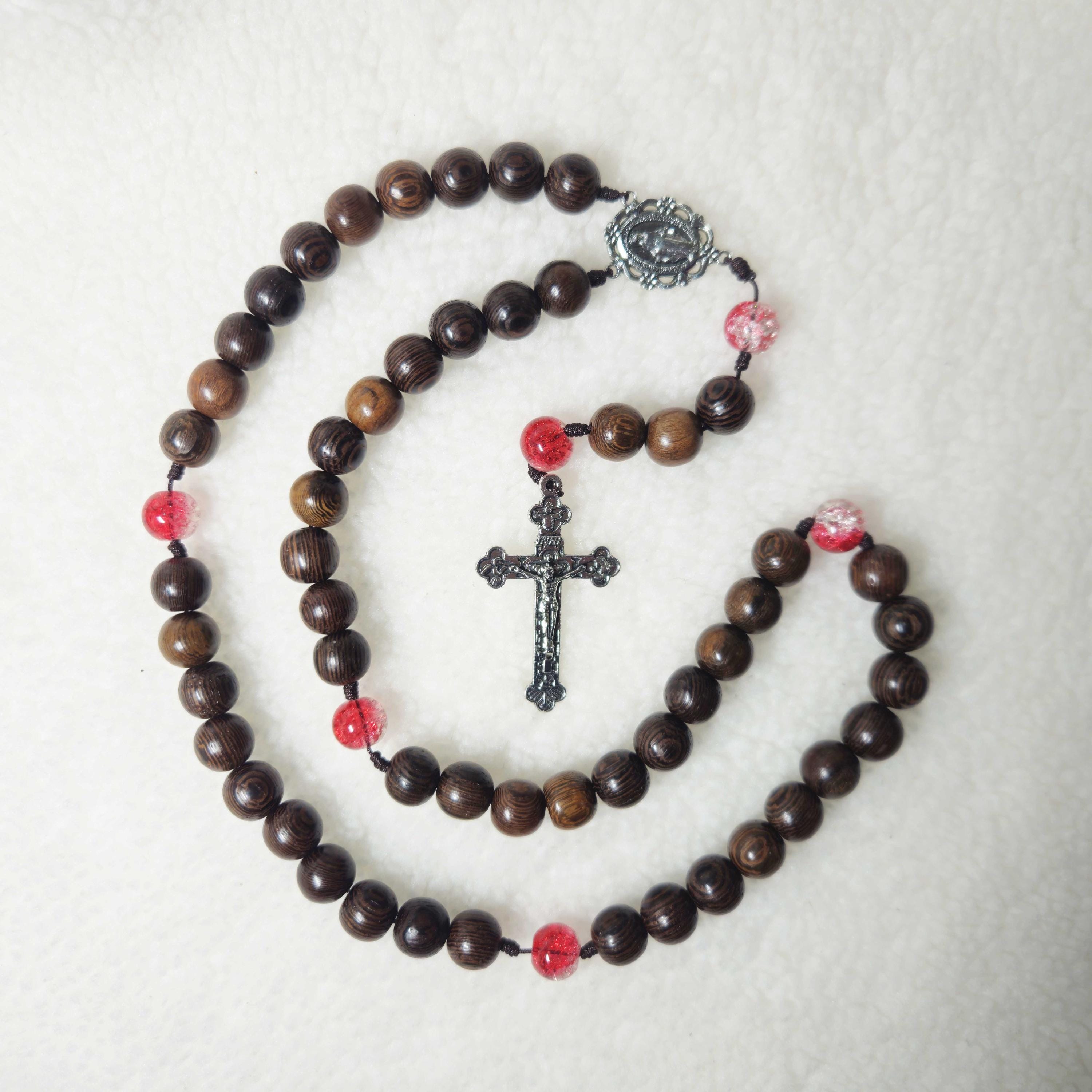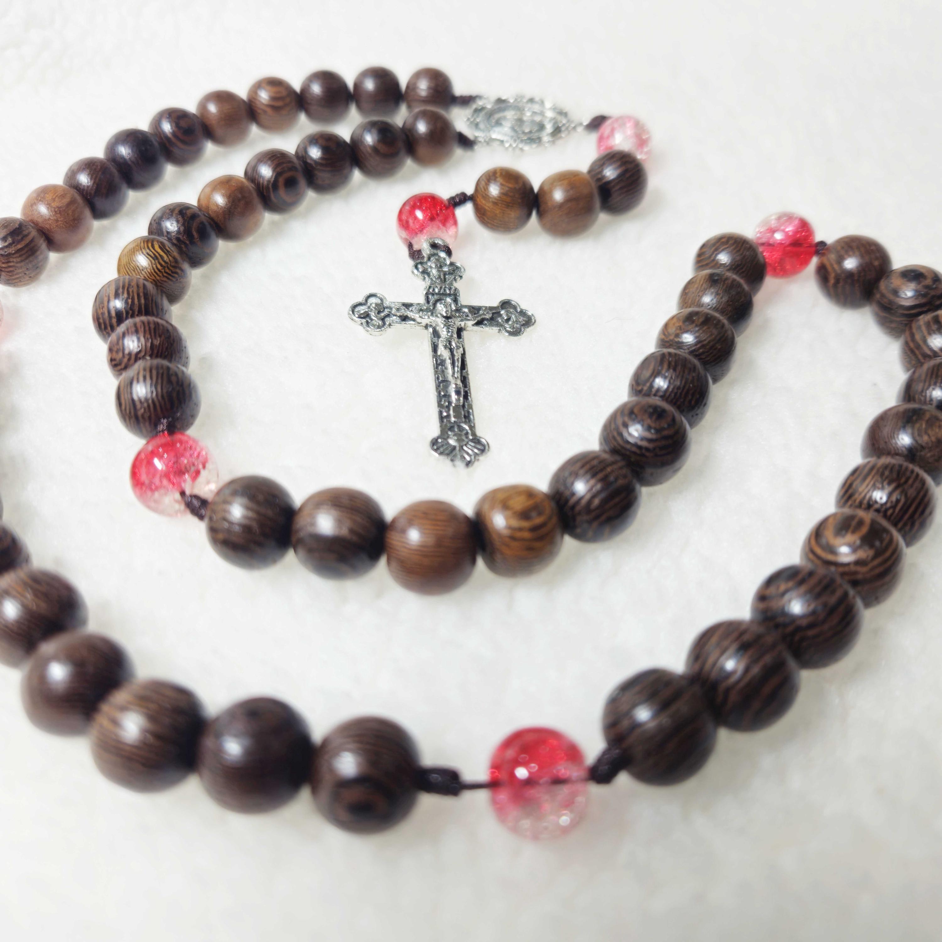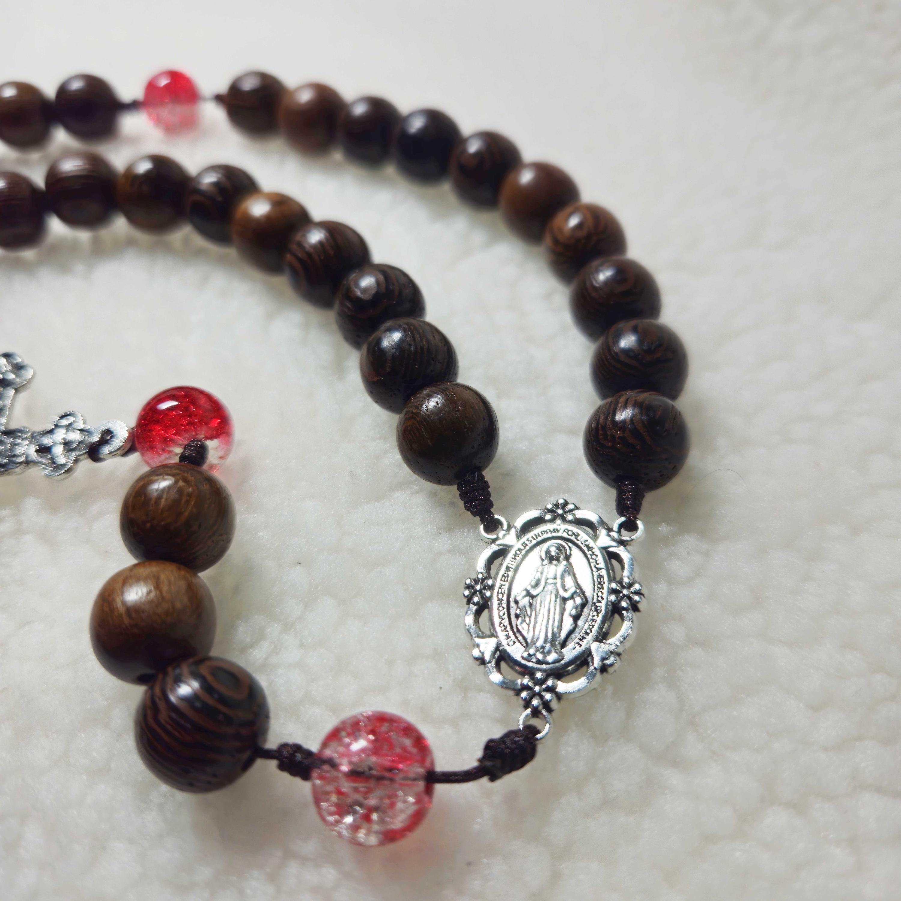 Catholic Rosary with black wooden beads and red gemstone, Wood Bead rosary, Pardon Crucifix Rosary, Catholic Gifts, Cord Rosary