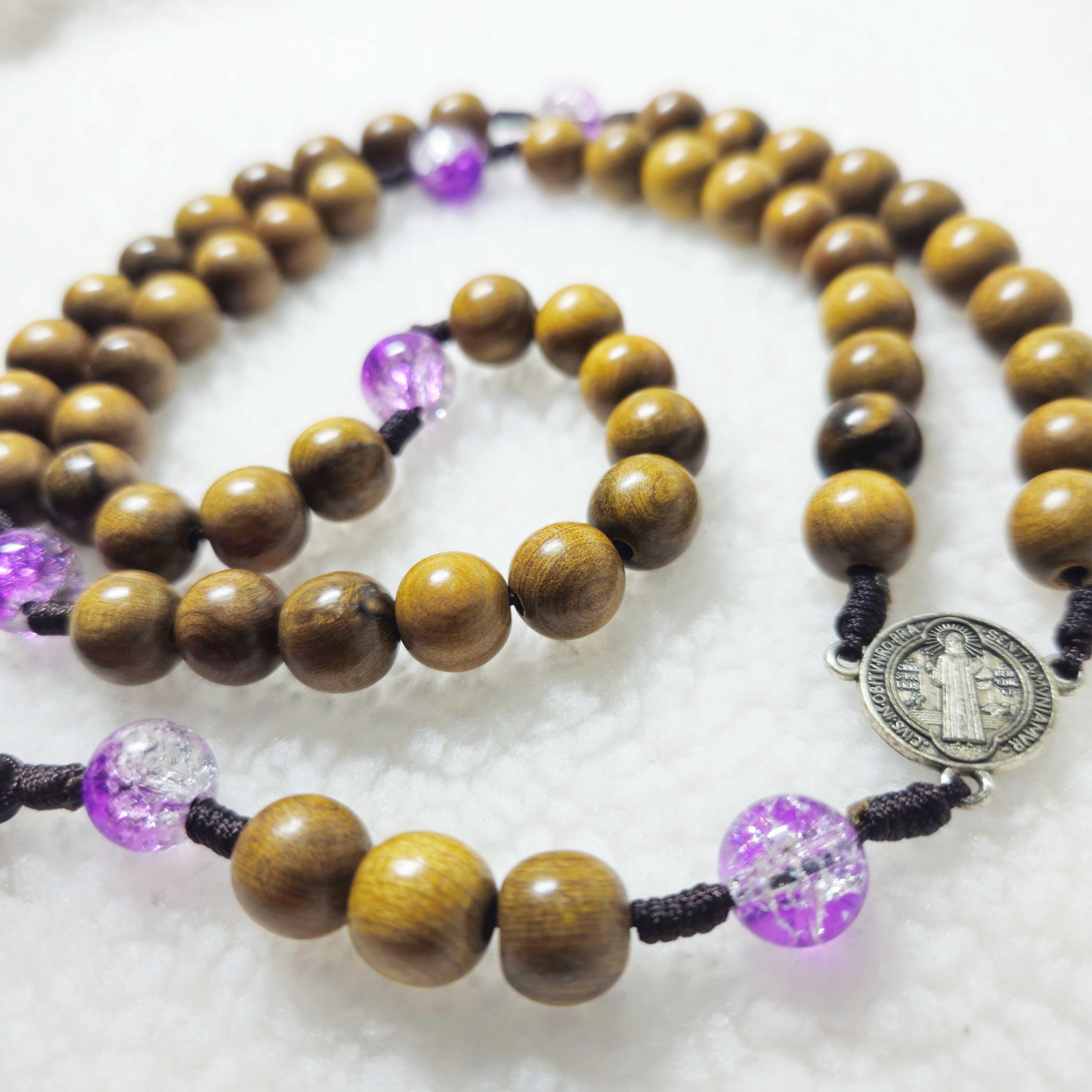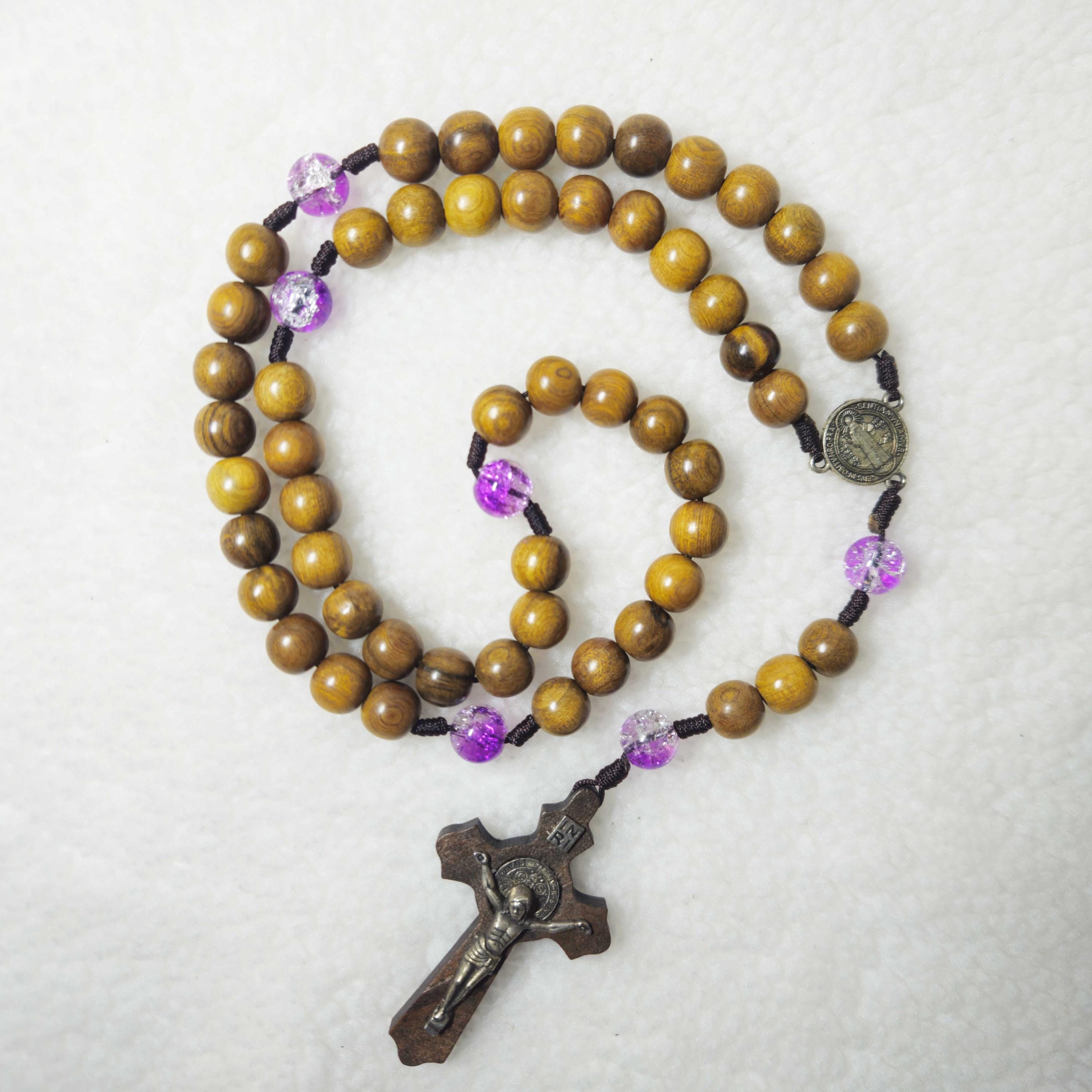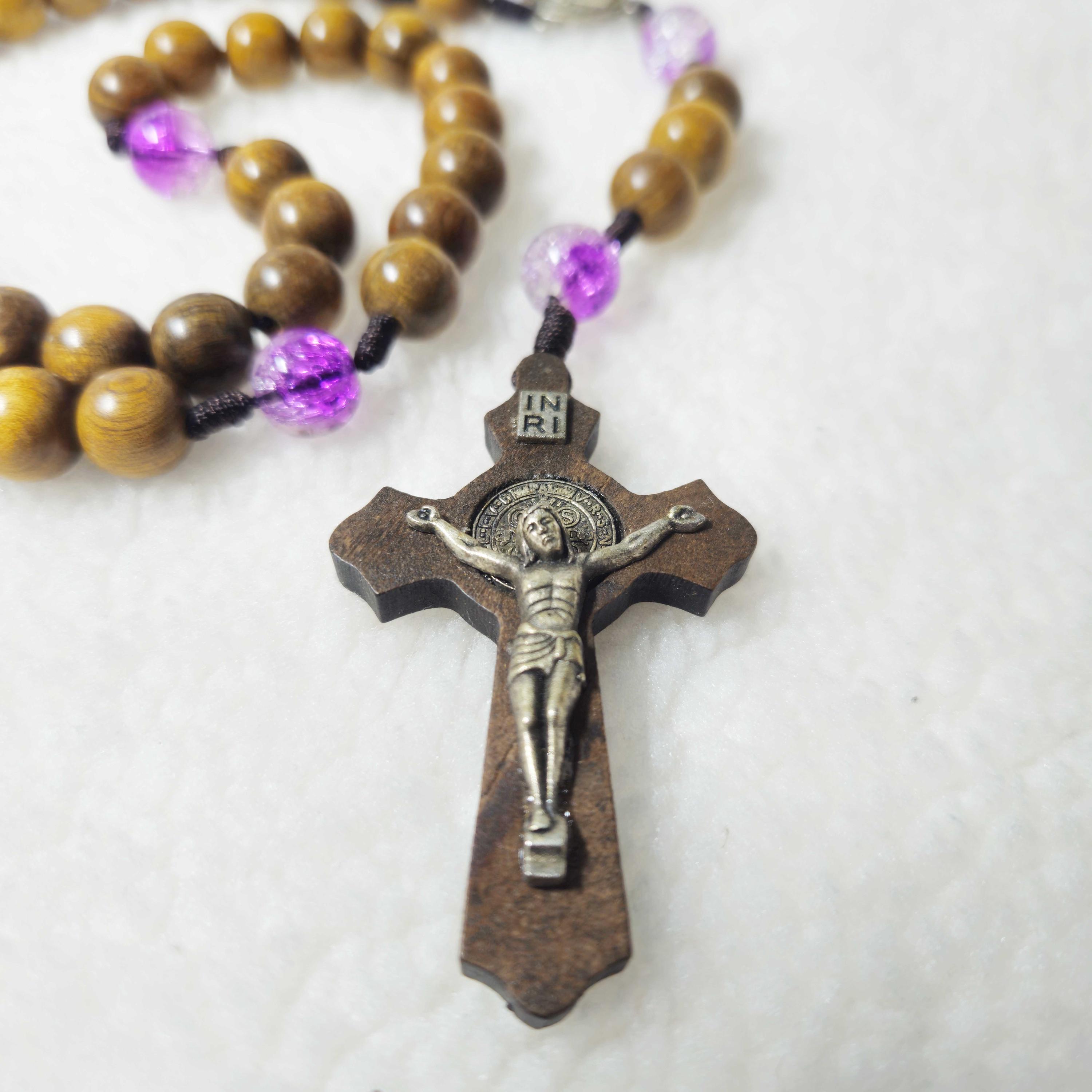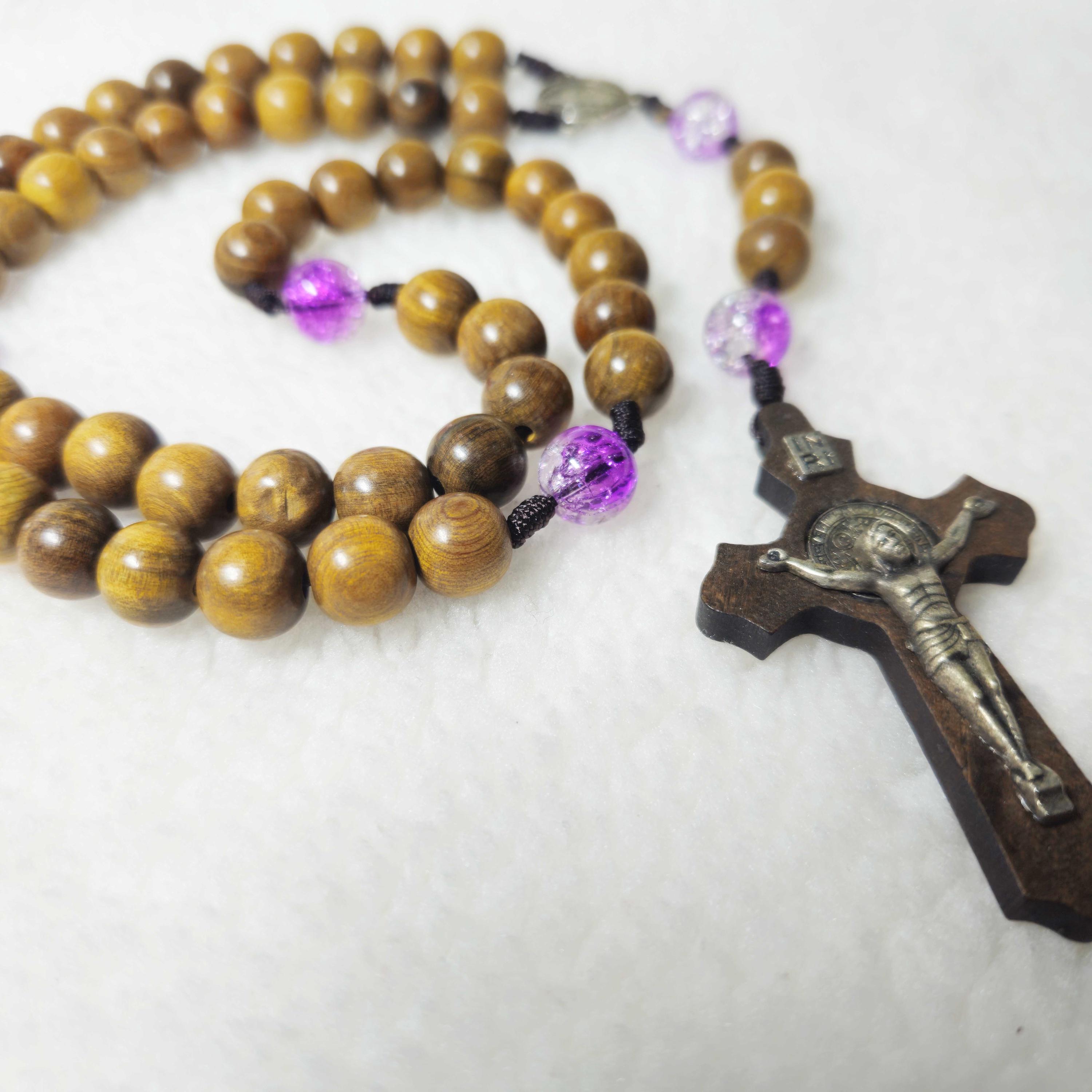 Immerse yourself in the craftsmanship of this intricately fashioned Catholic rosary, distinguished by its remarkable elegance and unique nature. Formed from 10mm beads of green cypress wood and accompanied by 10mm gemstone beads, this rosary truly encapsulates devotion. Enhanced by a 2.4-inch crucifix, the beads are expertly threaded and carefully knotted onto micro cord, ensuring both lasting durability and captivating visual appeal.
