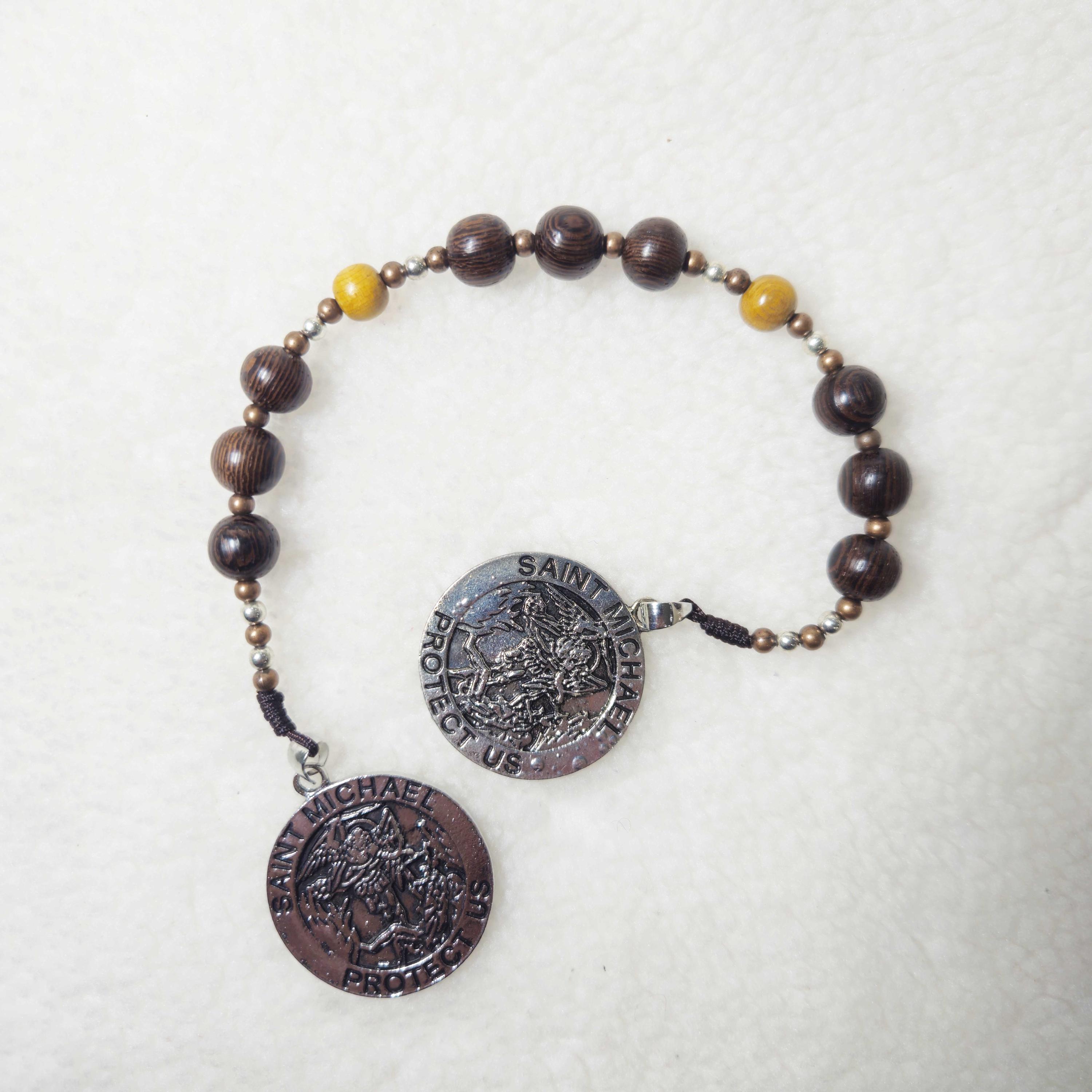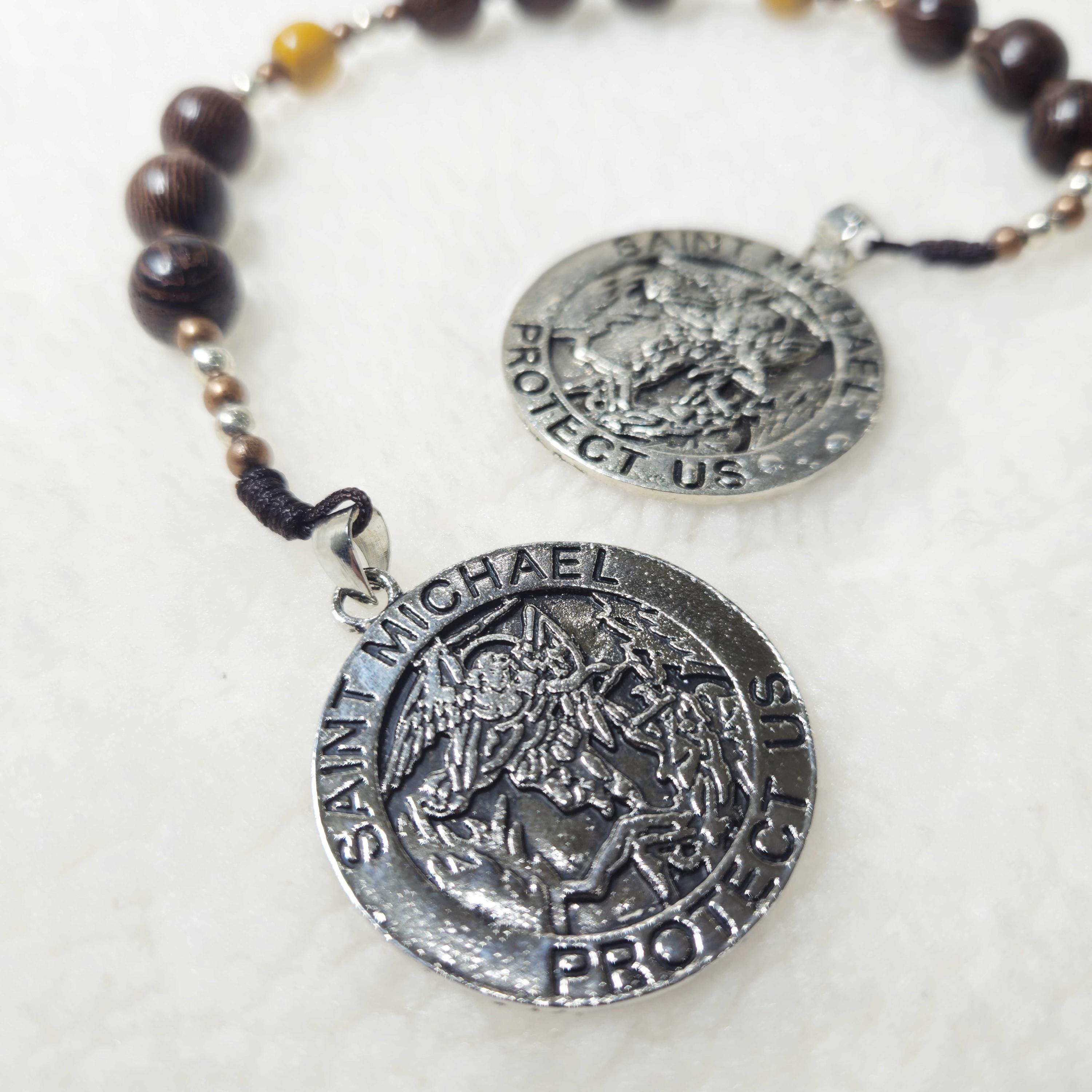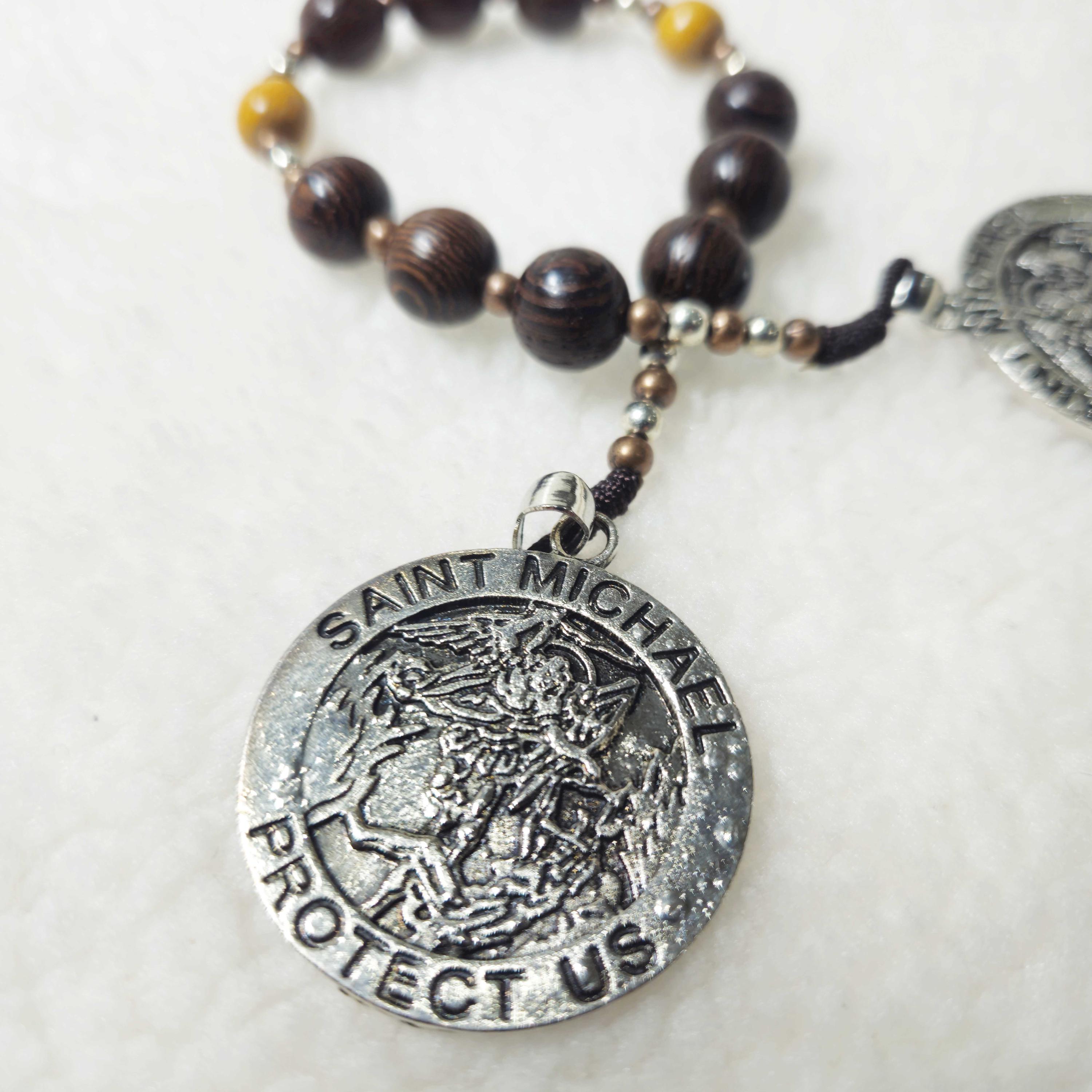 Catholic Pocket Rosary with Saint Michael metal medals, Wood Bead rosary, Rosary for Her, Catholic Gifts, First Communion Gift