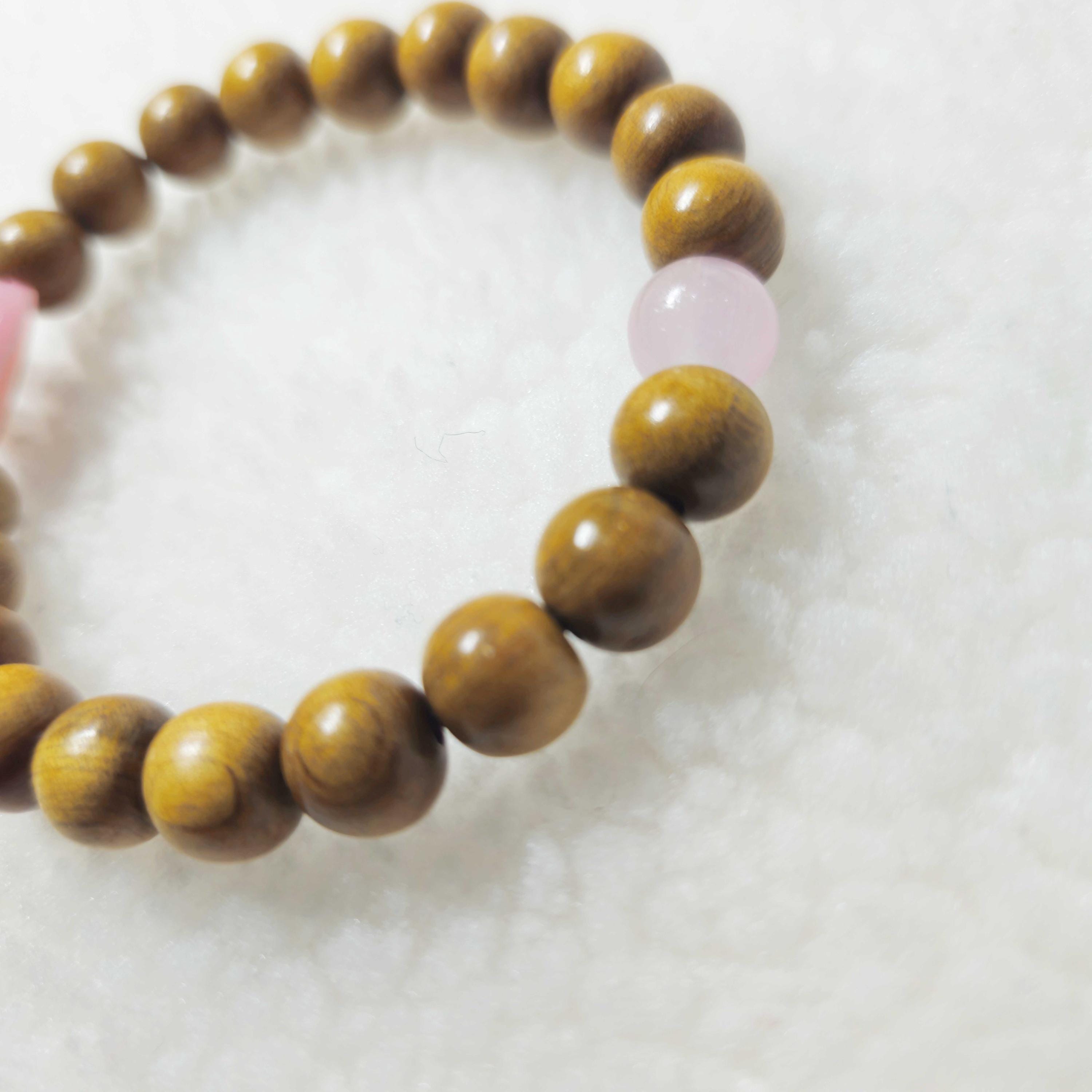 Pink Stone & Green Cypress Wood Catholic Bracelet | Prayer Beads for Girls, Faith Gift, Rosary Style