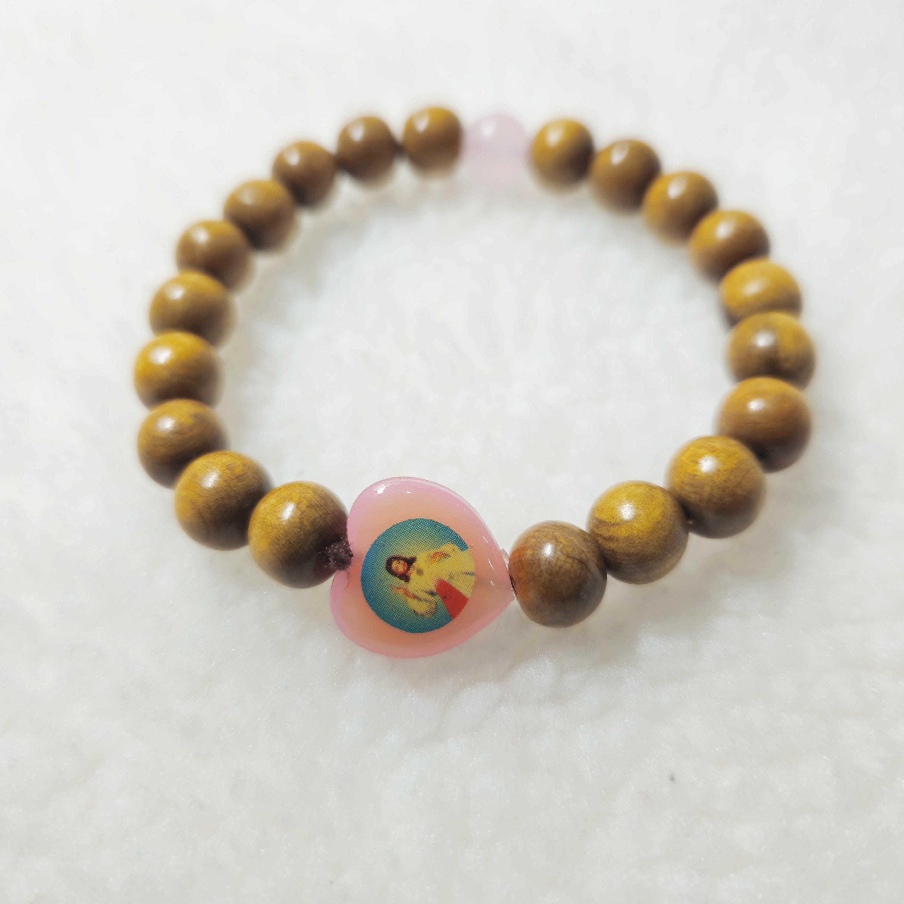 This charming Catholic bracelet is handcrafted with 8mm green cypress wood beads and delicate pink stone beads, perfect for prayer and reflection. Designed as a rosary-style bracelet, it fits wrists with a circumference of 12.5–13.5 cm (4.9–5.3 in), making it ideal for girls and teenagers in the United States. A meaningful gift for birthdays, religious milestones, or spiritual keepsakes, this bracelet encourages daily prayer and devotion. Each piece is carefully crafted to be a cherished companion for young Catholics starting their faith journey.