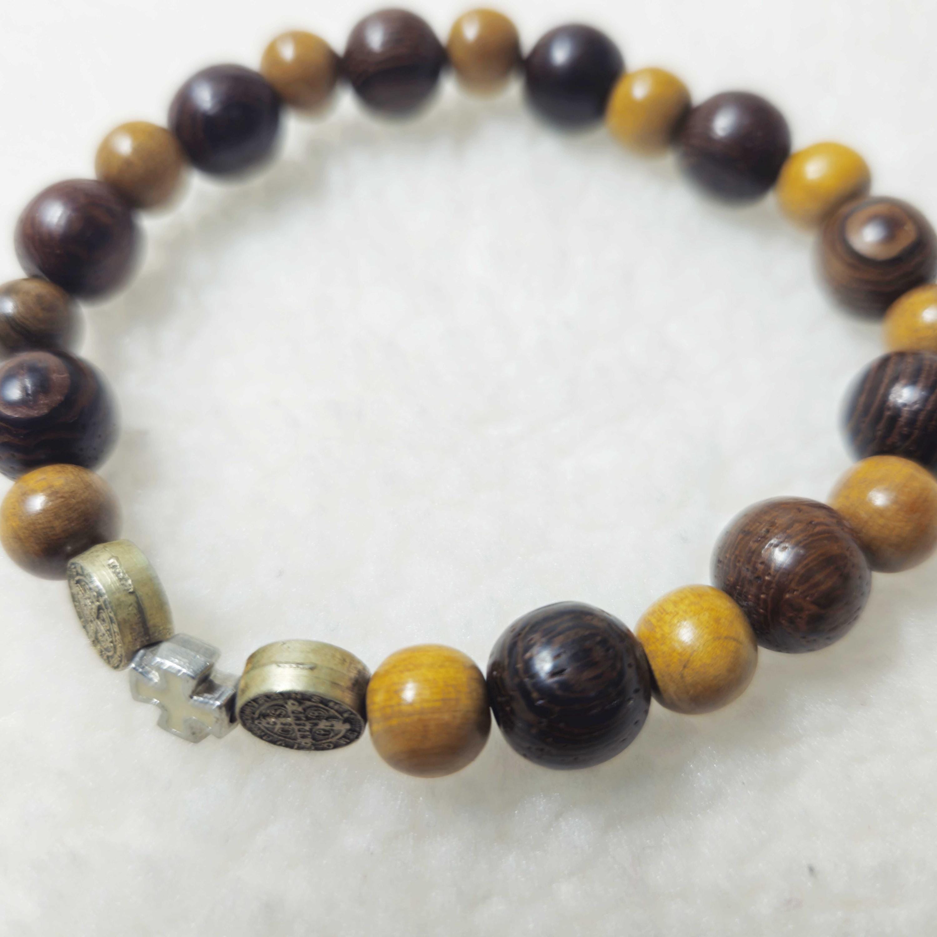 Black Cypress Wood Catholic Bracelet | Handmade Prayer Beads for Kids & Teens, Rosary Bracelet, Faith Gift