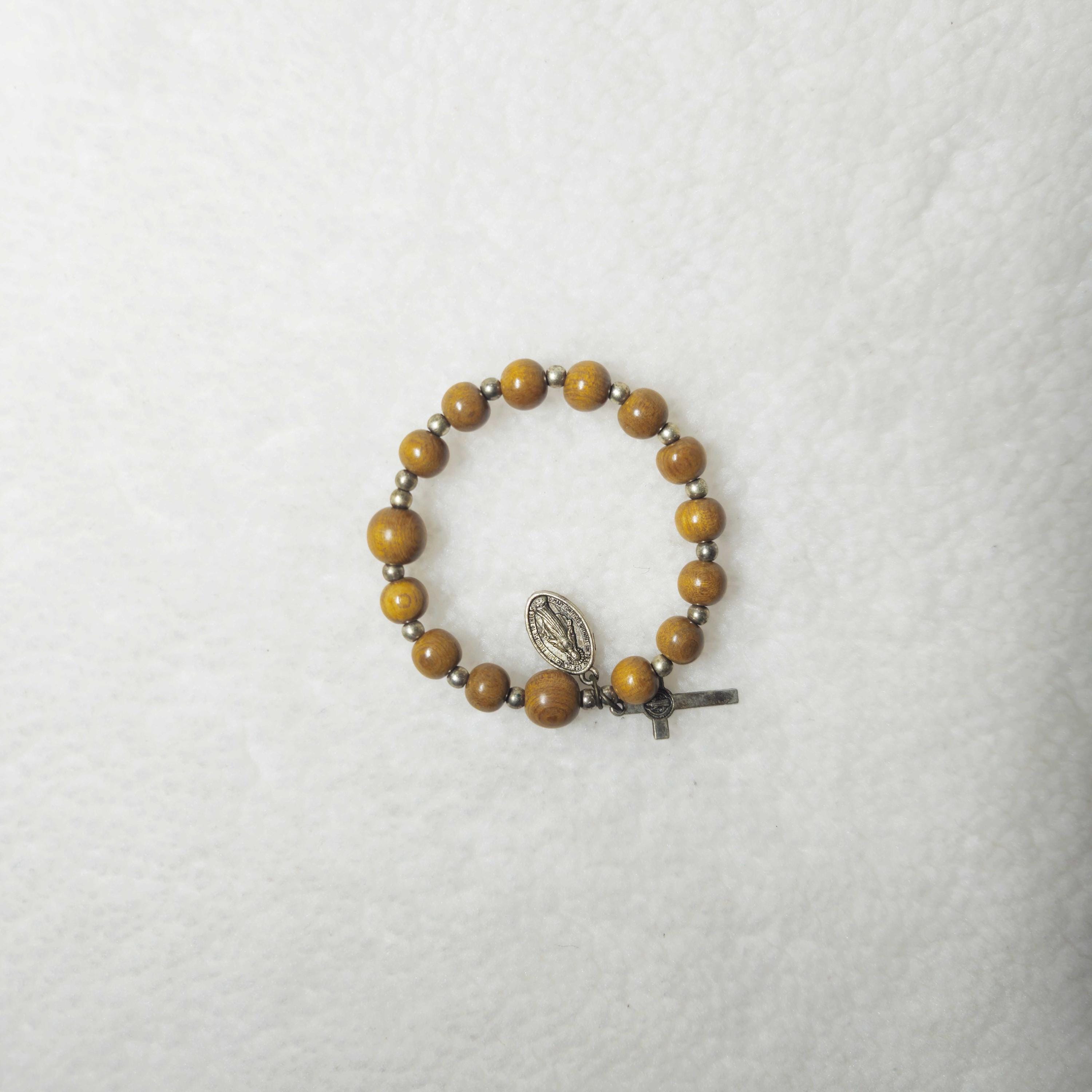 This handcrafted Catholic bracelet is made with black green cypress wood beads (8mm) and designed for prayer and devotion. The bracelet’s size is ideal for children and teens with wrist circumferences approximately 13–14 cm (5.1–5.5 inches). Perfect for daily prayer, spiritual reflection, or as a thoughtful Catholic gift for birthdays, Christmas, or religious milestones. Each bracelet is carefully crafted to be a cherished keepsake, helping young believers cultivate faith and devotion.