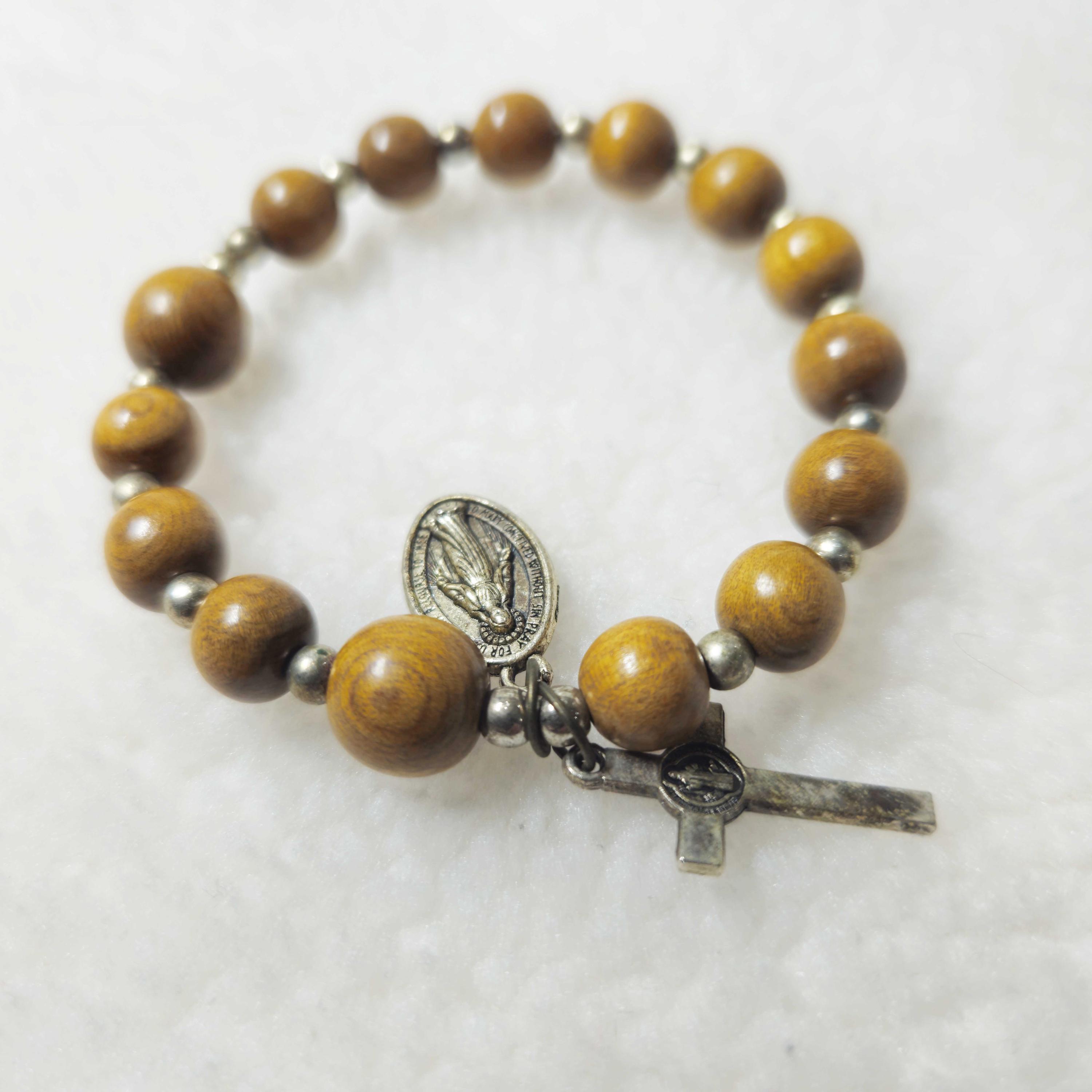 Black Cypress Wood Catholic Bracelet | Handmade Prayer Beads for Children & Teens, Rosary Bracelet Gift