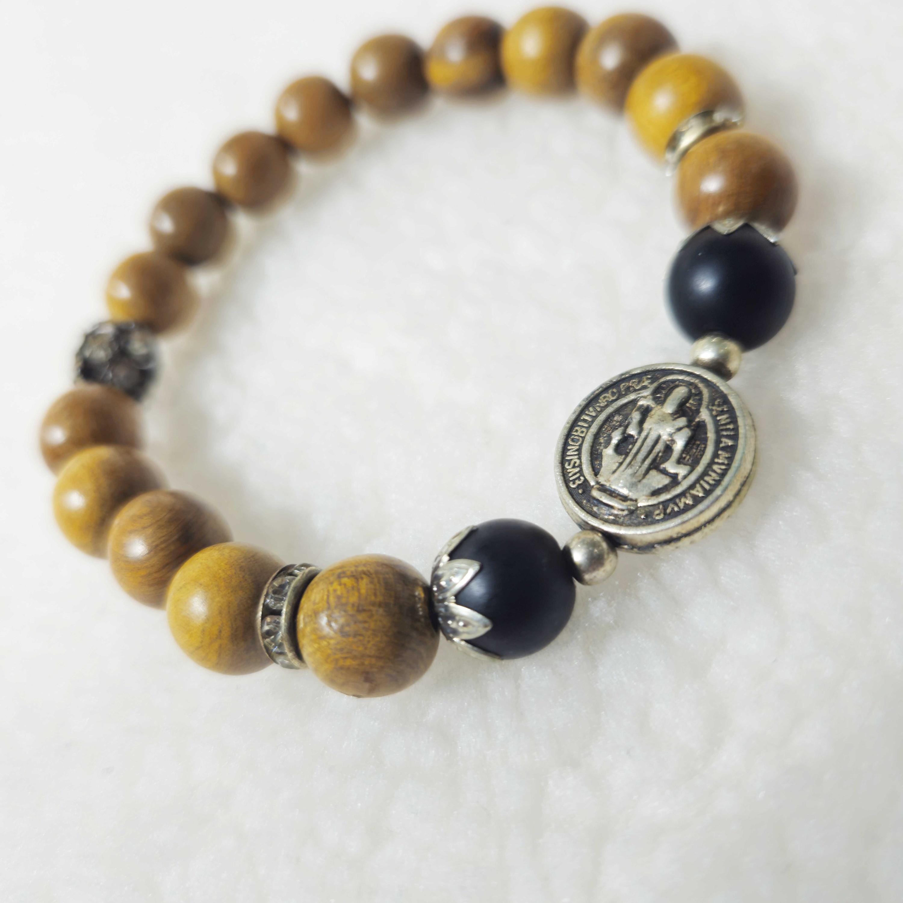 This handcrafted Catholic bracelet is made with yellow green cypress wood beads (10mm) combined with black stone beads, designed for prayer and devotion. The bracelet is ideal for children and teens with wrist circumferences approximately 13–14 cm (5.1–5.5 inches). Perfect for daily prayer, spiritual reflection, or as a meaningful Catholic gift for birthdays, Christmas, or religious milestones. Each bracelet is carefully crafted to be a cherished keepsake, helping young believers grow in faith and devotion.