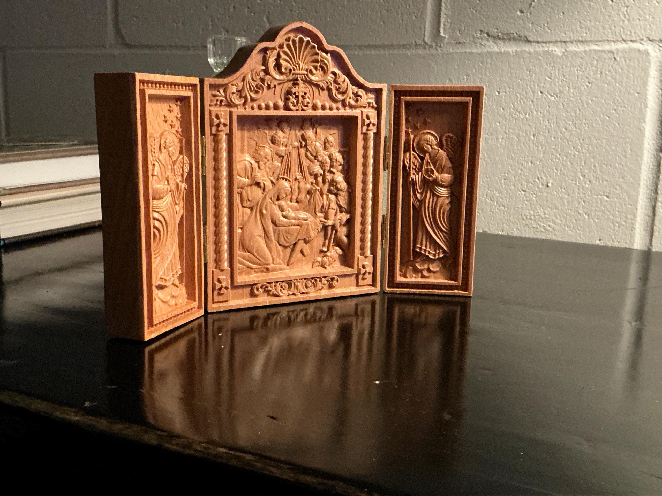 Nativity Birth of Christ Catholic Triptych Religious Icon Handmade Home Decor Original Triptych Catholic Altar Mothers Day Gift Ideas