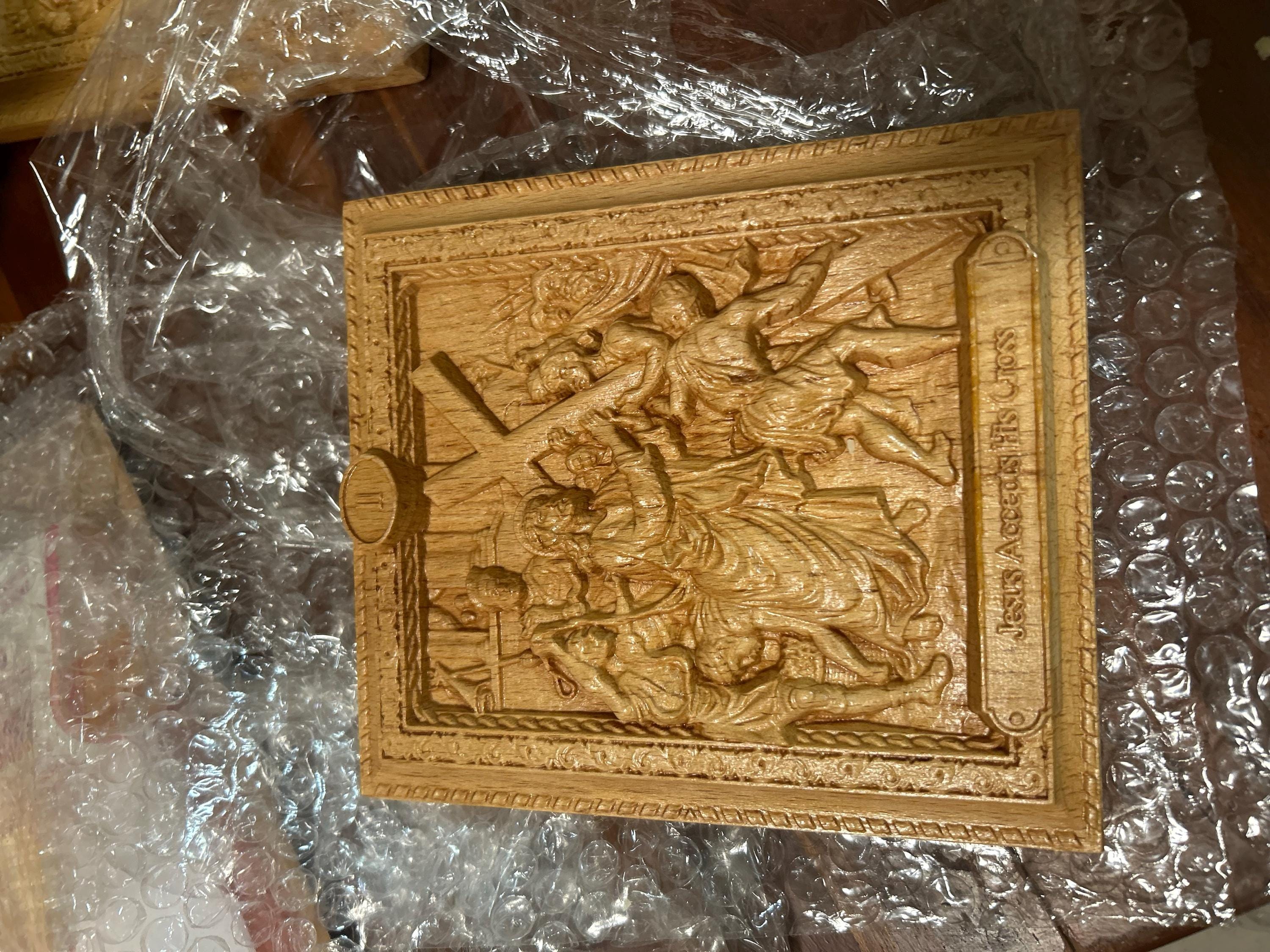 A Set of 14 Wooden Stations of the Cross Solid Wood Carving Room Decor Religious Gift Catholic Art Catholic Gifts Traditional Catholic