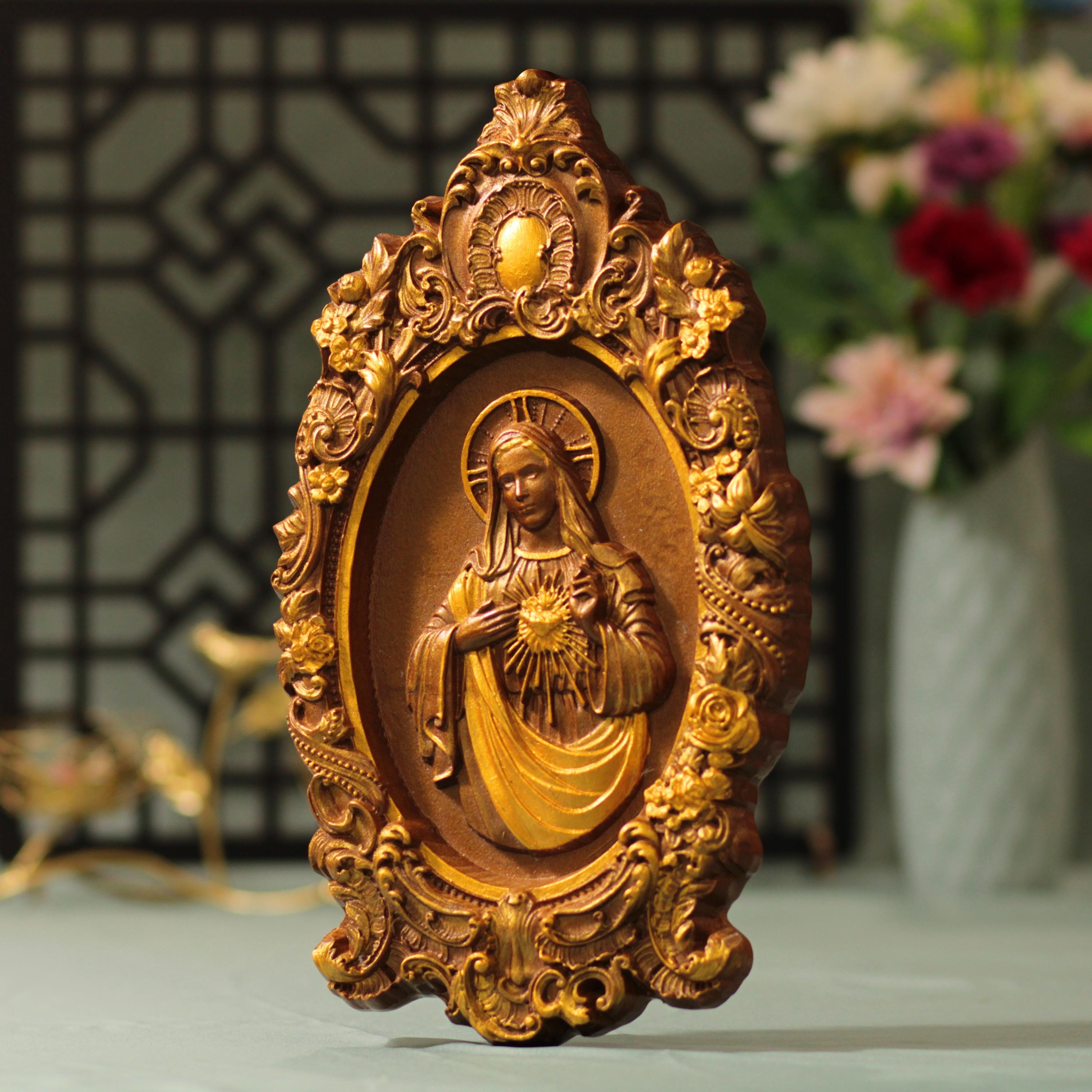 Immaculate Heart of Mary Wall Art Vintage Style Wooden gift Catholic Mother of God Icons Religious Gifts Christmas Gift New Home Gifts