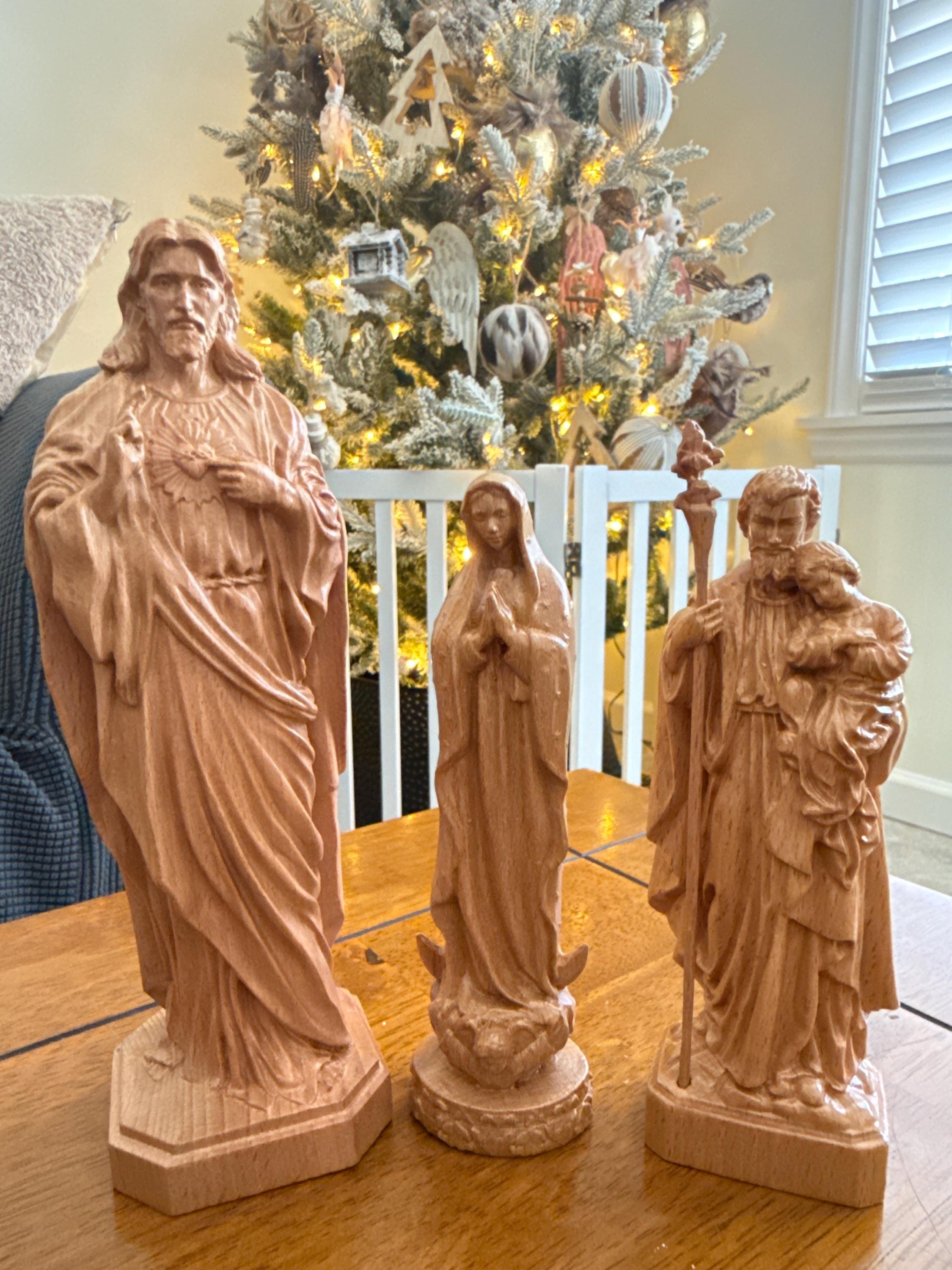 This handcrafted Jesus Christ Divine Mercy Statue is a beautiful expression of faith, perfect for Catholic home decor or as a meaningful religious gift. Made from quality wood with intricate details, it’s ideal for prayer spaces, altars, or as a unique gift for sacraments like baptism, confirmation, or First Communion. A thoughtful choice for anyone seeking spiritual gifts, this statue brings a sense of peace and devotion to any space. Perfect for Easter, Christmas, or special occasions, this Divine Mercy statue will be a cherished addition to any collection of Catholic art or religious decor.