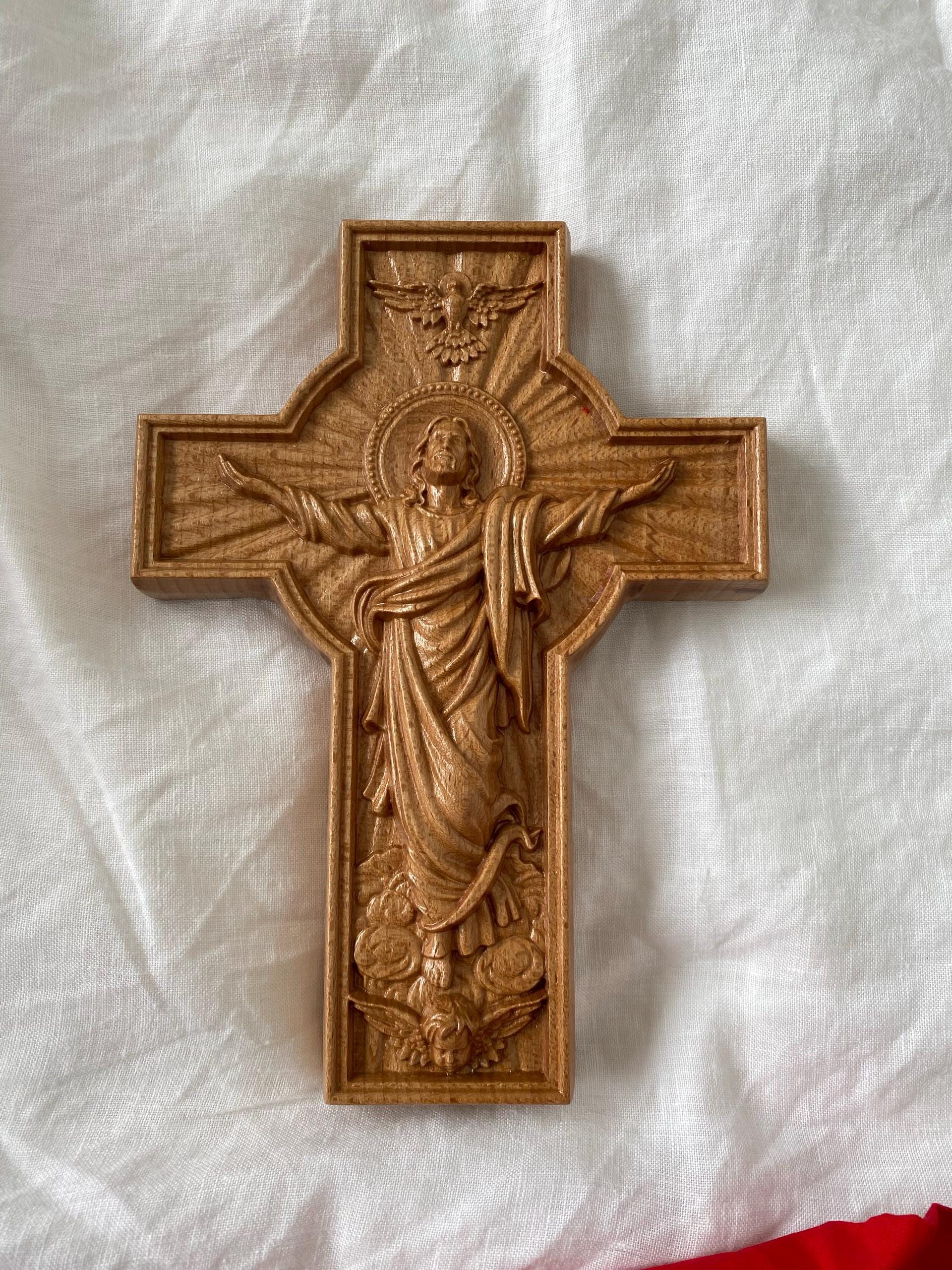 A beautiful wooden cross, exactly as shown in the pictures. I am very pleased with this item and highly recommend this seller.