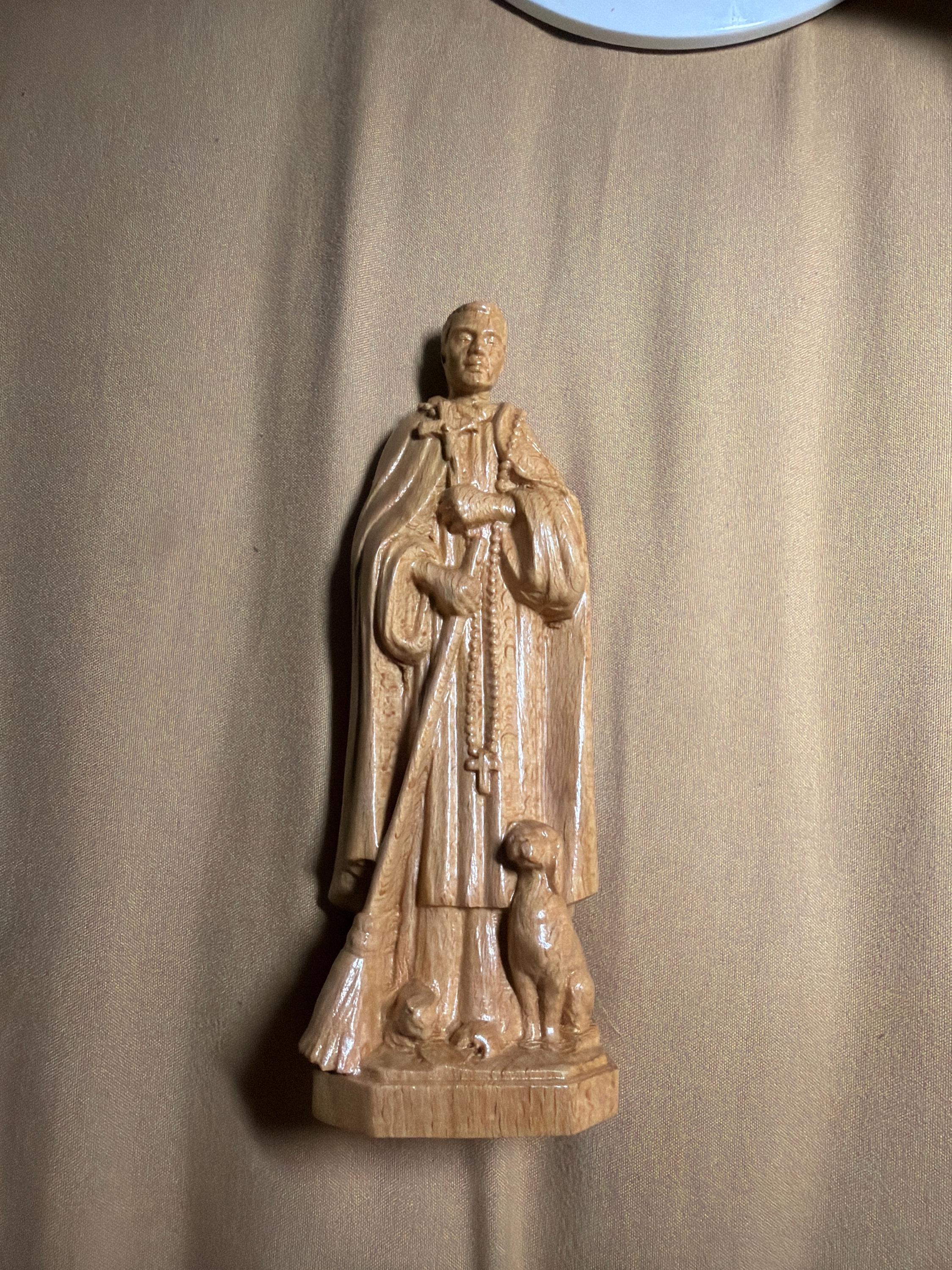 St. Martin de Porres Wooden Statue | San Martin de Porres with Dog Cat Mouse Hand Carved Holy Gift Christian Home Decor Art Catholic Statue