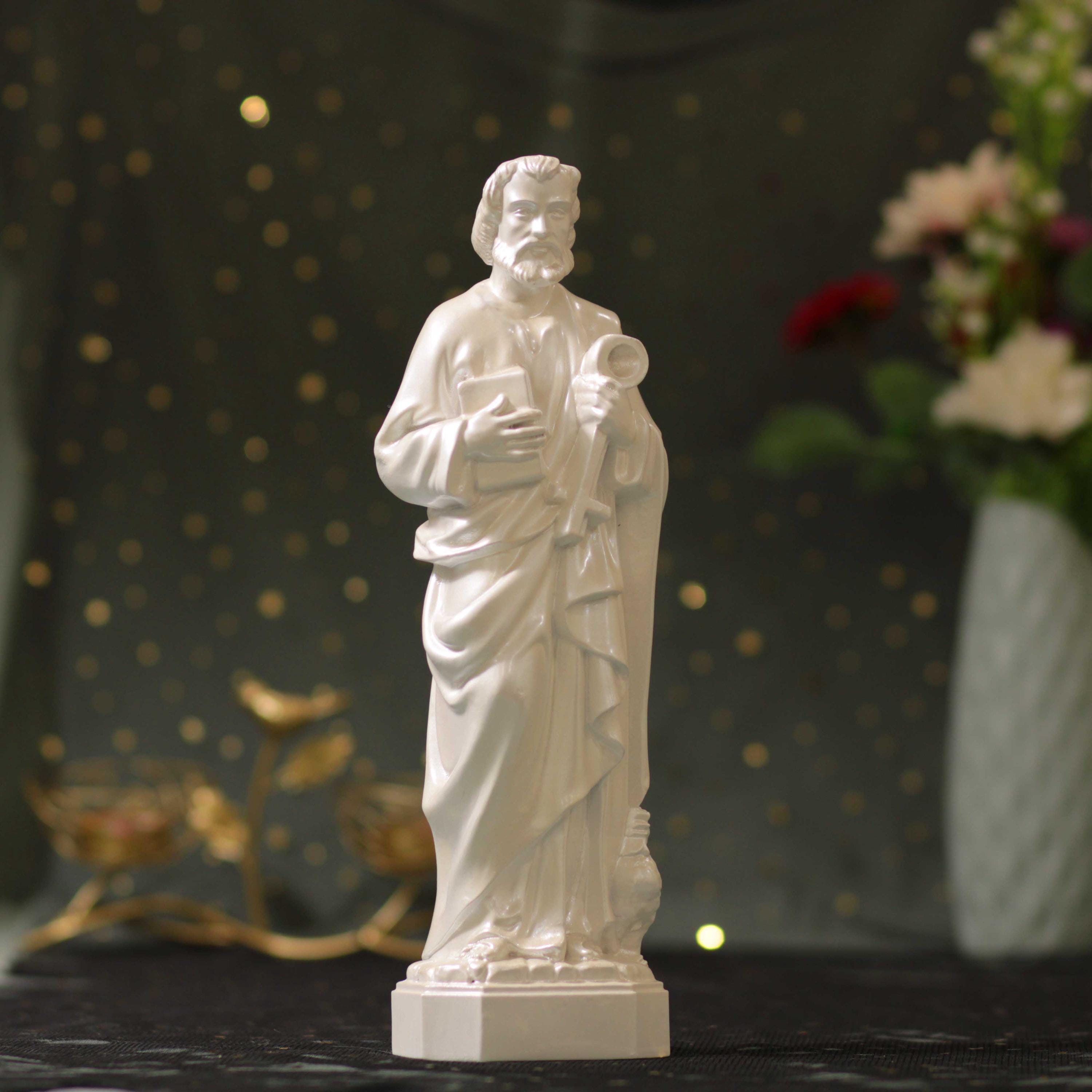 St. Peter Statue - Pearl White Finish | Apostle of Jesus, Keeper of Heaven’s Keys Catholic Wooden Decor & Gift Religious Gift Christian art