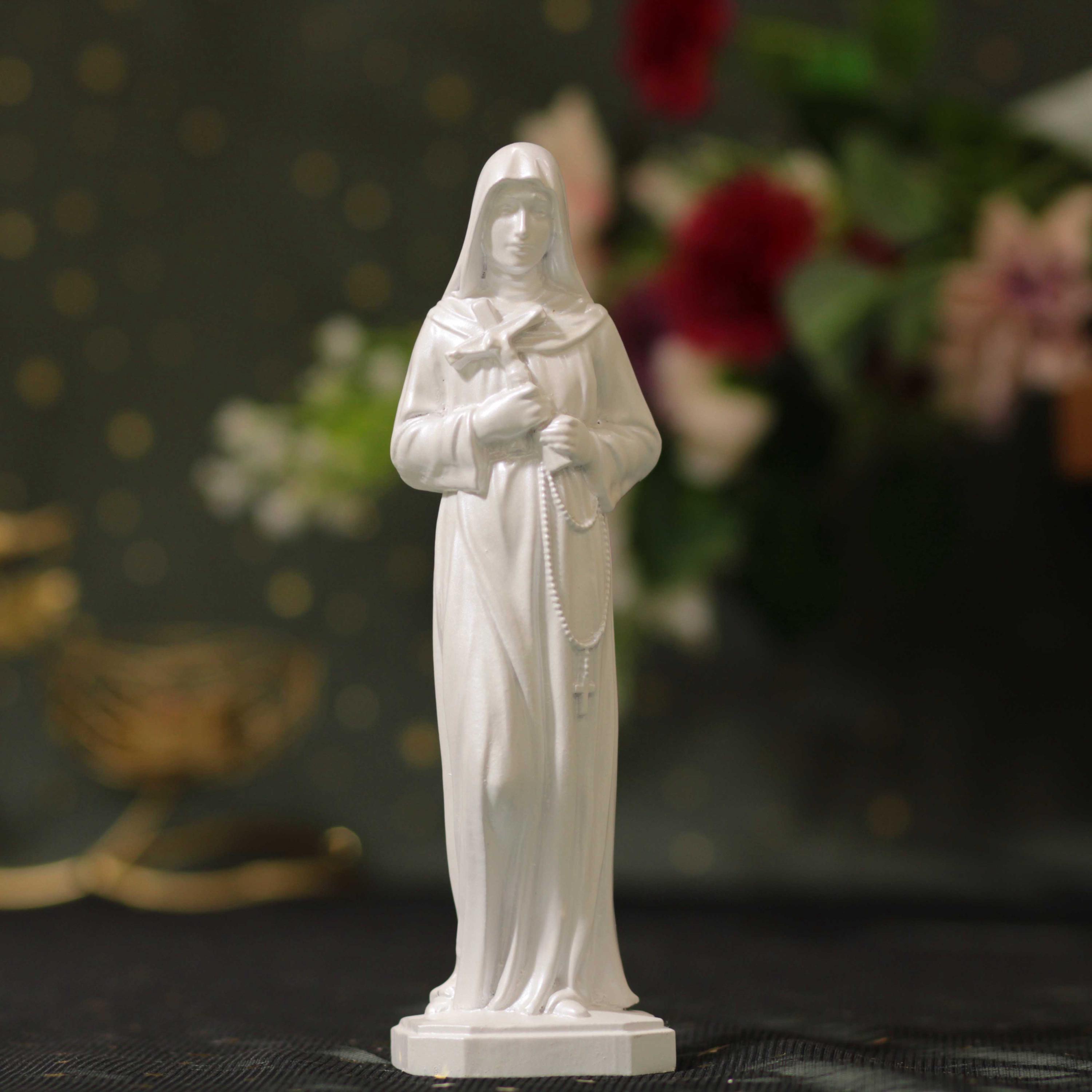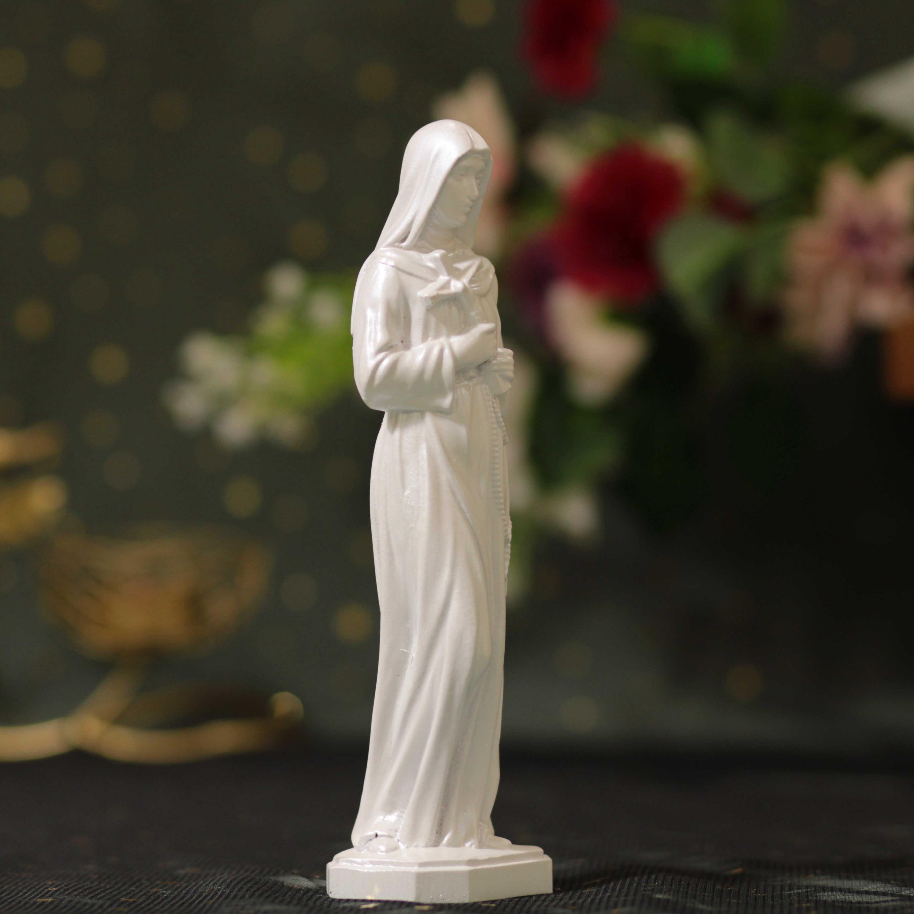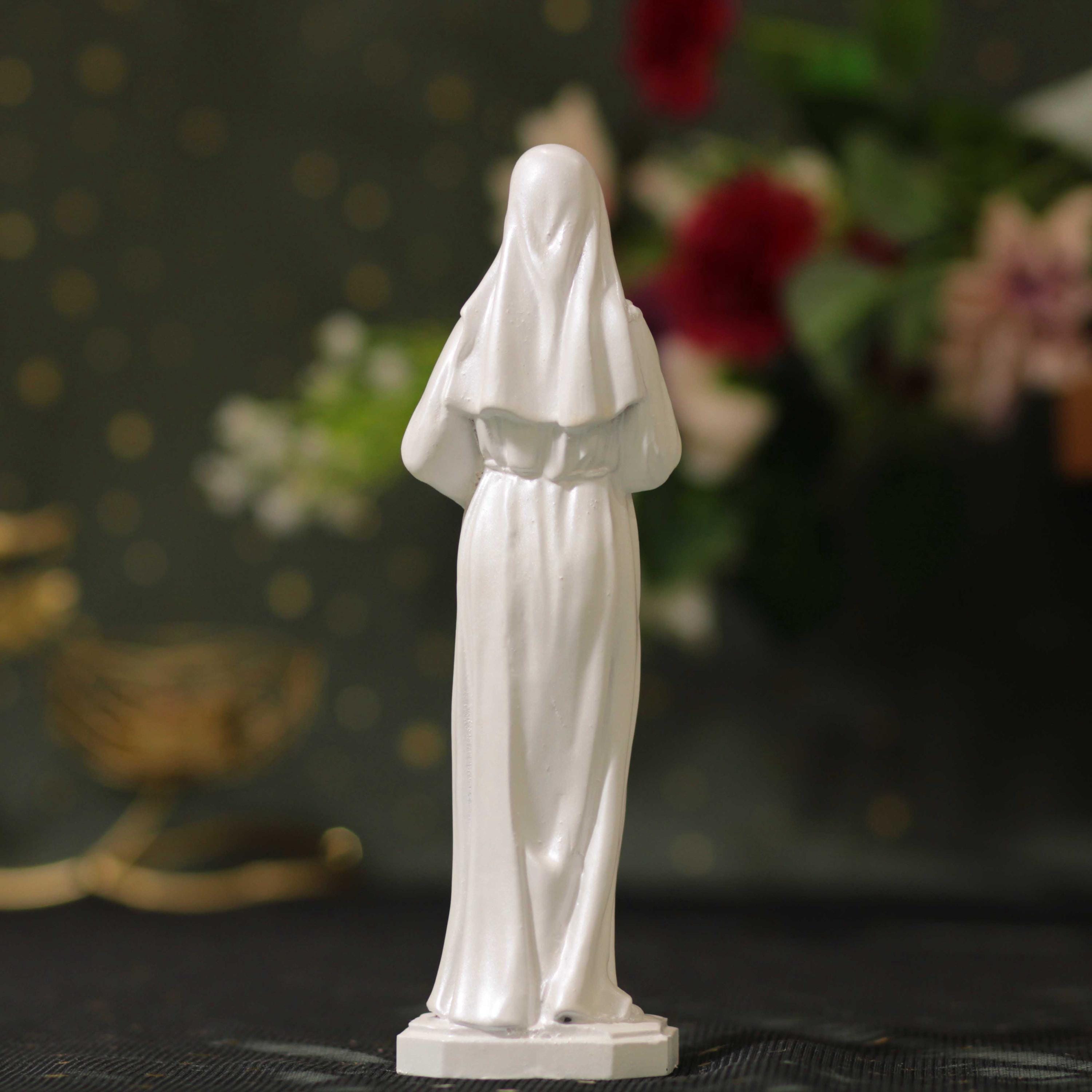 Perfect for prayer rooms, home altars, churches, or as a meaningful religious gift, this statue makes a thoughtful present for baptisms, confirmations, weddings, anniversaries, and other special occasions. Its pearl white finish adds a soft, elegant glow, complementing any traditional or modern Catholic décor.