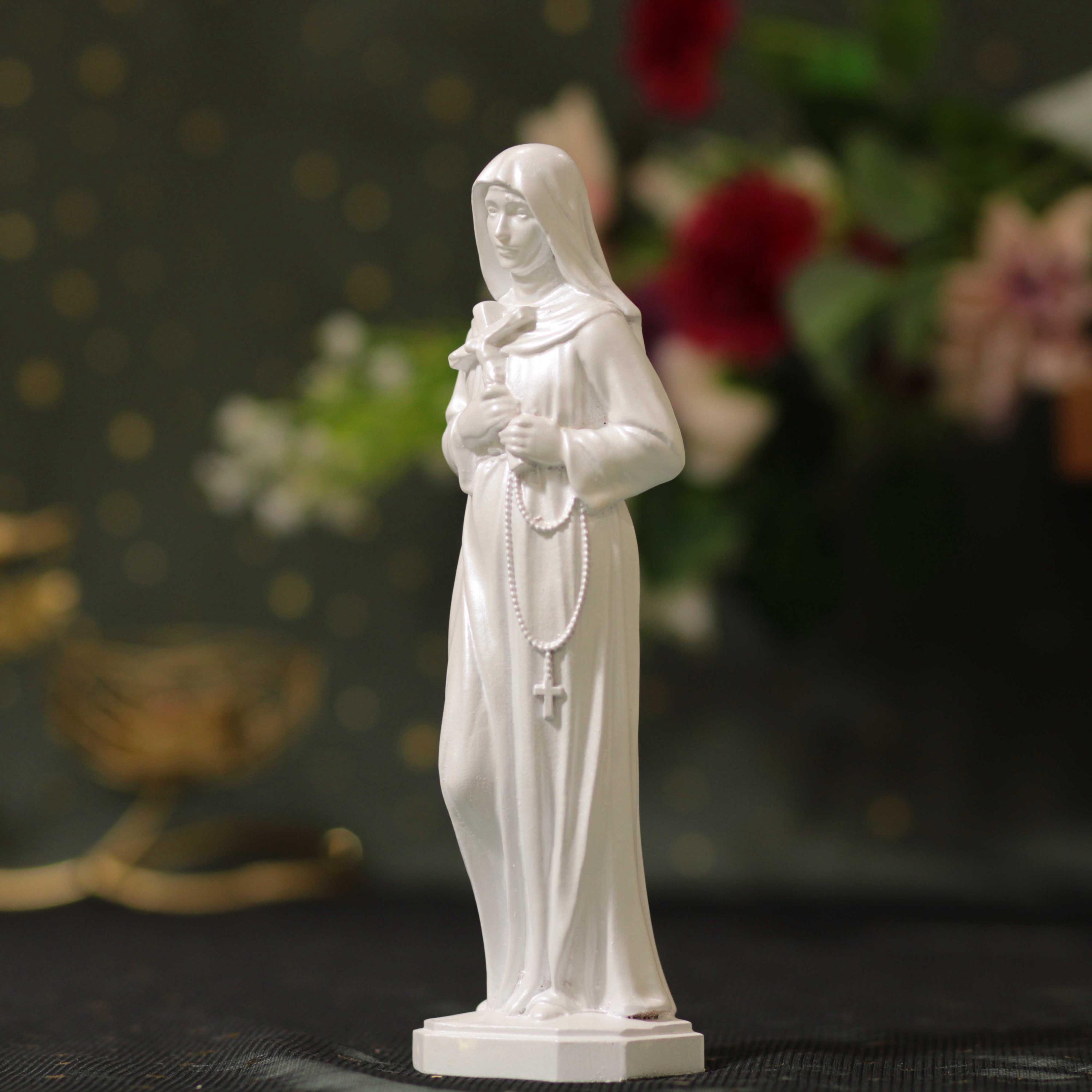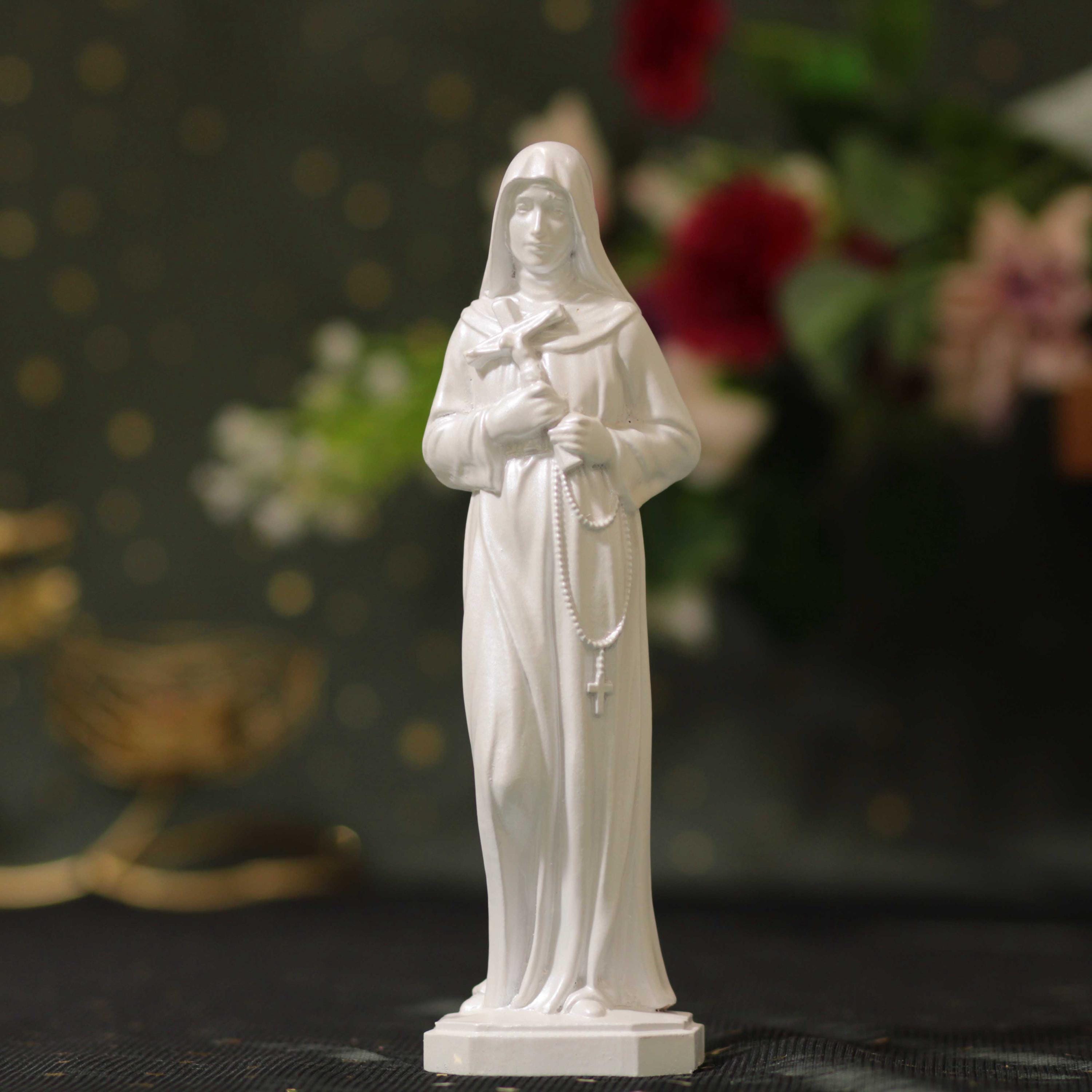 Bring the serene beauty of Saint Rita into your home or sacred space with this handmade wooden statue in a stunning pearl white finish. Crafted with care from high-quality natural wood, this Catholic statue captures the grace and devotion of Saint Rita, the patron saint of impossible causes.