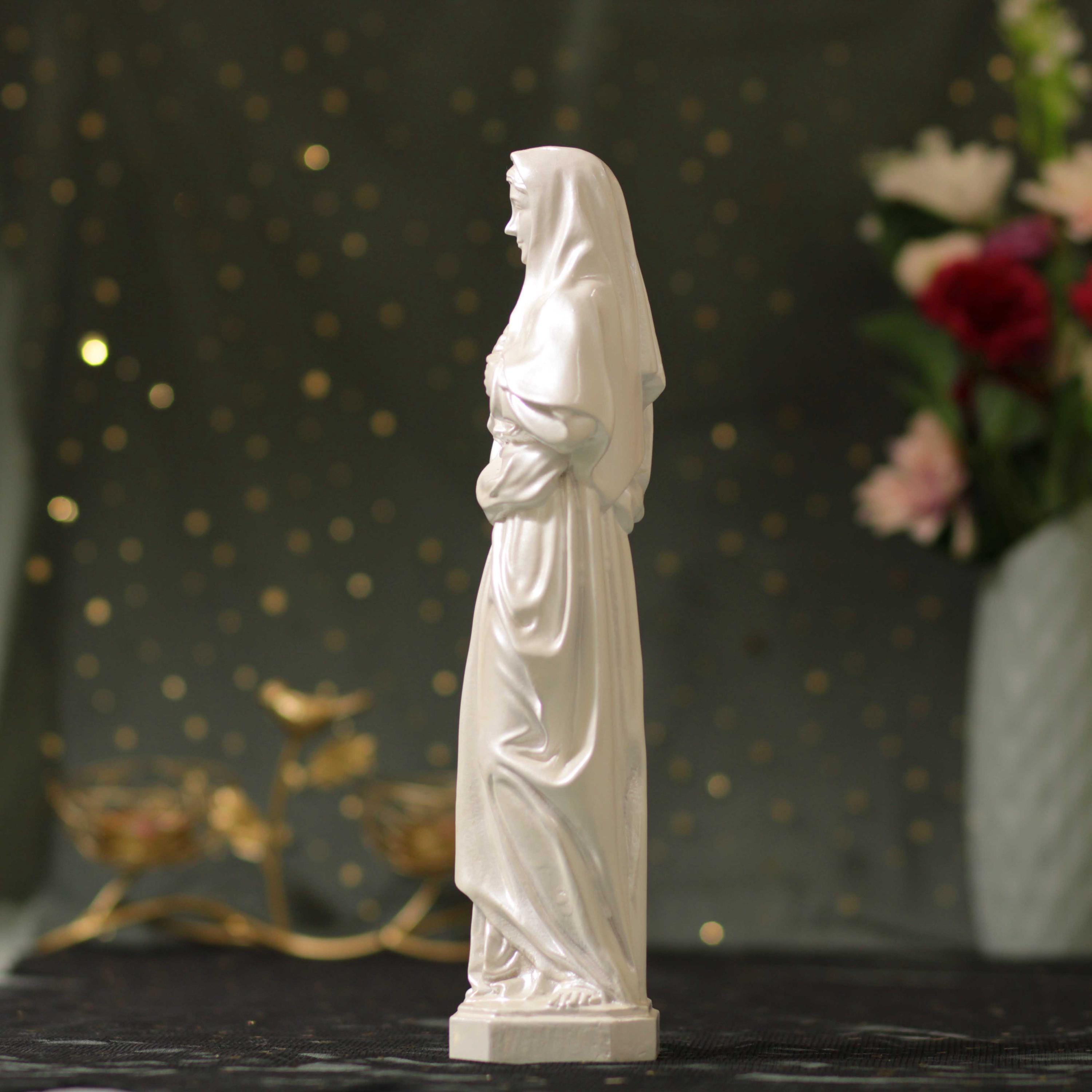 Perfect as a meaningful Catholic gift for baptisms, confirmations, weddings, Mother’s Day, or any special religious occasion, this statue serves as a daily reminder of faith, hope, and love. Each piece is carefully finished by hand, ensuring that no two statues are exactly alike — a unique treasure to be cherished for generations.