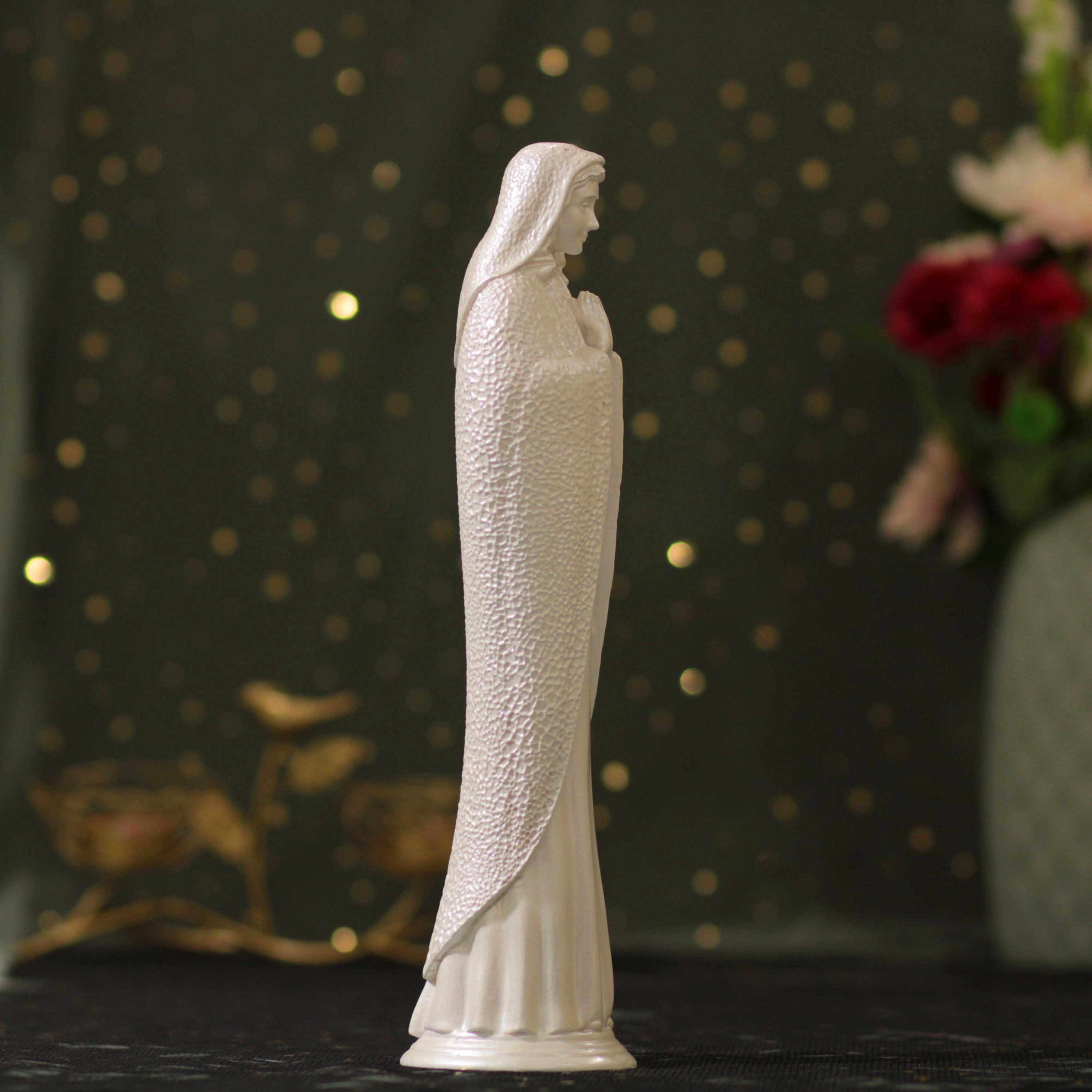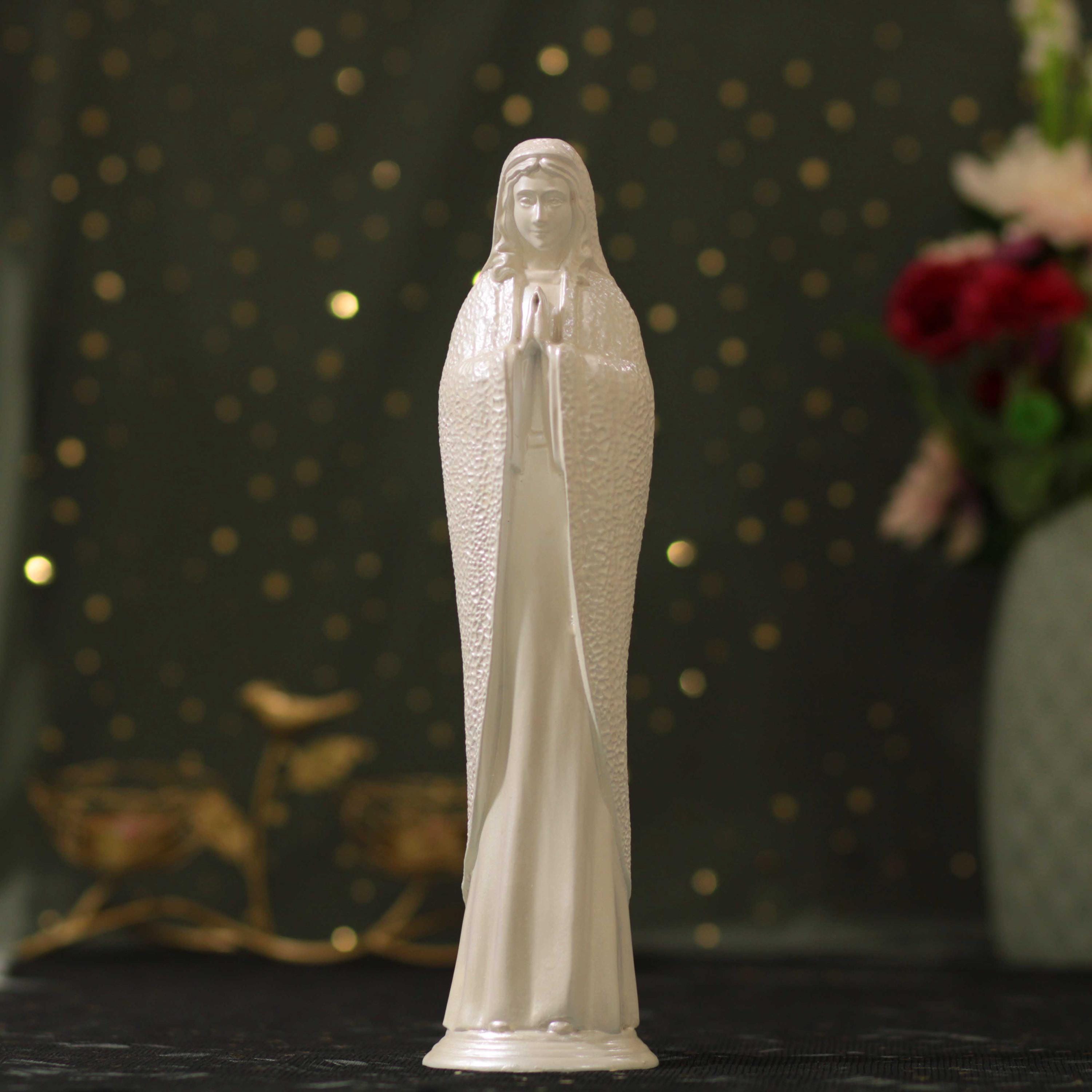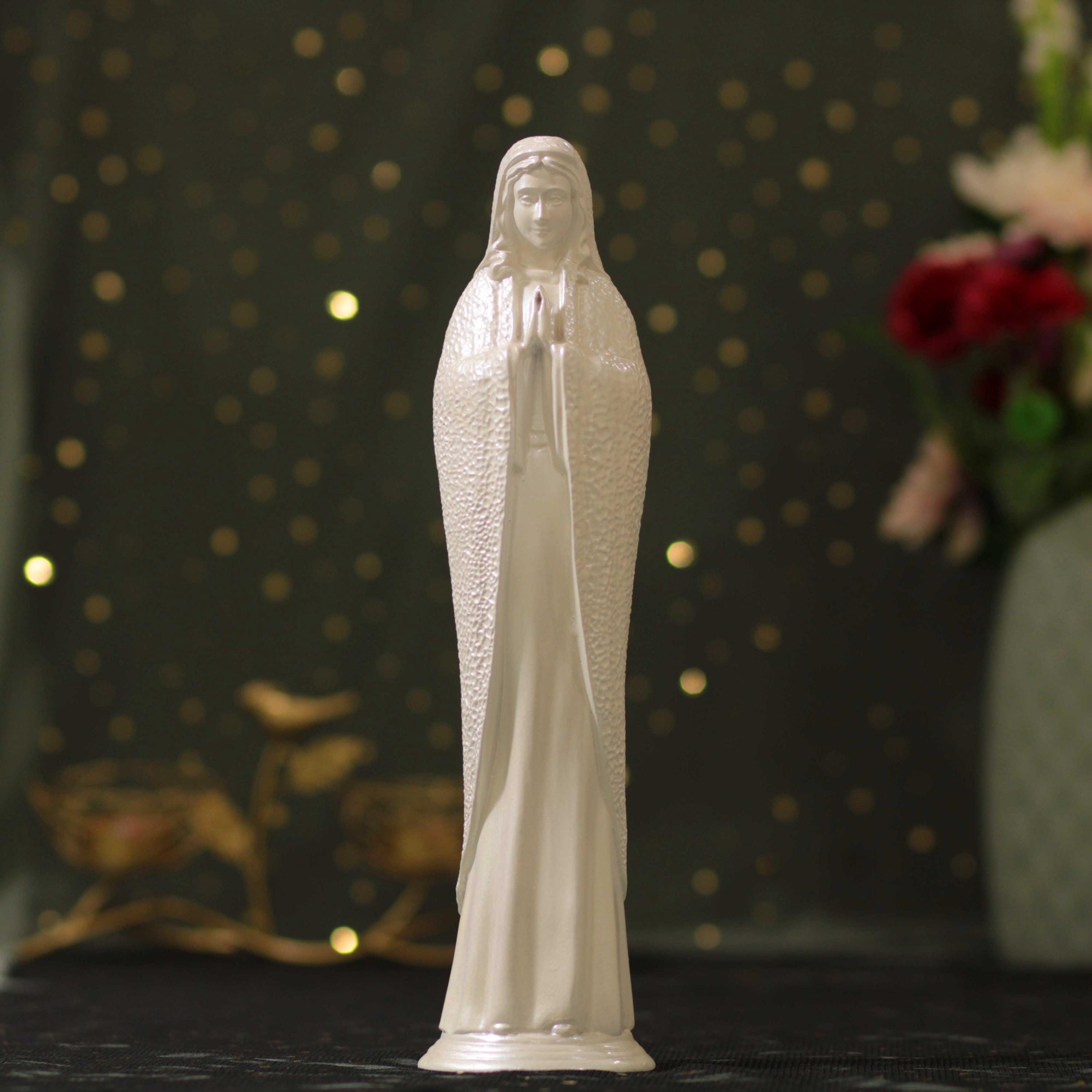 Mother Mary Wooden Statue– Pearl White Finish Catholic Decor, Handmade Religious Gift for Prayer Room or Home Altar Catholic Art