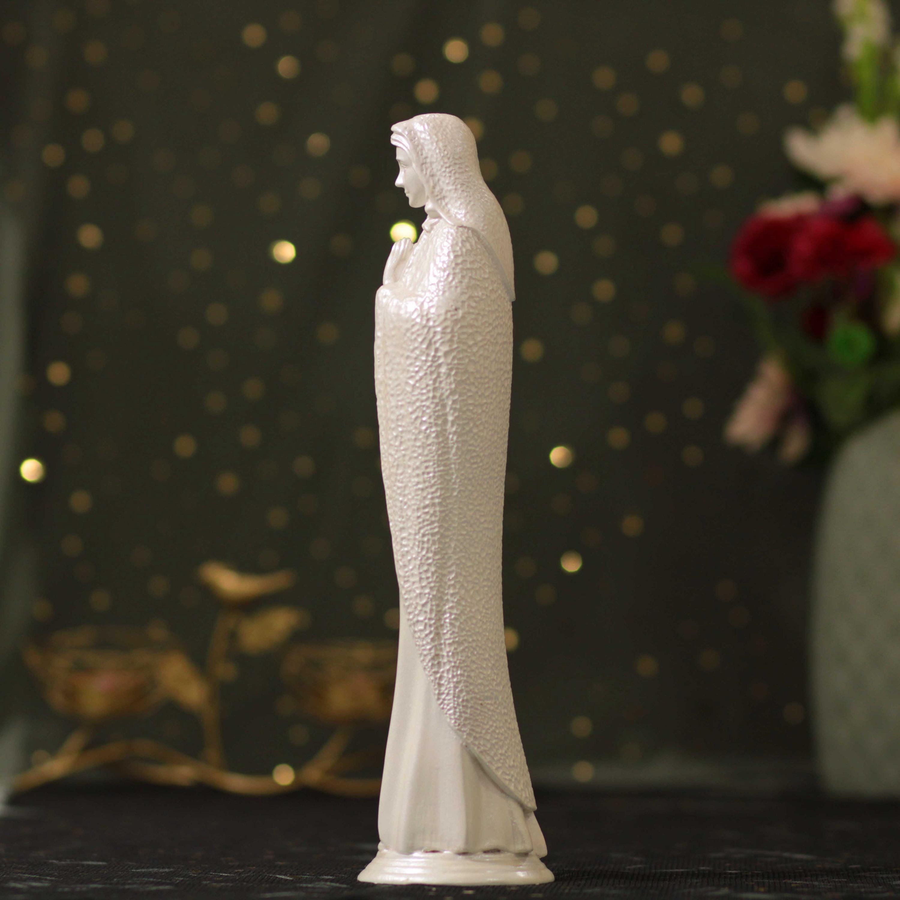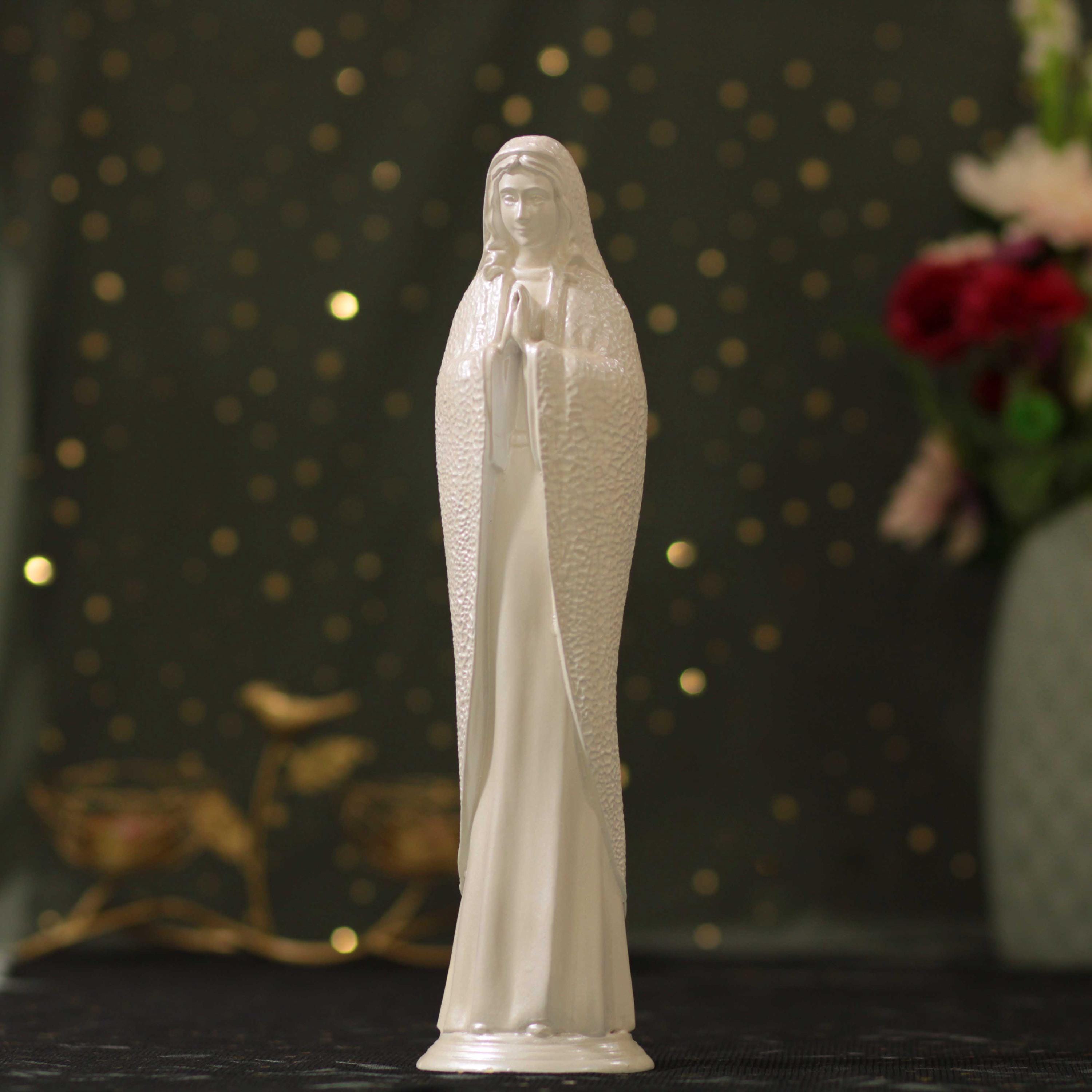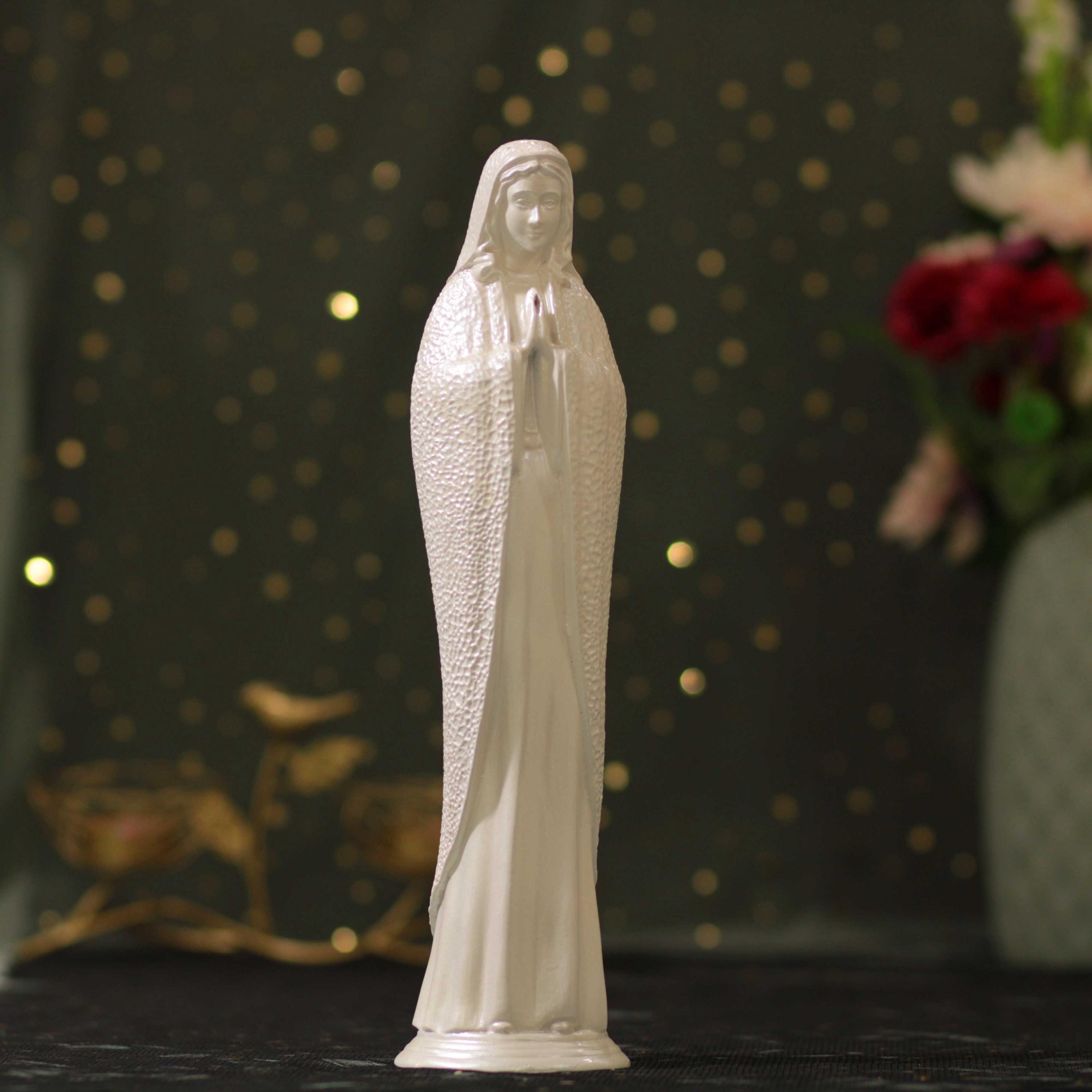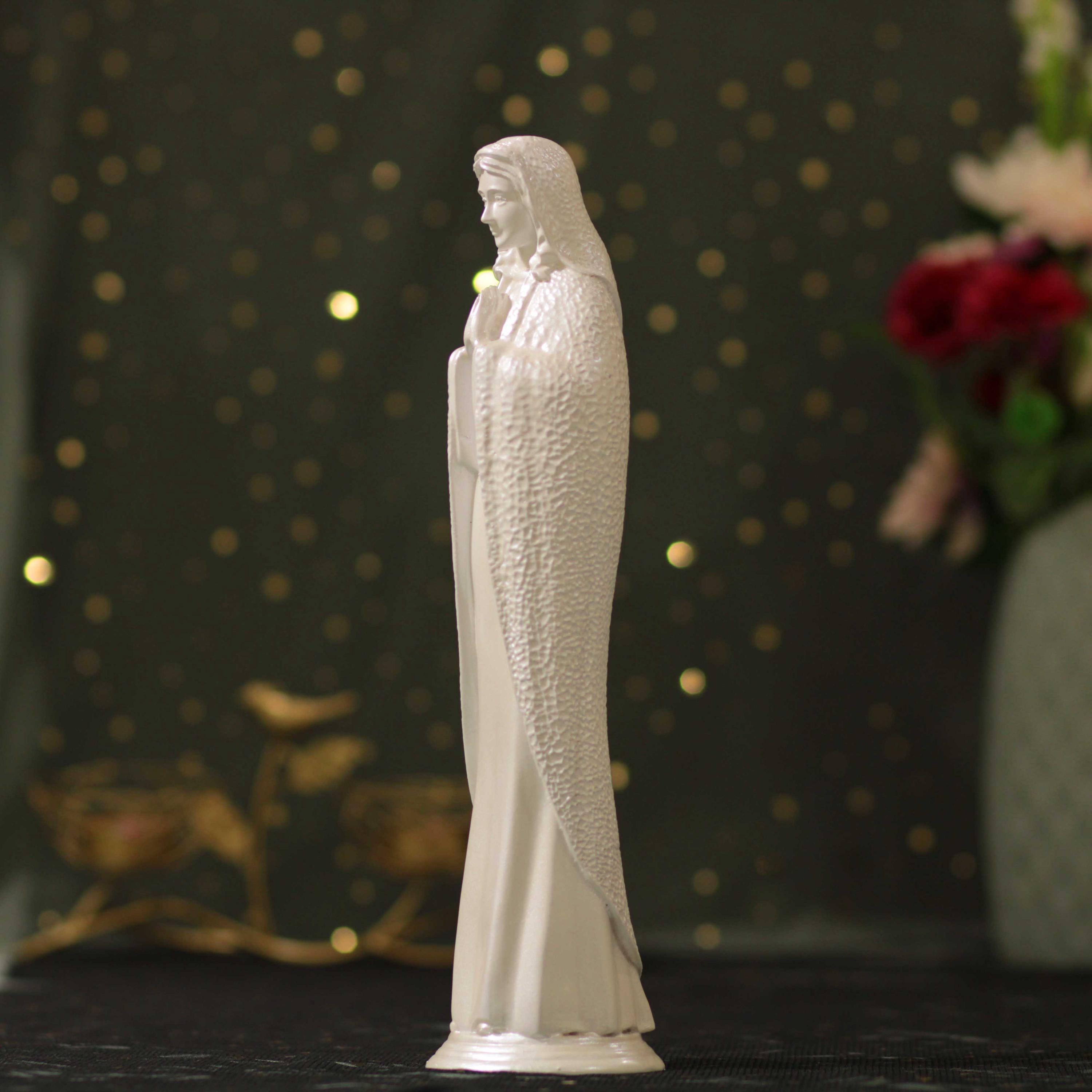 Mother Mary Wooden Statue– Pearl White Finish Catholic Decor, Handmade Religious Gift for Prayer Room or Home Altar Catholic Art