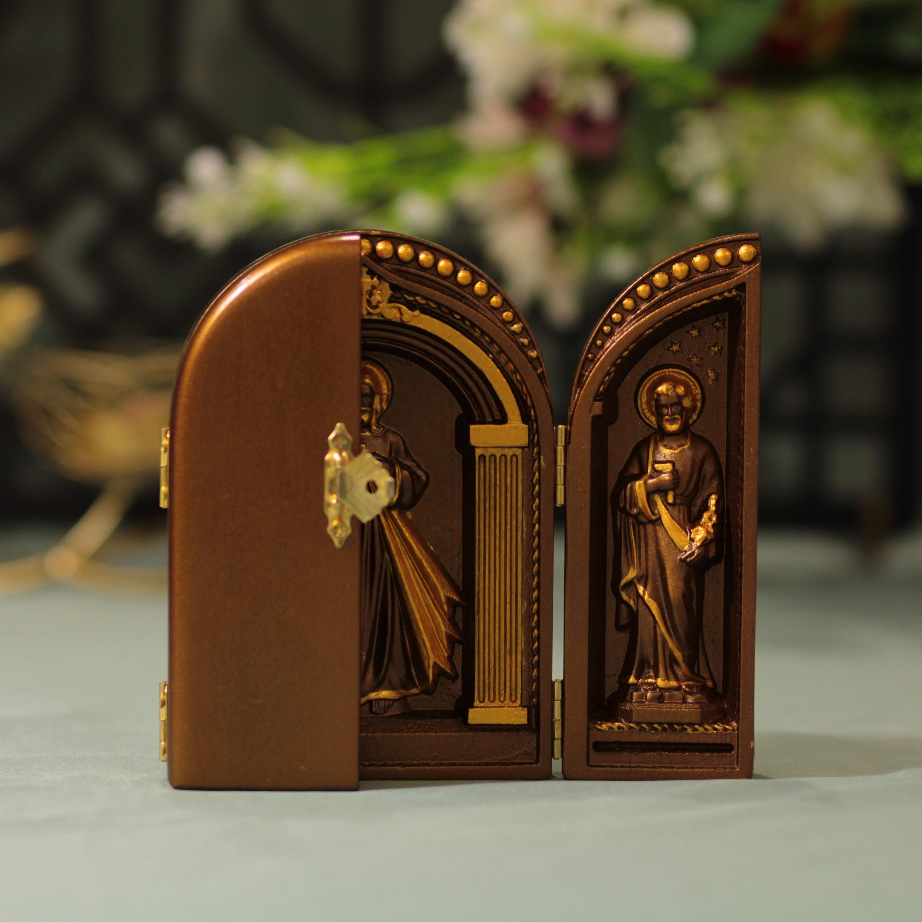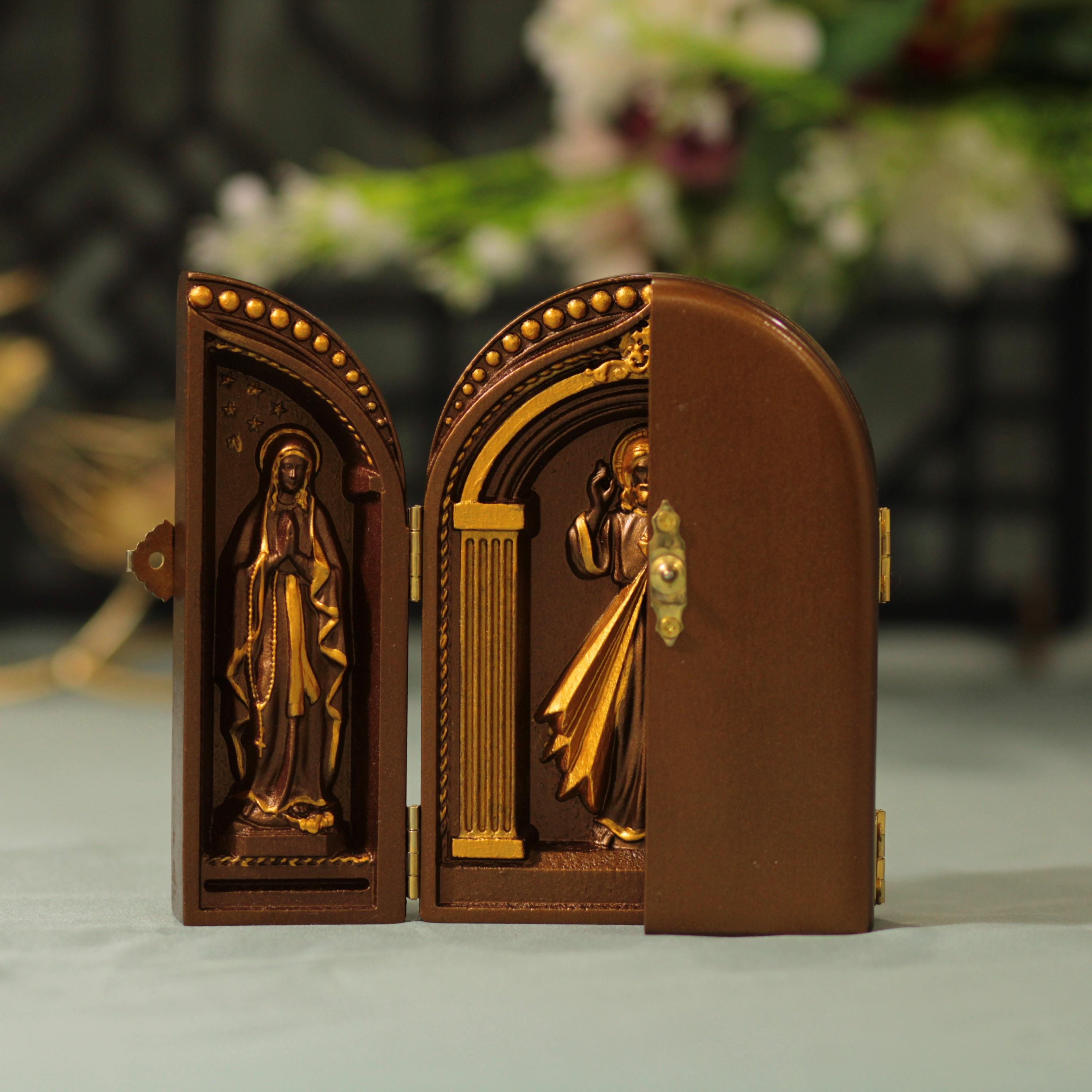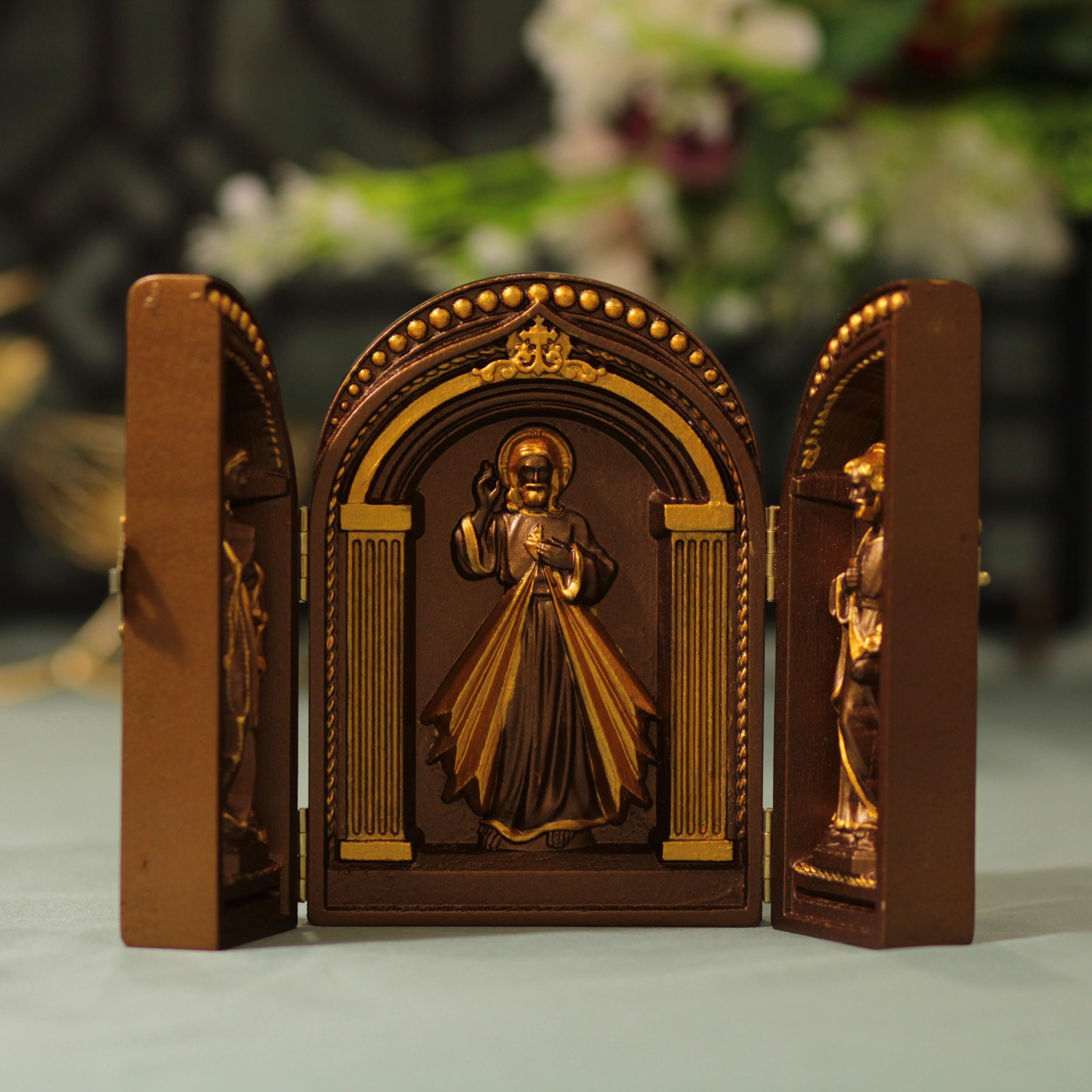 Bring timeless devotion into your home with this Catholic Triptych of Jesus Christ, Our Lady, and St. Joseph. Hand-carved from quality wood in a vintage style, this religious artwork is perfect for Catholic home dΓ©cor, prayer corners, or as a meaningful faith-filled gift.