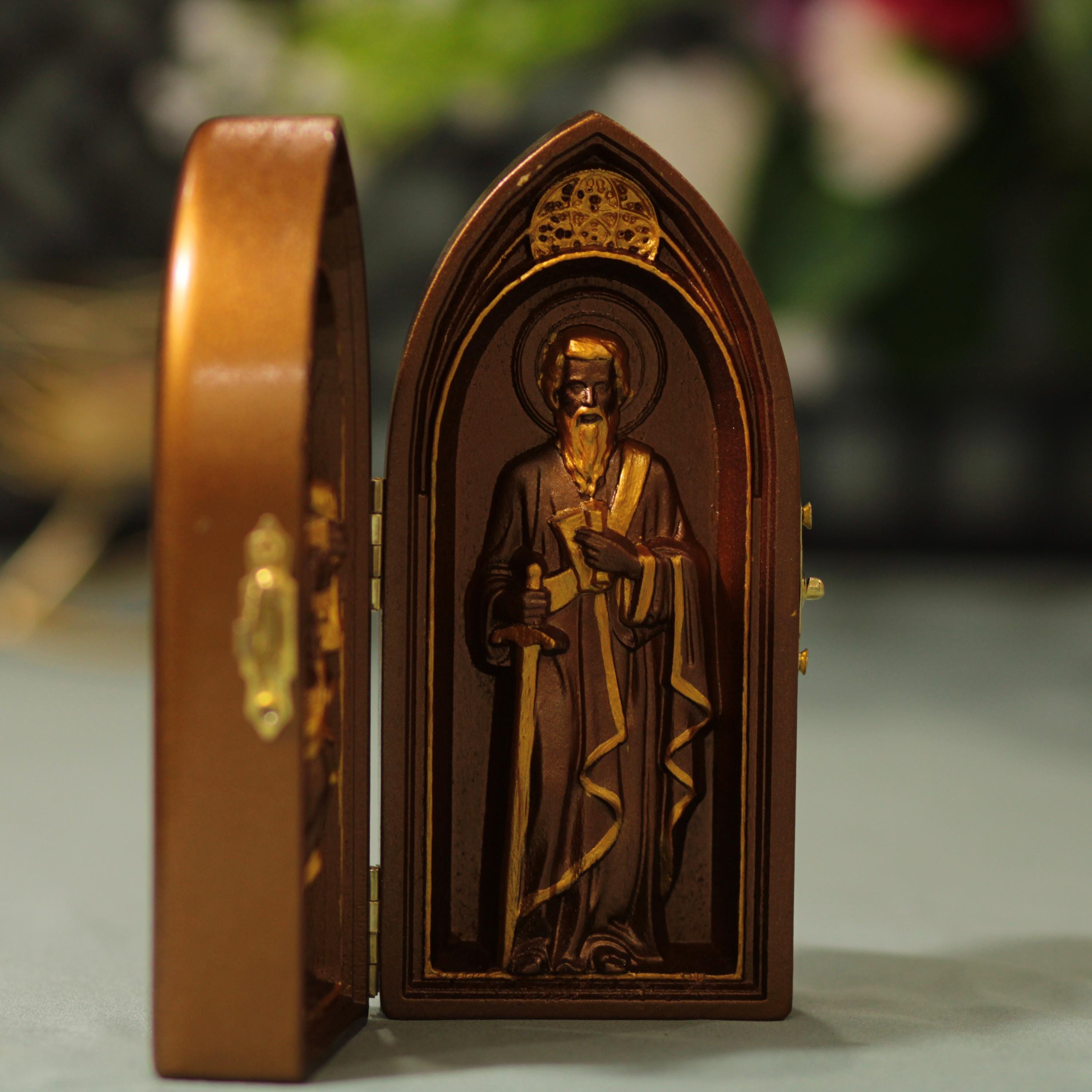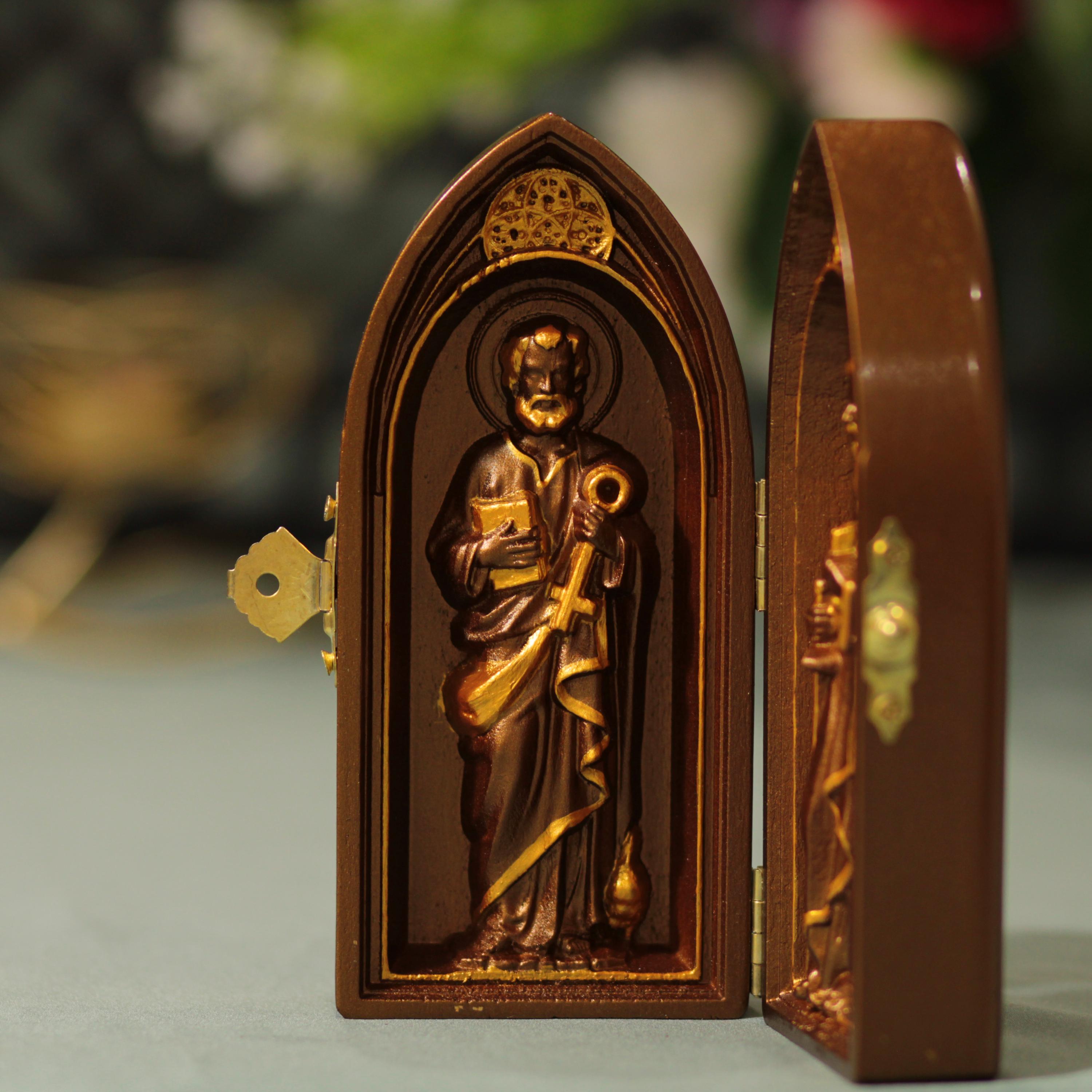 Bring timeless faith into your home with this Saint Peter & Saint Paul Wooden Diptych. Hand-carved in vintage style, this Catholic wall art is a meaningful piece for prayer corners, home altars, or as a cherished Christian gift. Perfect for religious occasions such as baptisms, confirmations, weddings, or feast days, the intricate craftsmanship highlights the devotion and spiritual heritage of the Church. A beautiful heirloom for collectors and a heartfelt present for loved ones who value traditional Catholic art.