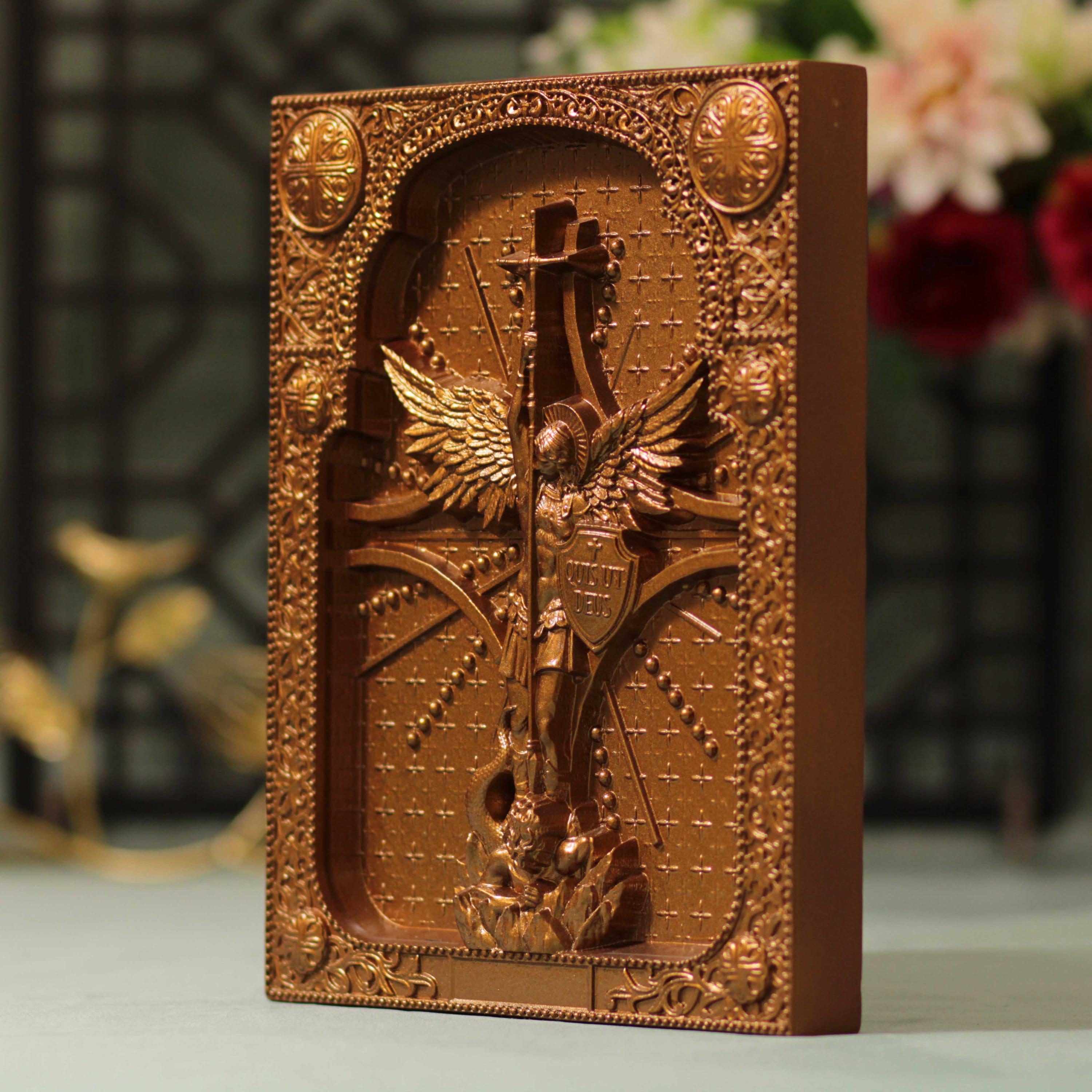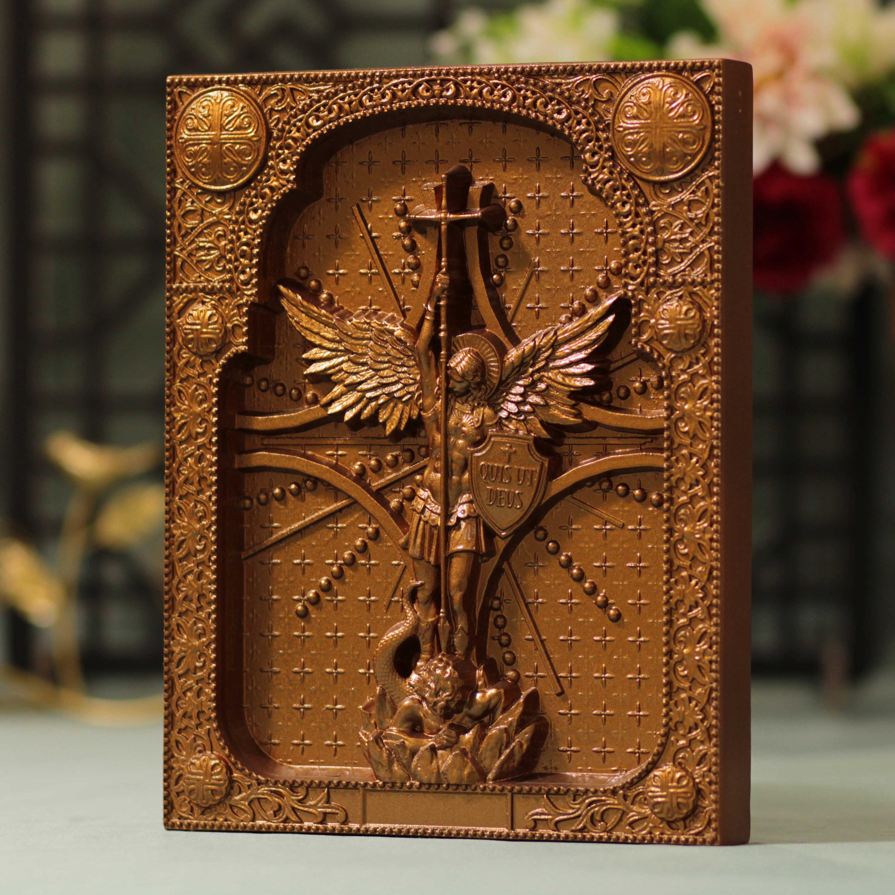 Bring the strength and protection of St. Michael the Archangel into your home with this beautifully crafted wooden wall art. Hand-carved in an antique style, this piece features a secure hanging hook, making it easy to display on any wall. Perfect for Catholic homes, prayer corners, or as a meaningful gift for loved ones. Each artwork is made with attention to detail, capturing the timeless presence of the Archangel. Ideal for Christmas, confirmation, or special occasions.