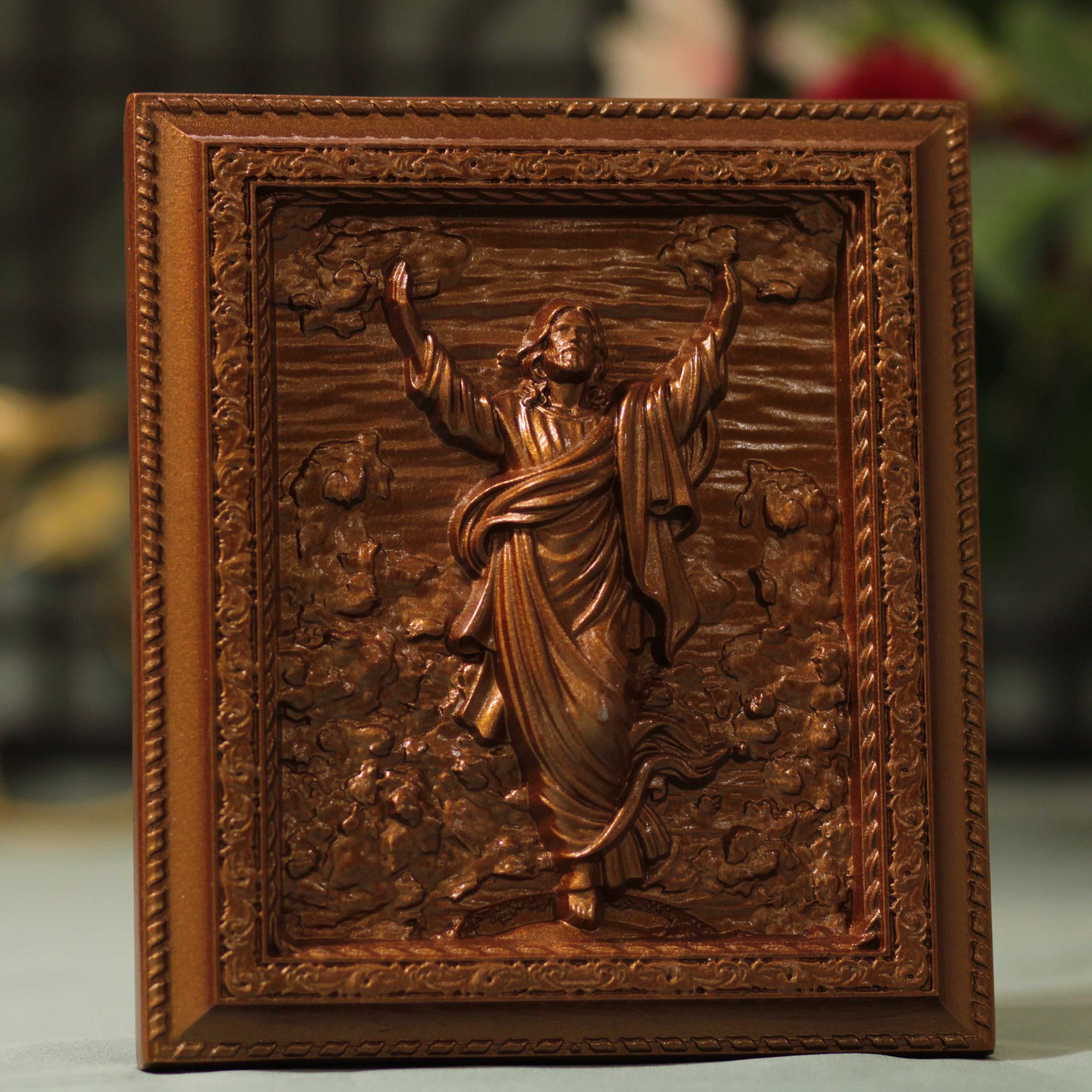 Resurrection of Jesus Christ Wooden Wall Art - Antique Style Religious Decor with Hanging Hook for Christian Homes