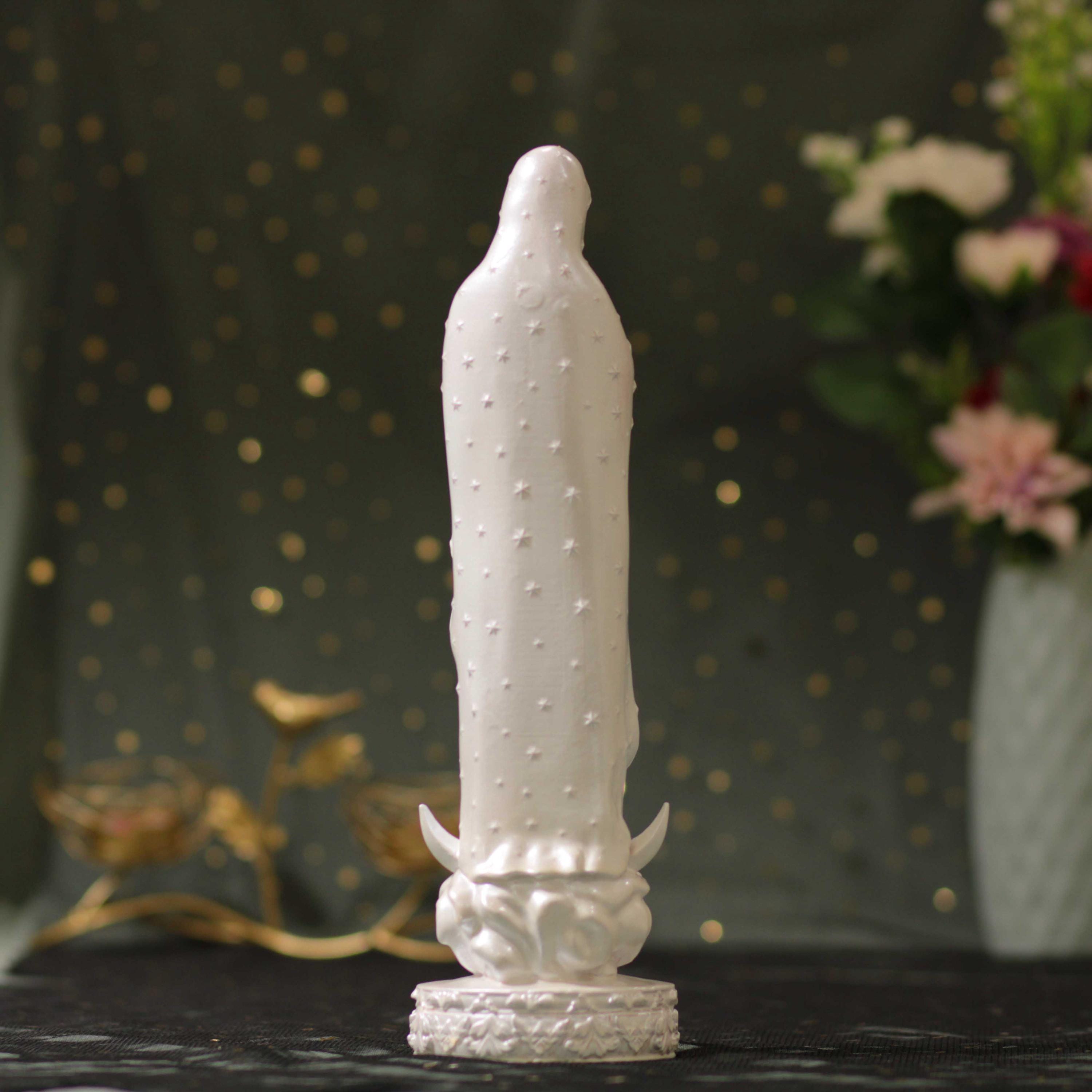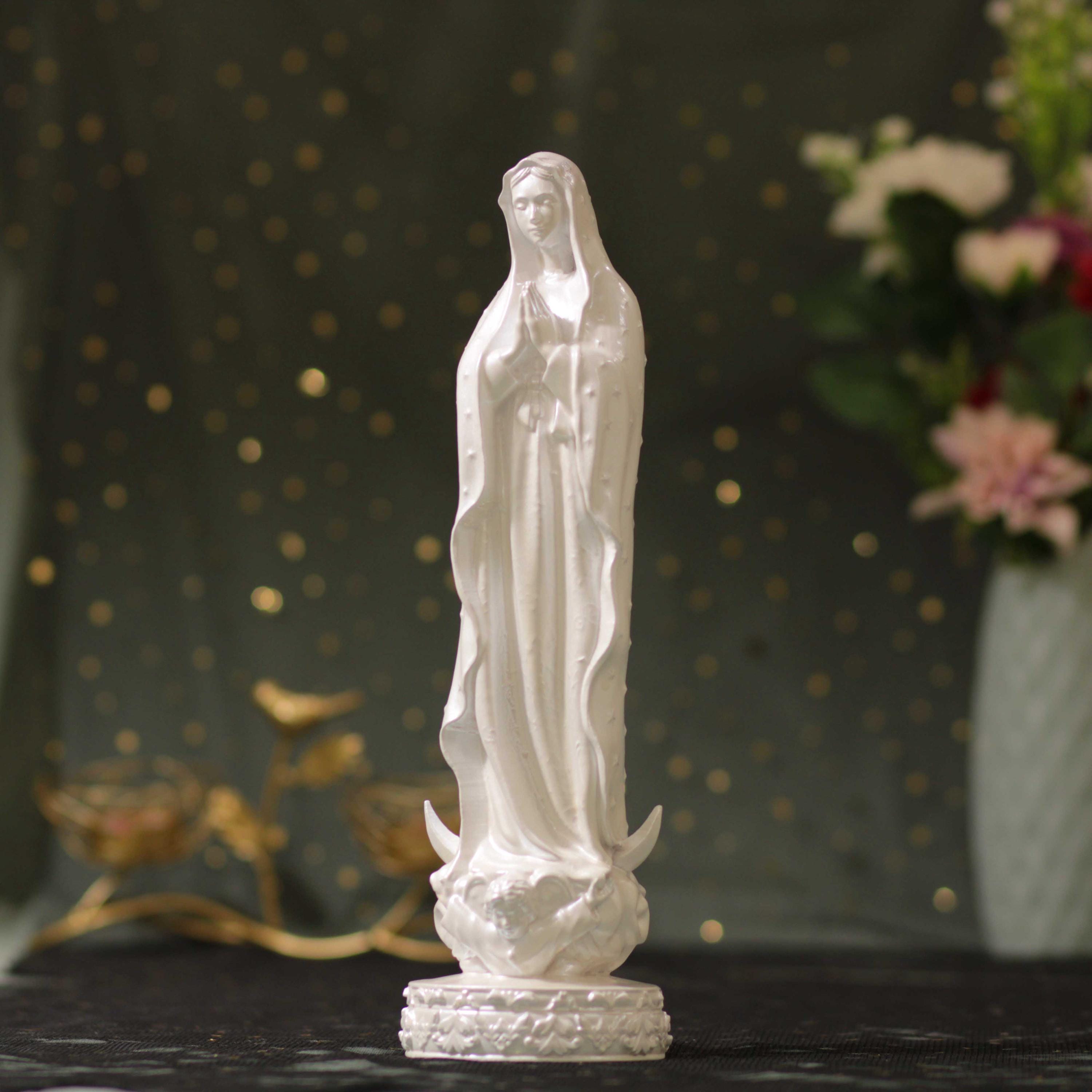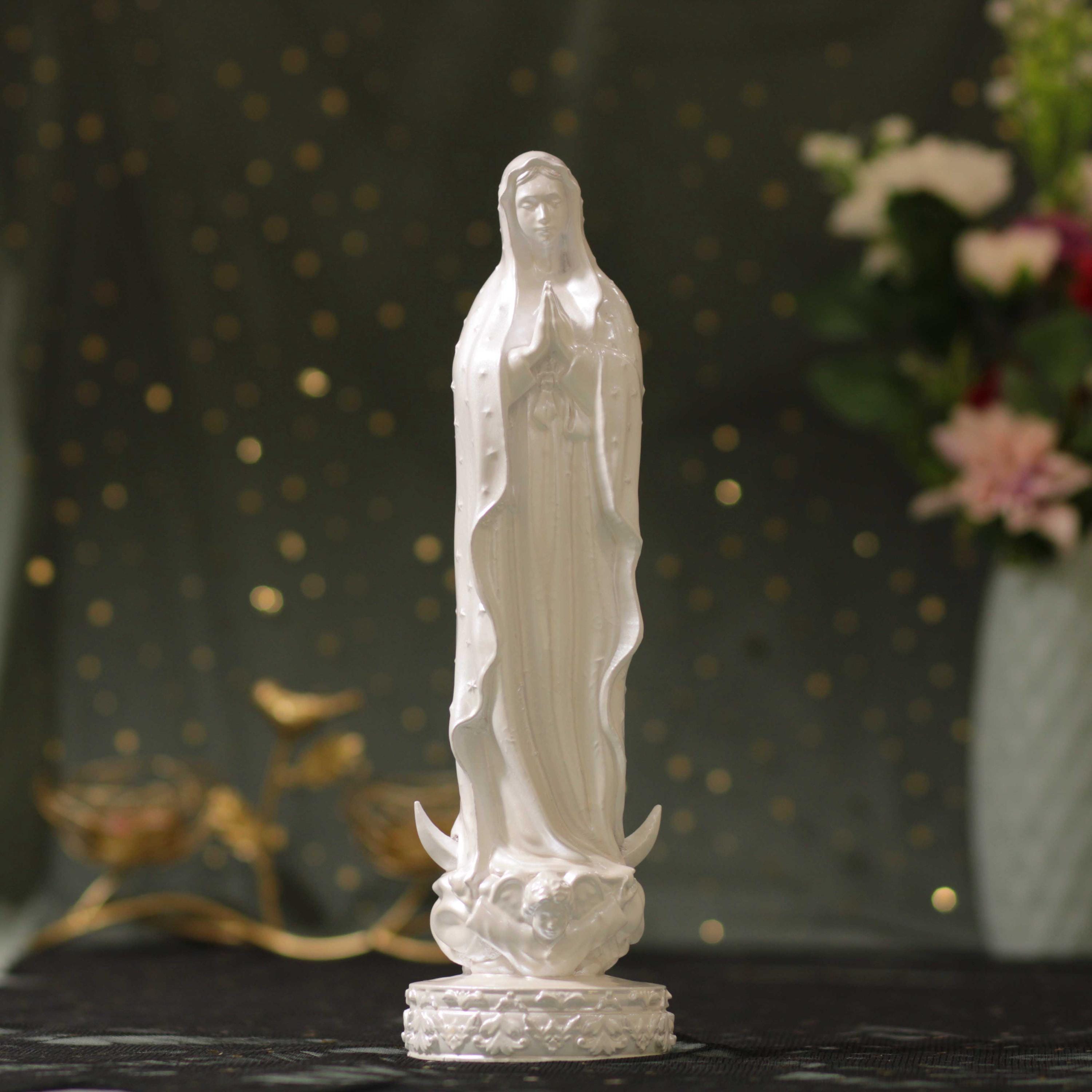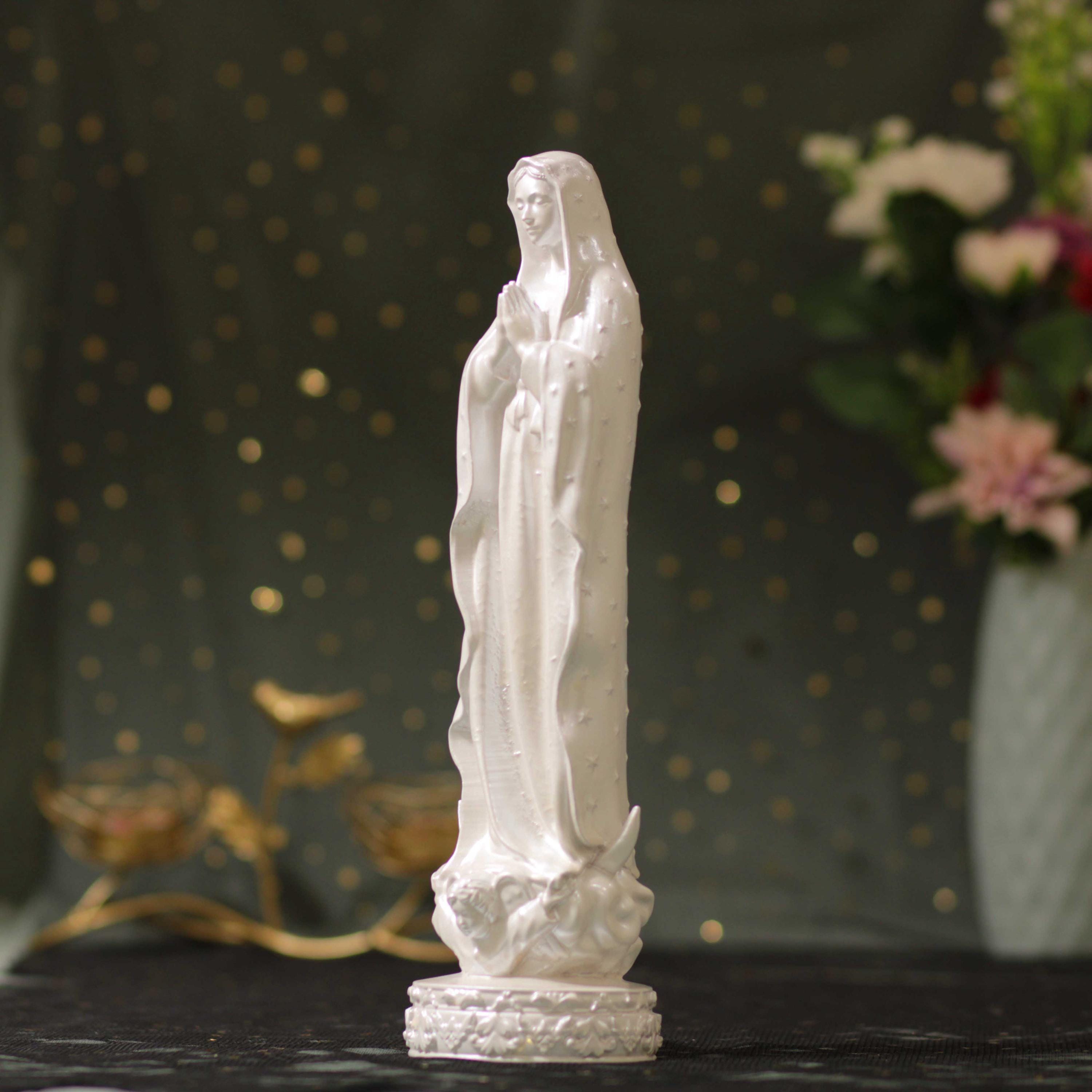 Our Lady of Guadalupe Wooden Statue - Pearl White Catholic Virgin Mary Decor & Gift for Home, Church, or Prayer