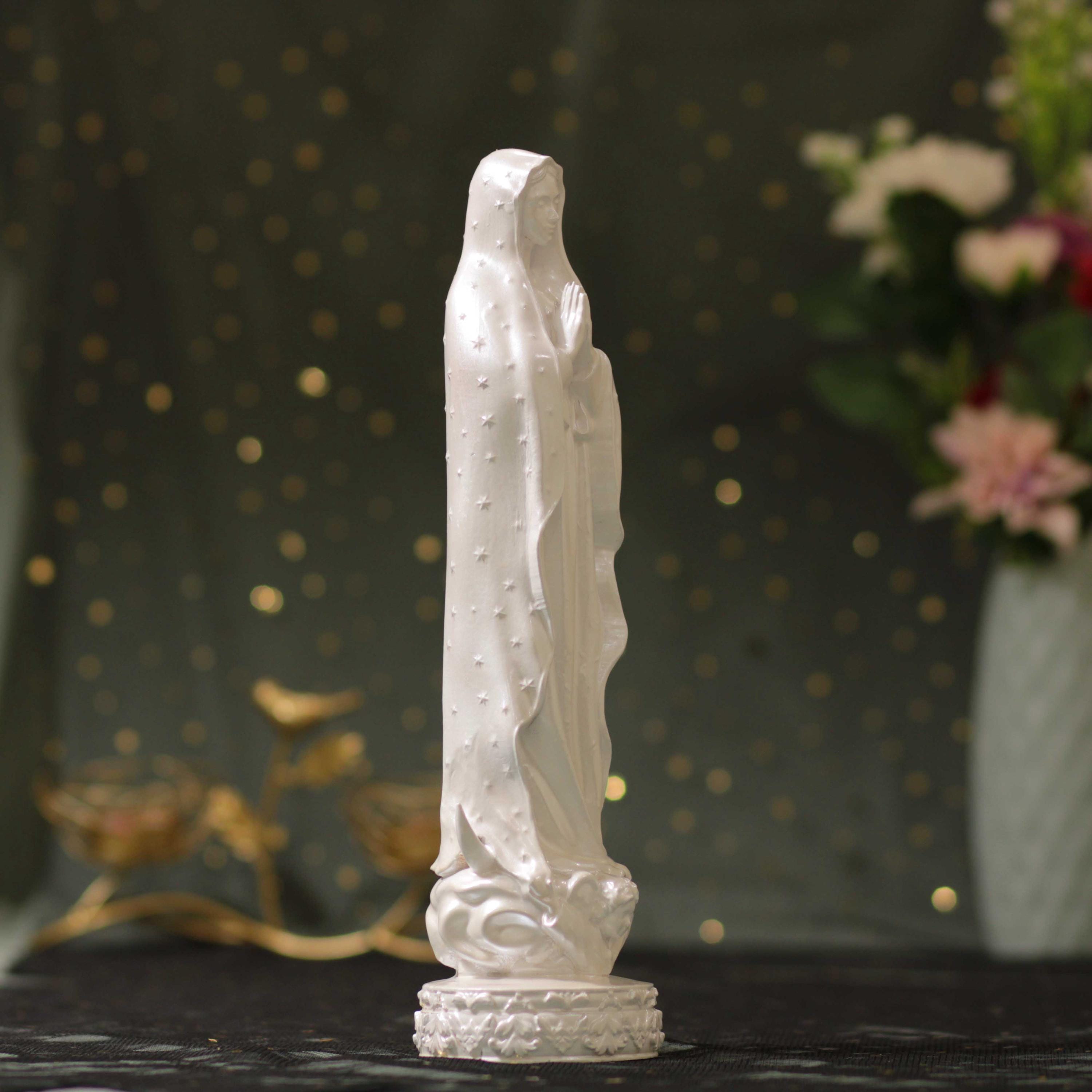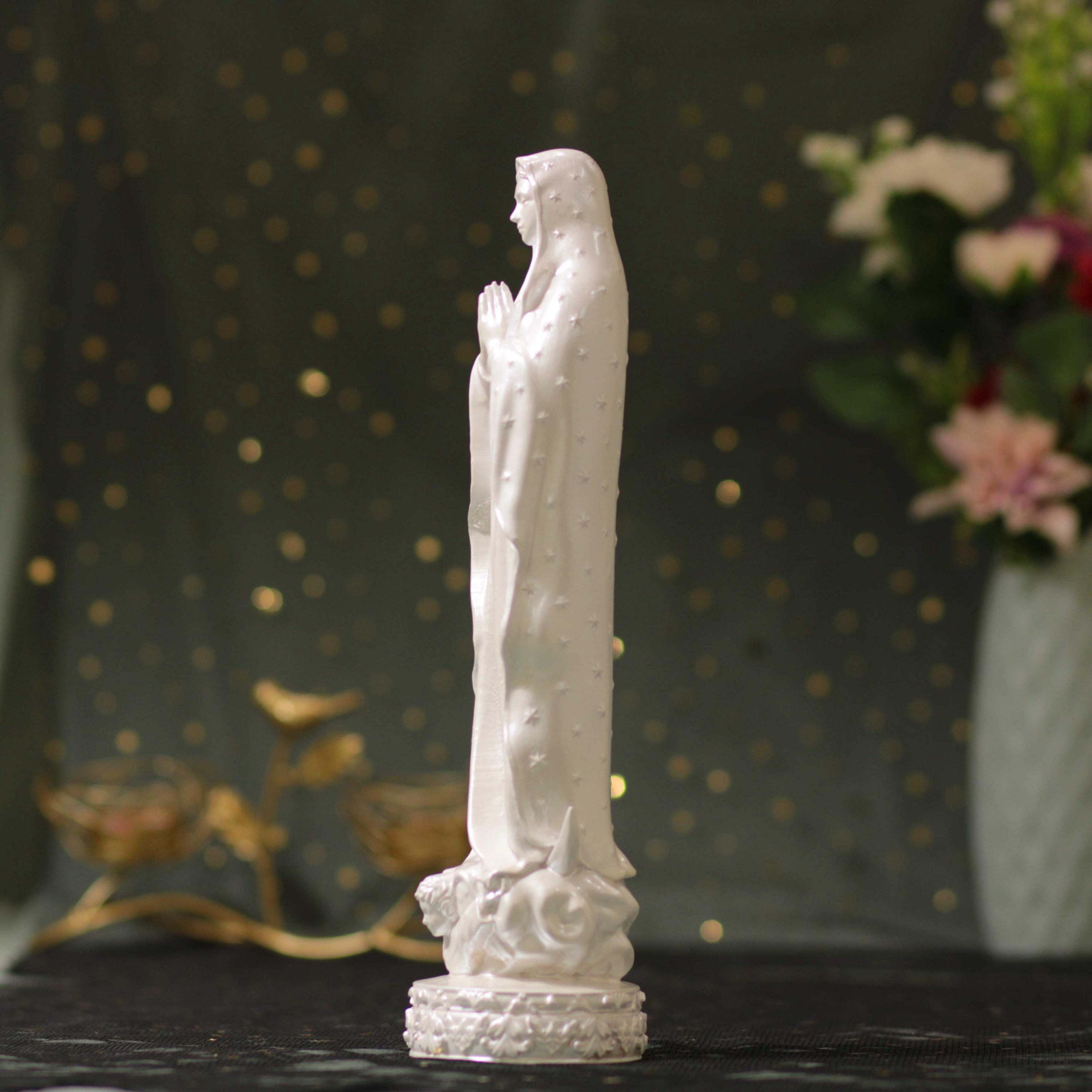Honor your faith with this beautifully crafted Our Lady of Guadalupe Wooden Statue in a serene pearl white finish. Perfect for Catholic homes, churches, or prayer spaces, this statue makes a thoughtful gift for baptisms, confirmations, or special religious occasions. Hand-carved with care, it reflects devotion, elegance, and timeless spiritual beauty. Enhance your sacred space or share this meaningful gift with loved ones today.