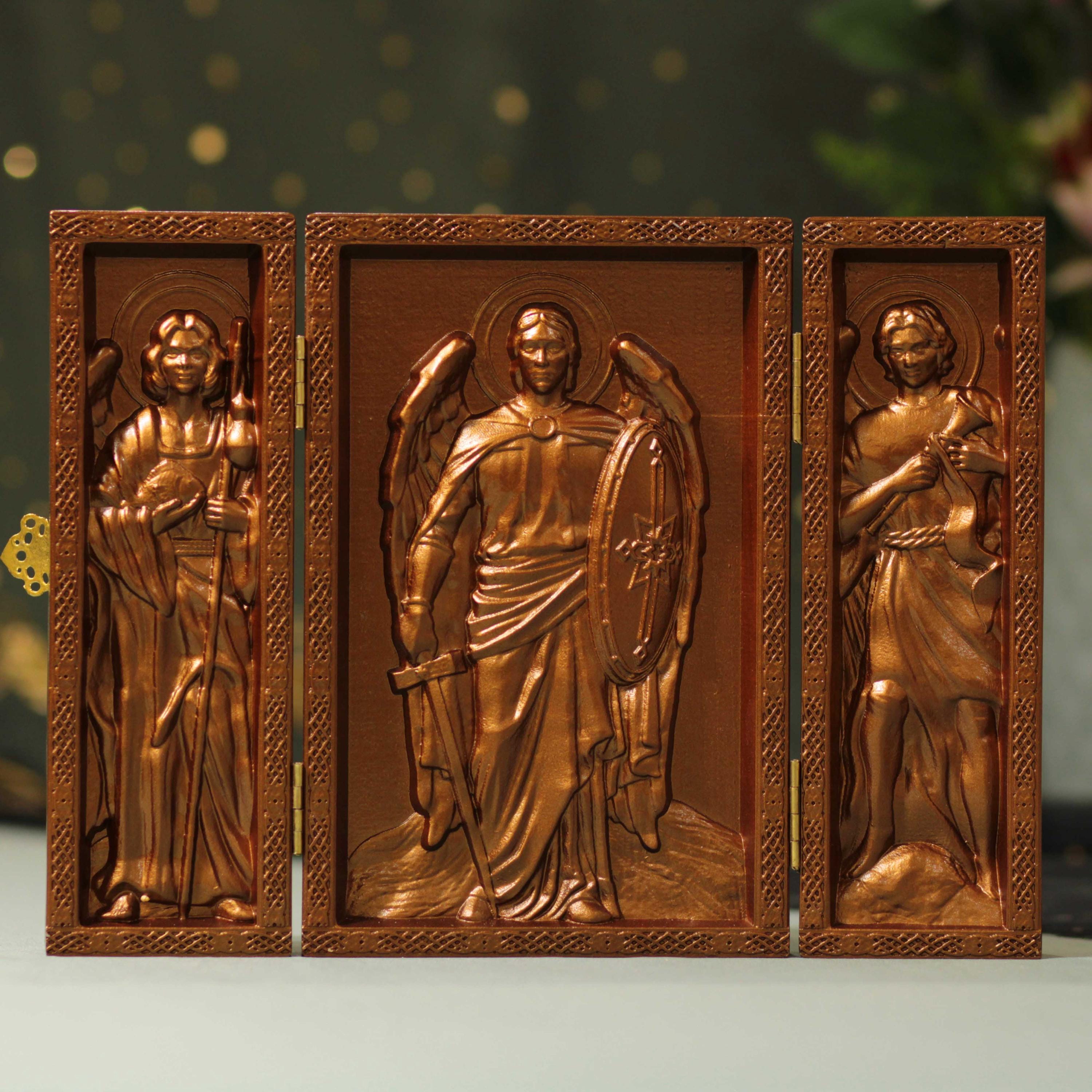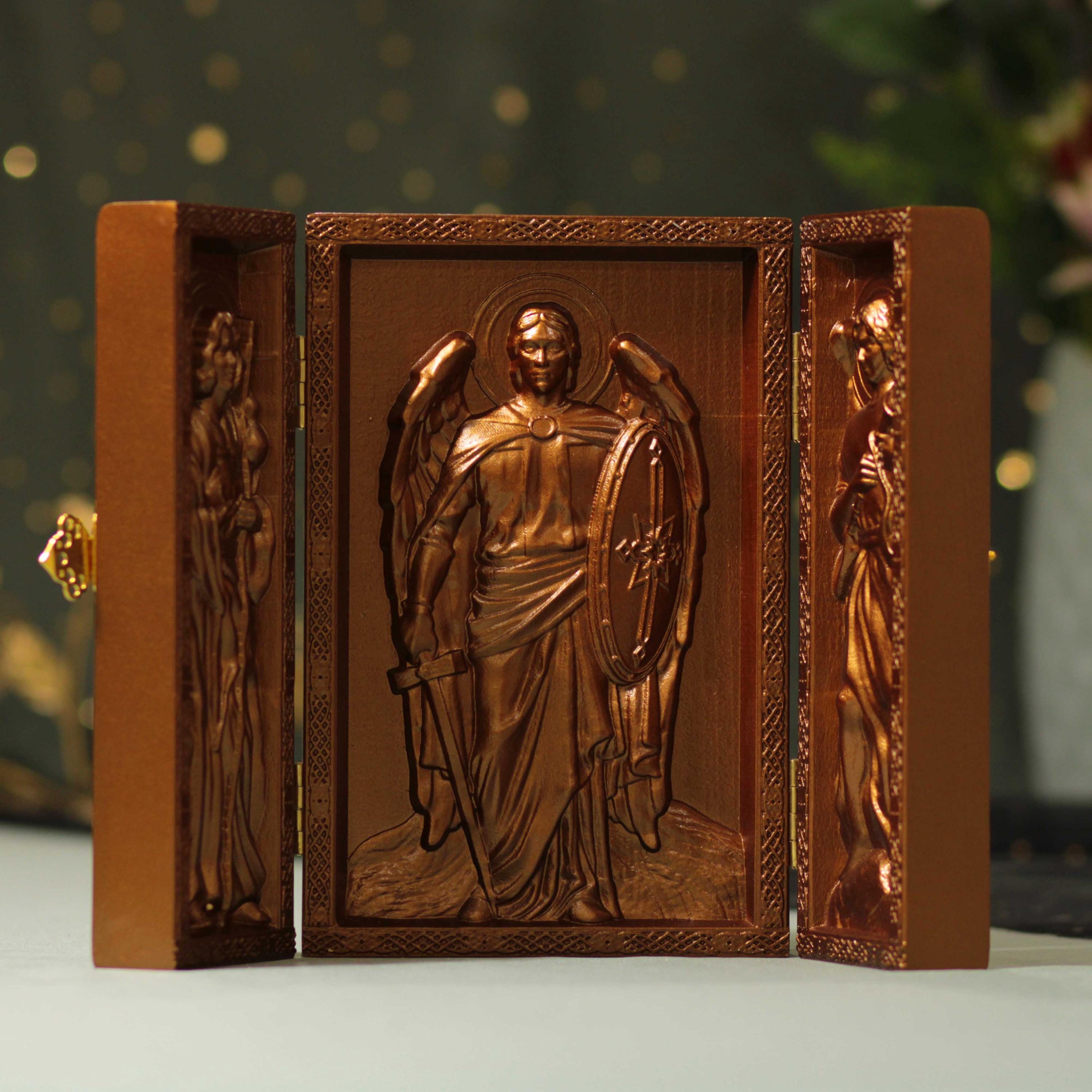 Holy Archangels Wooden Triptych • Antique Style Catholic Decor • Handmade Christian Gift • Religious Home Altar Art