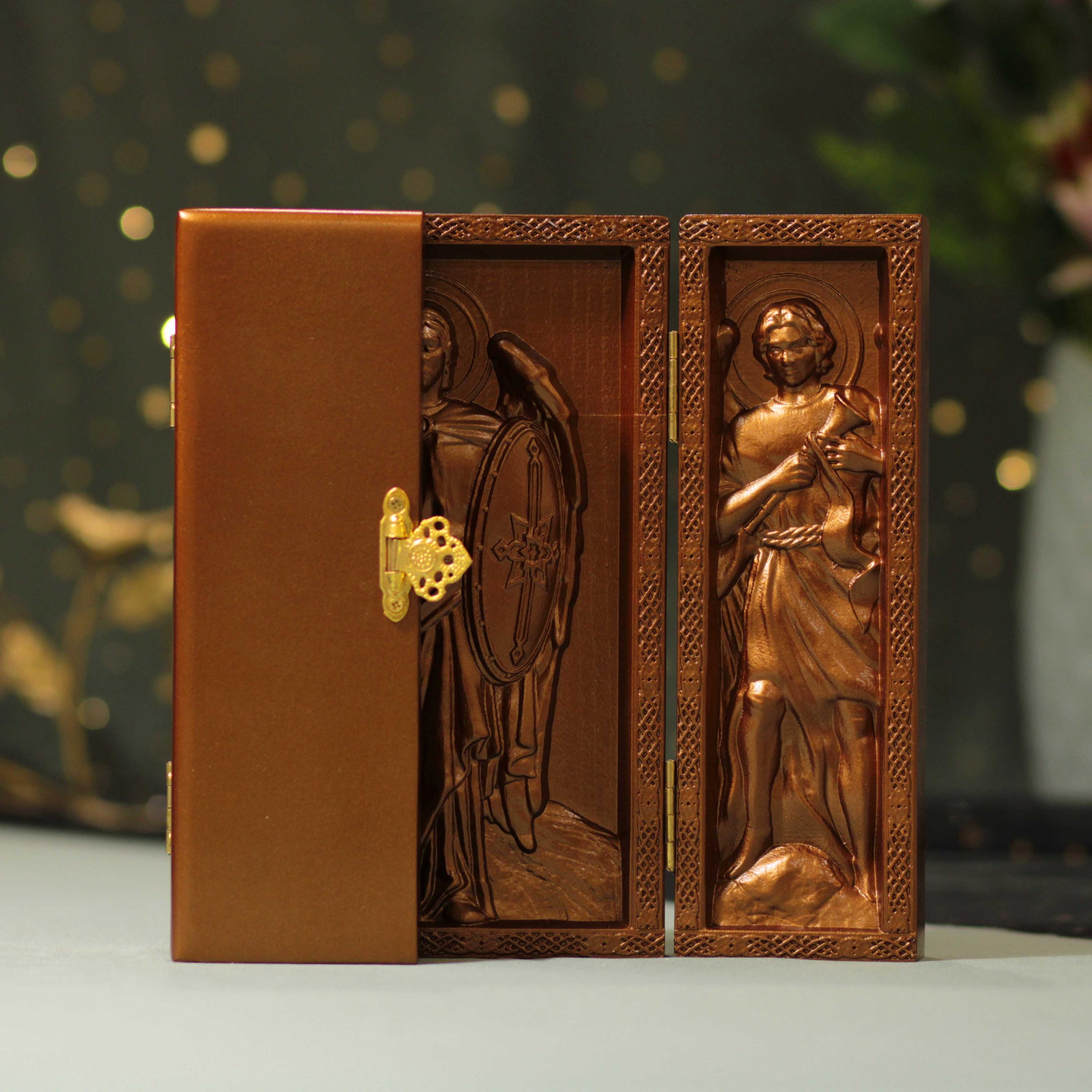 This triptych makes a meaningful gift for Catholic families, church members, and anyone who loves traditional Christian art. Perfect for home altars, personal prayer corners, and religious celebrations.