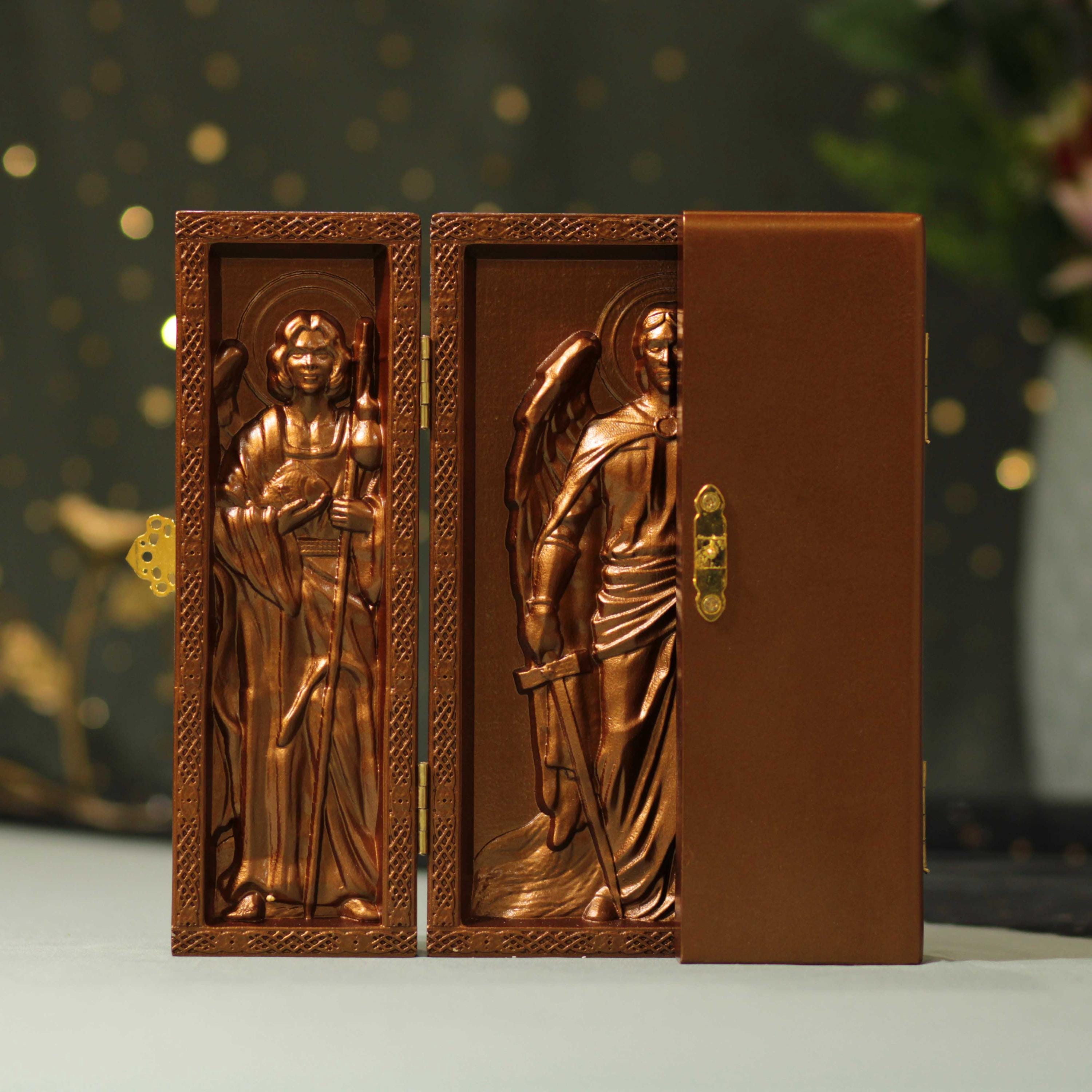 Bring a sense of sacred beauty into your home with this Holy Archangels Wooden Triptych crafted in an antique style. Each panel is hand-carved from natural wood, designed to honor the powerful presence of the Archangels and to enrich your prayer space with peace and devotion.