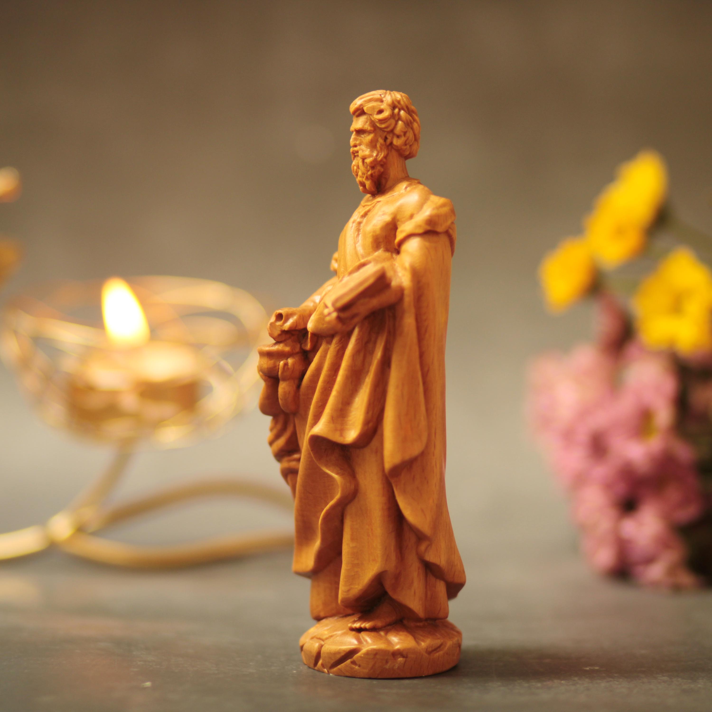 Saint Paul Wooden Statue – Hand-Carved Christian Decor | Catholic Gifts for Home, Chapel, Prayer Room | Apostle Paul Figurine