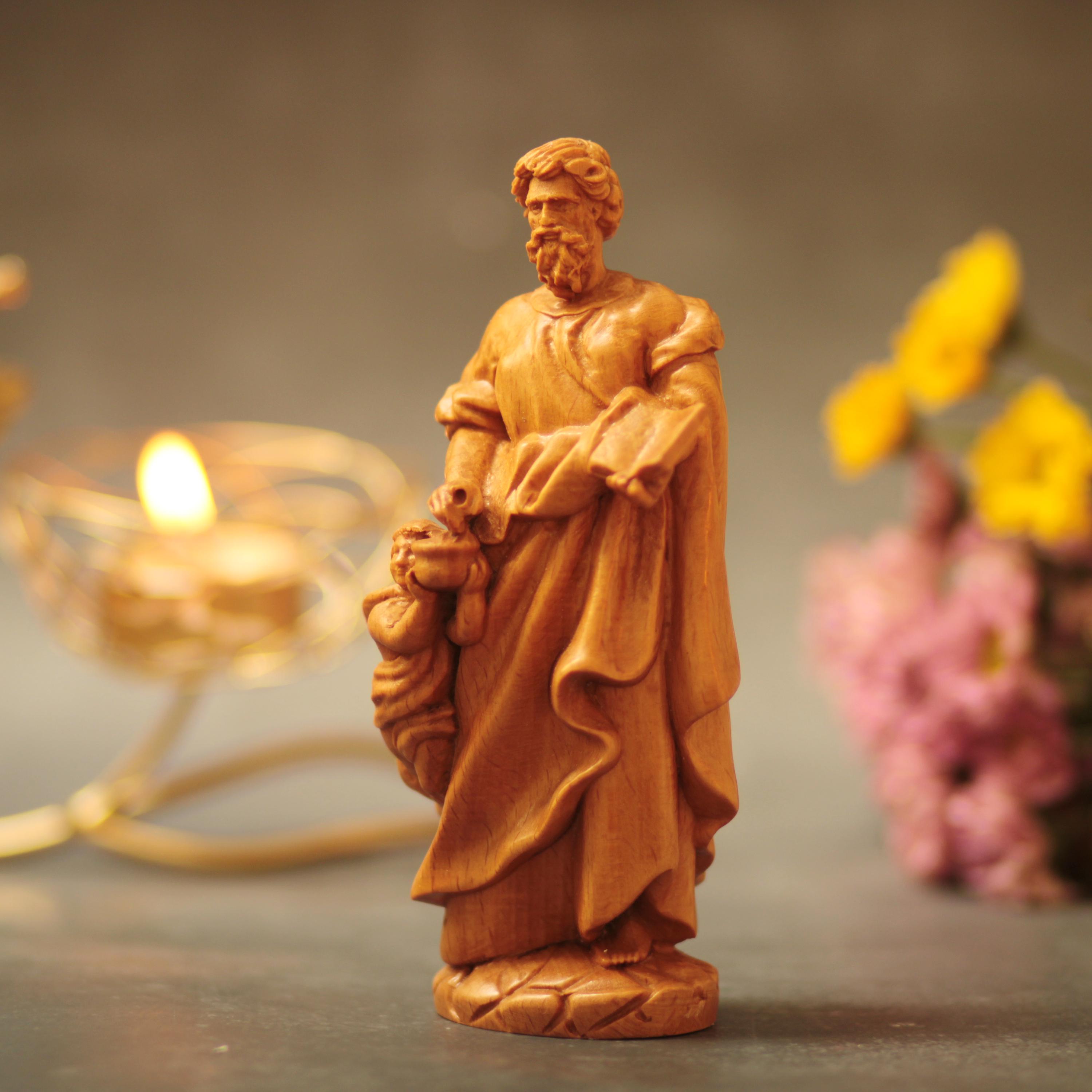 Each piece is carefully carved from quality wood, sanded by hand, and finished with a smooth, reverent antique look. This figurine makes a heartfelt Catholic gift for Christmas, feast days, baptisms, confirmations, or for anyone who holds a special devotion to St. Paul.