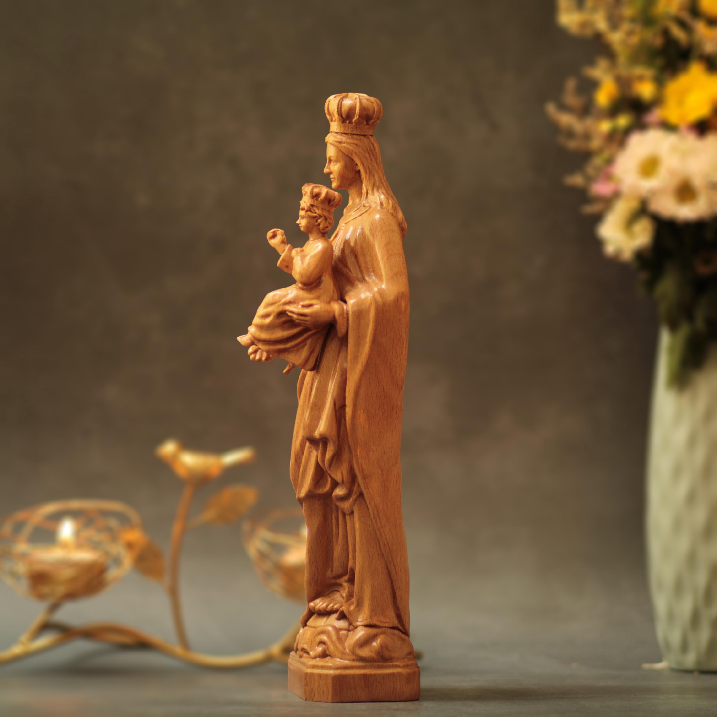 Mother Mary with Baby Jesus Wooden Statue | Catholic Gift | Handmade Maple Wood Sculpture | Christian Home Decor