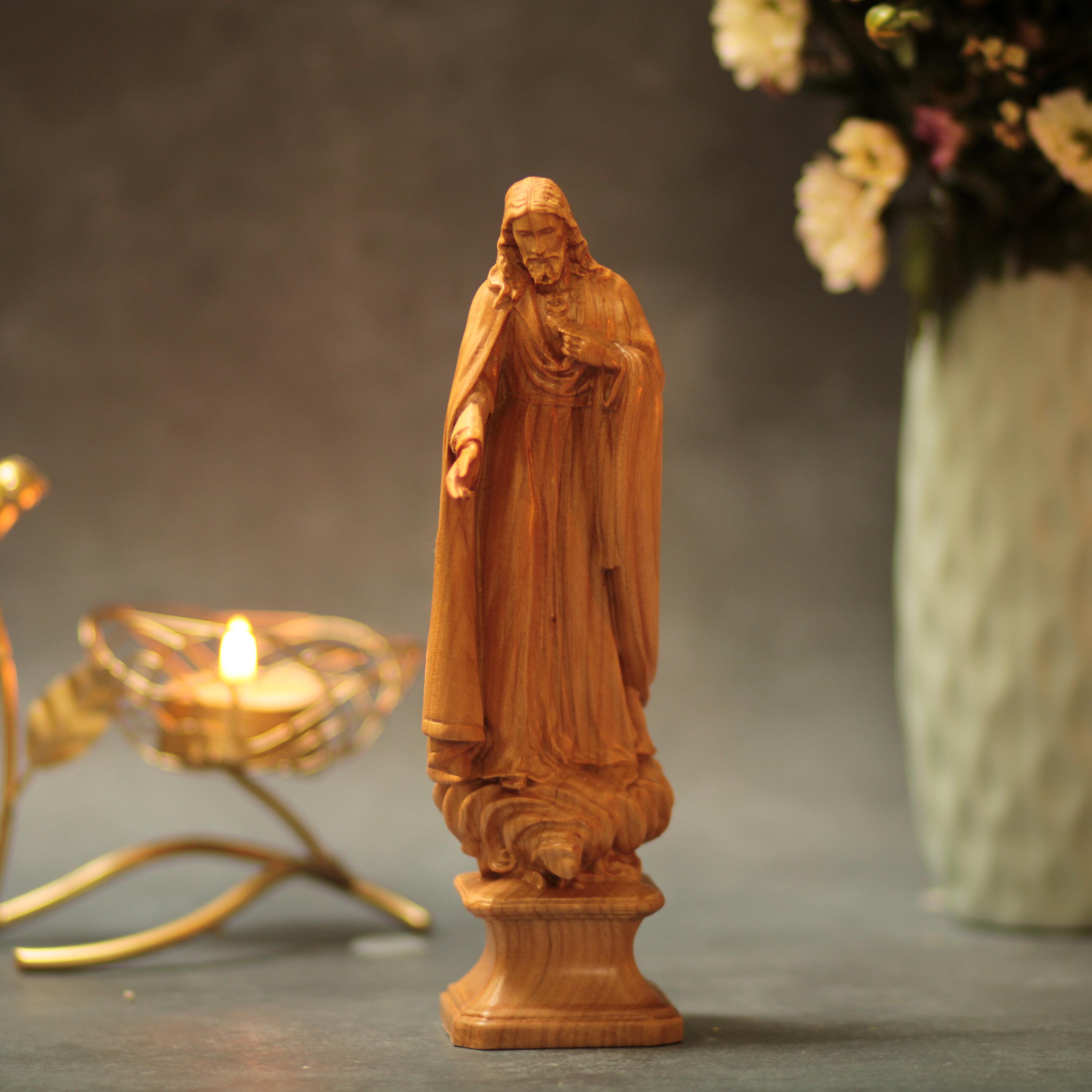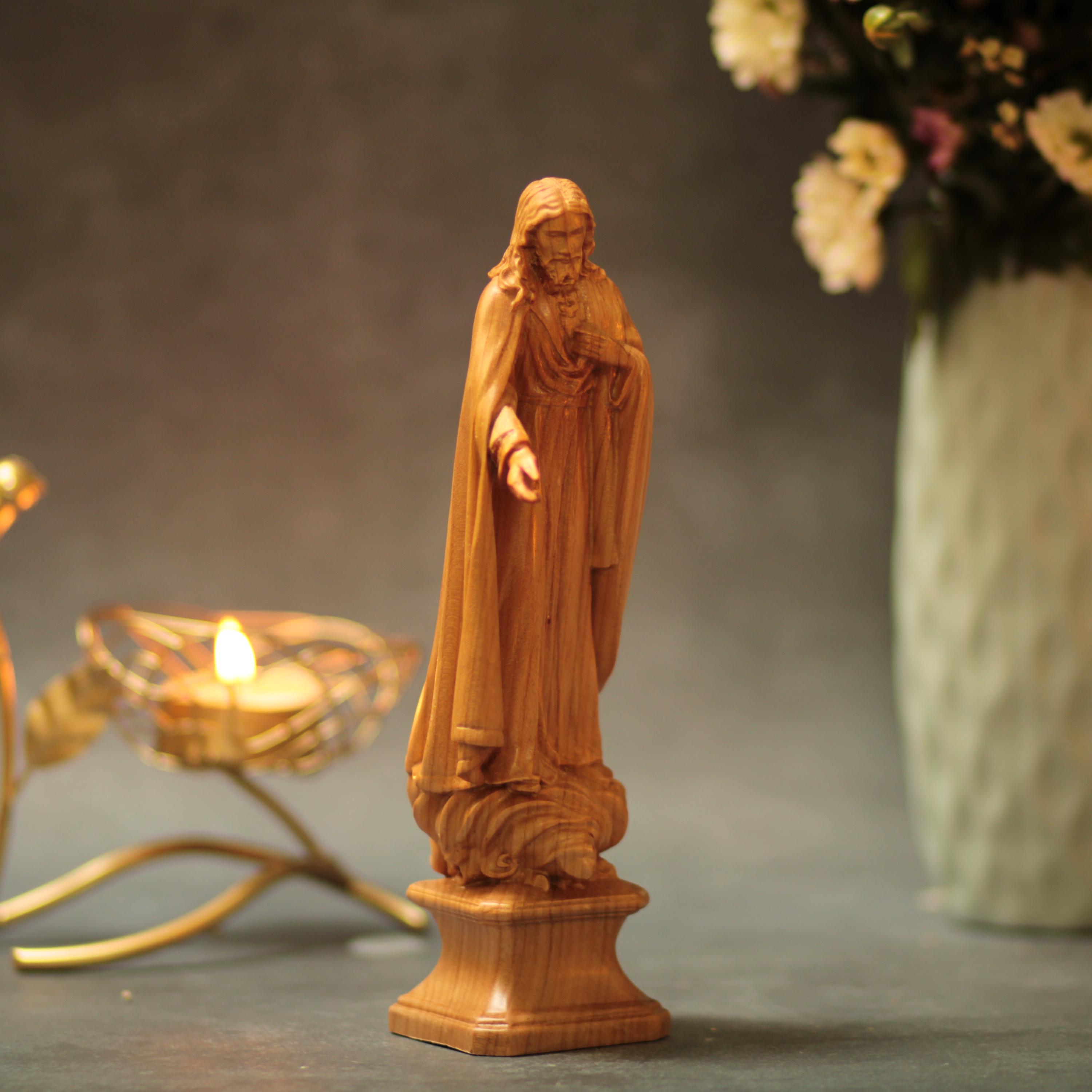 Sacred Heart of Jesus Wooden Statue | Catholic Gift, Religious Home Decor, Christmas & Feast Day Keepsake