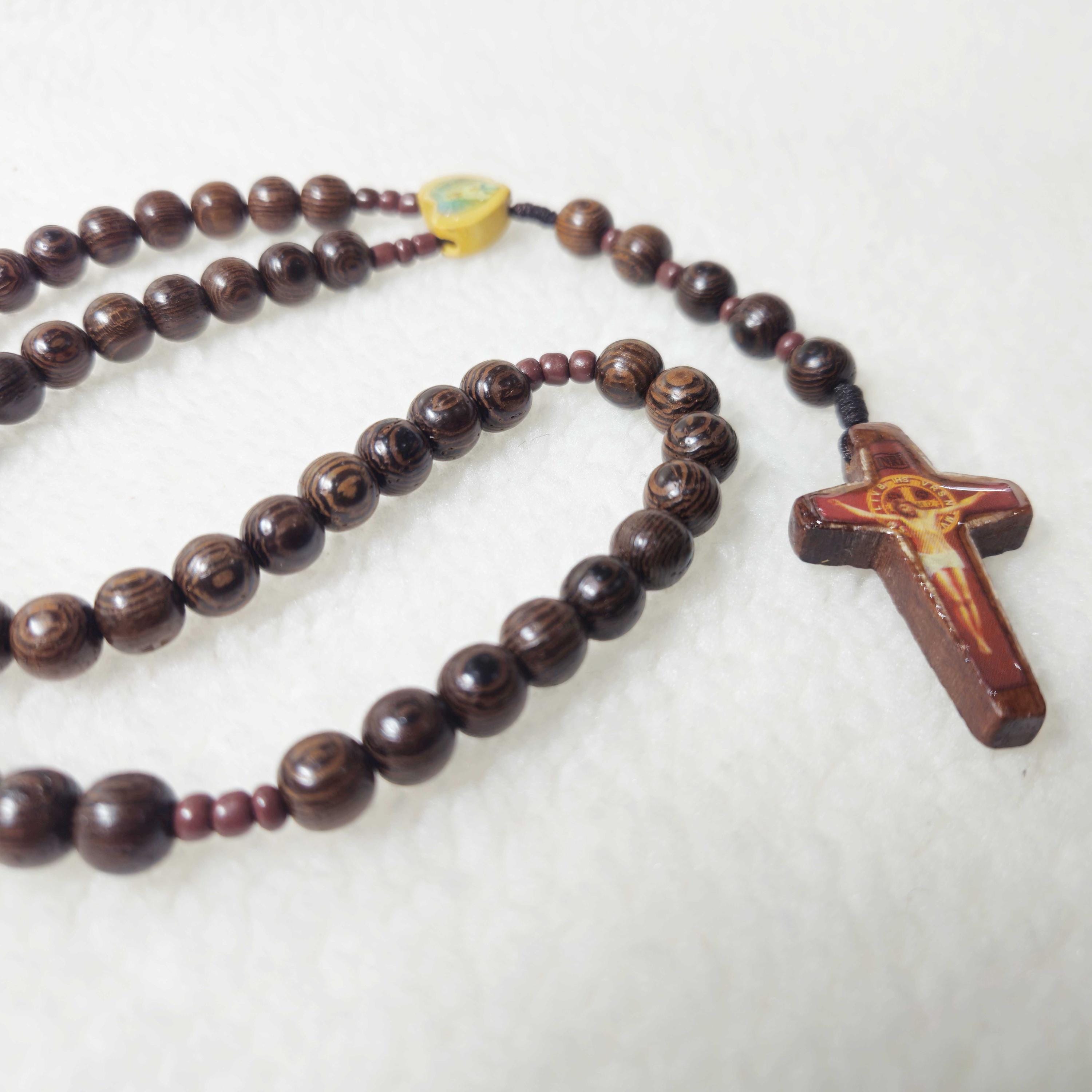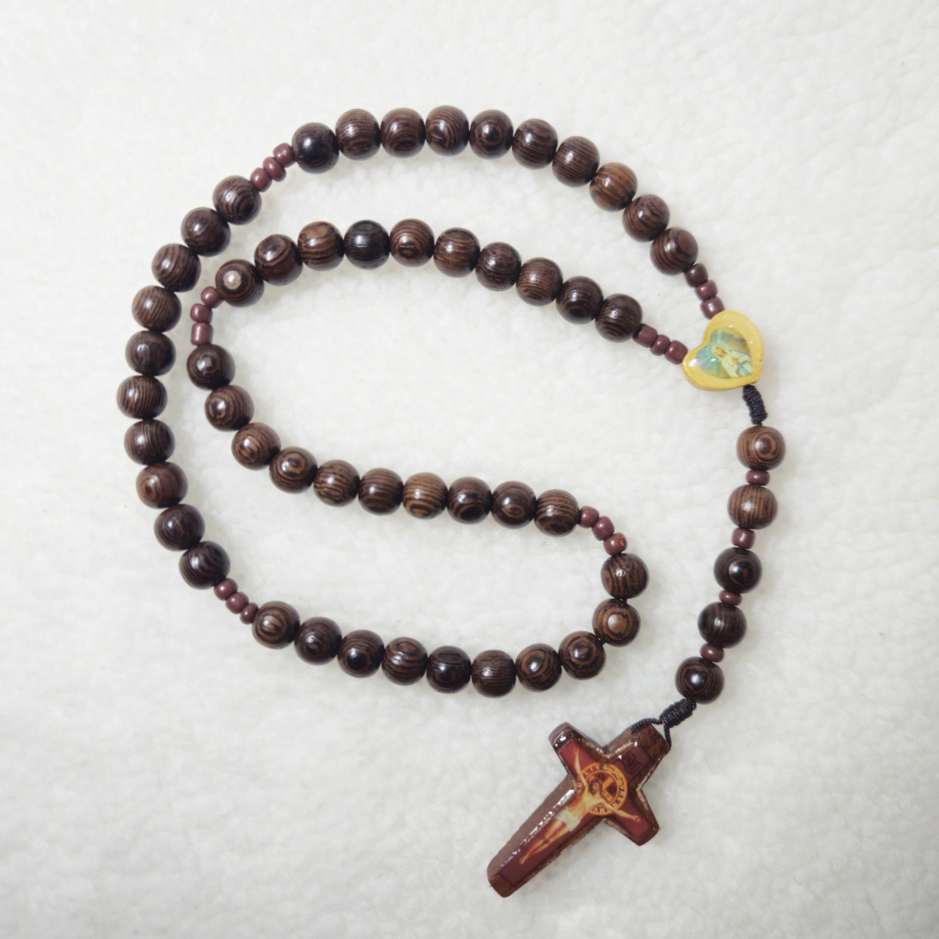 This beautifully crafted Rosary features 8mm green cypress wood beads, offering a smooth, natural feel and a warm, earthy look. Each bead is polished to highlight the character of cypress wood, making the Rosary comfortable to hold and perfect for daily prayer.
