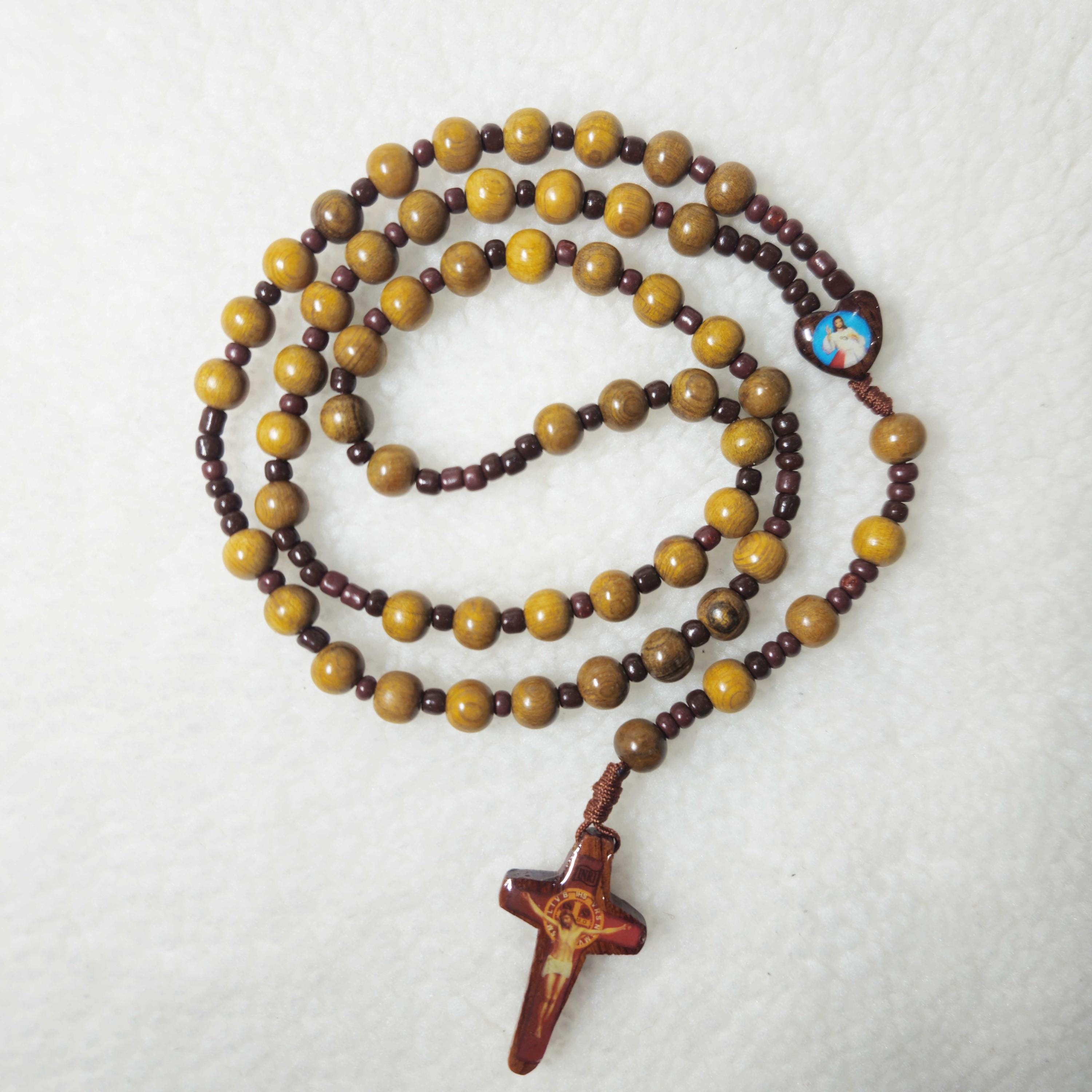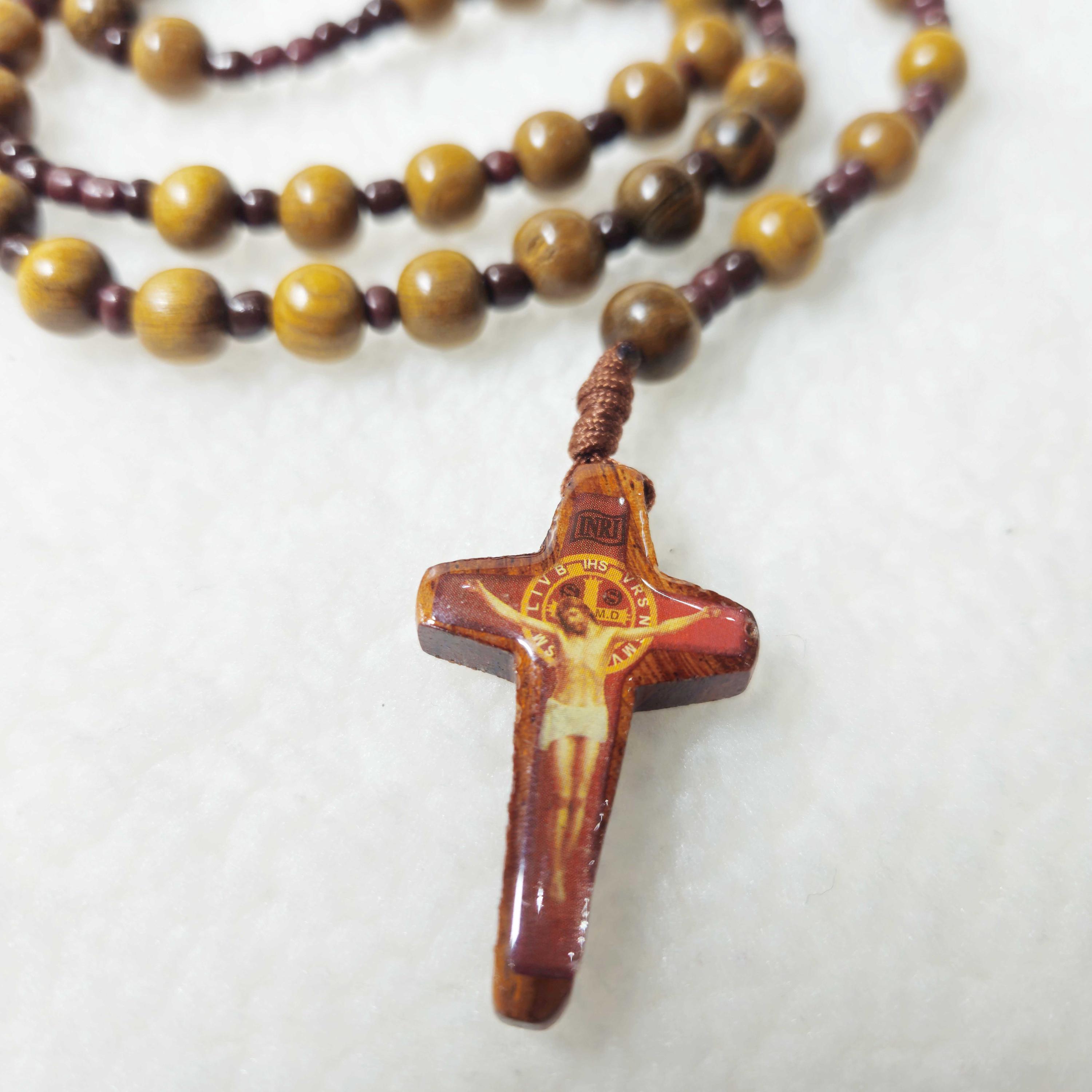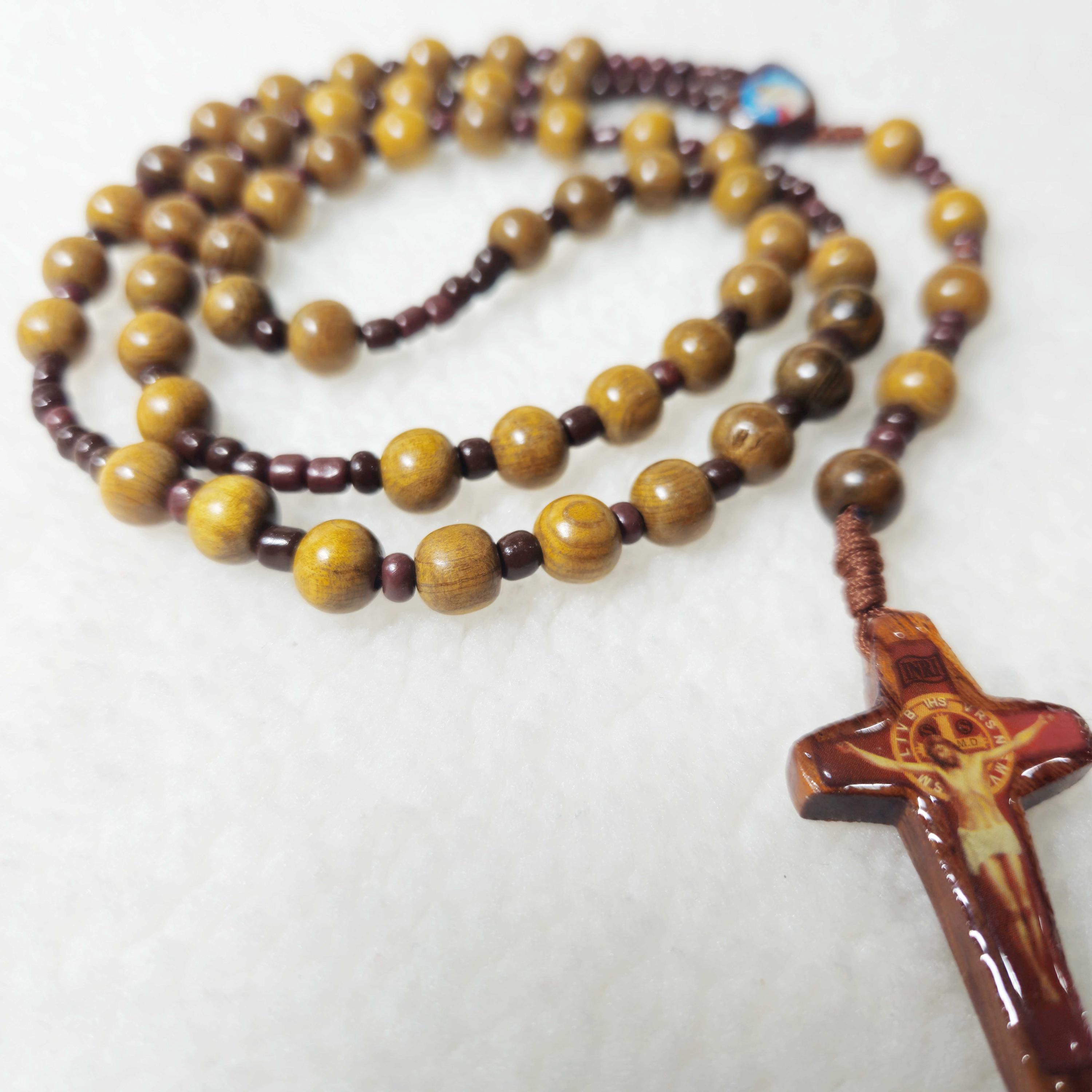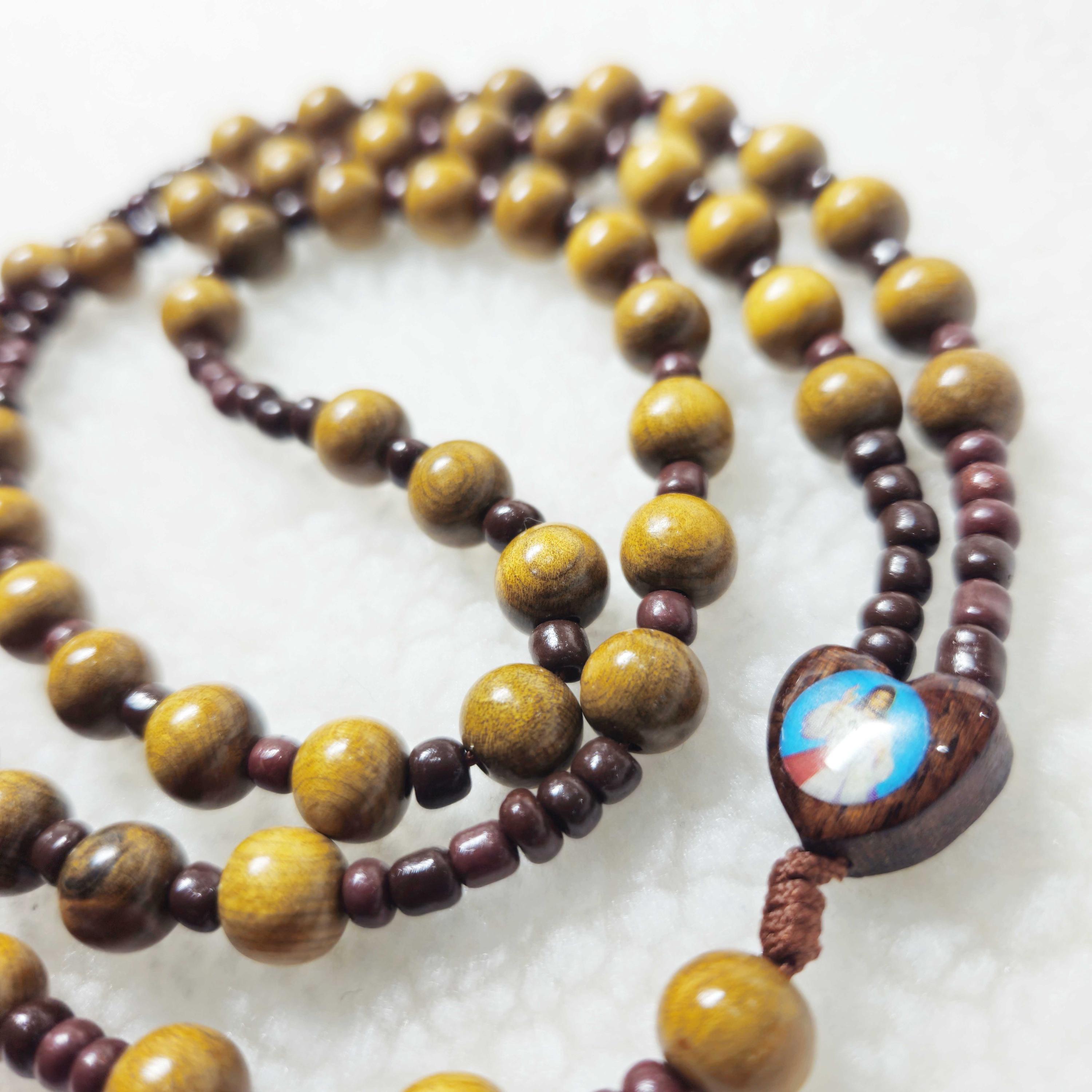 This handmade Catholic rosary features 8mm green cypress wood beads, offering a smooth, natural feel for prayer and meditation. The design is completed with a 1.6-inch crucifix, creating a meaningful and durable devotional piece.