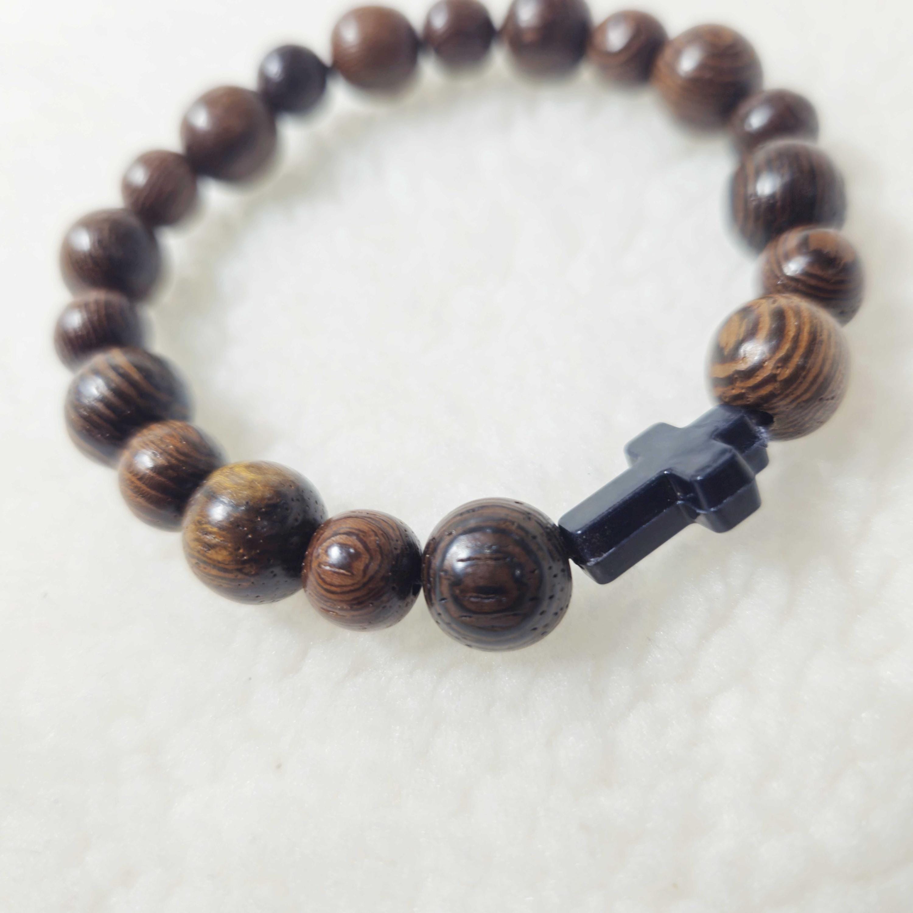 Black Cypress Wood Catholic Bracelet | Handmade Prayer Beads for Teens & Adults, Rosary Bracelet Gift