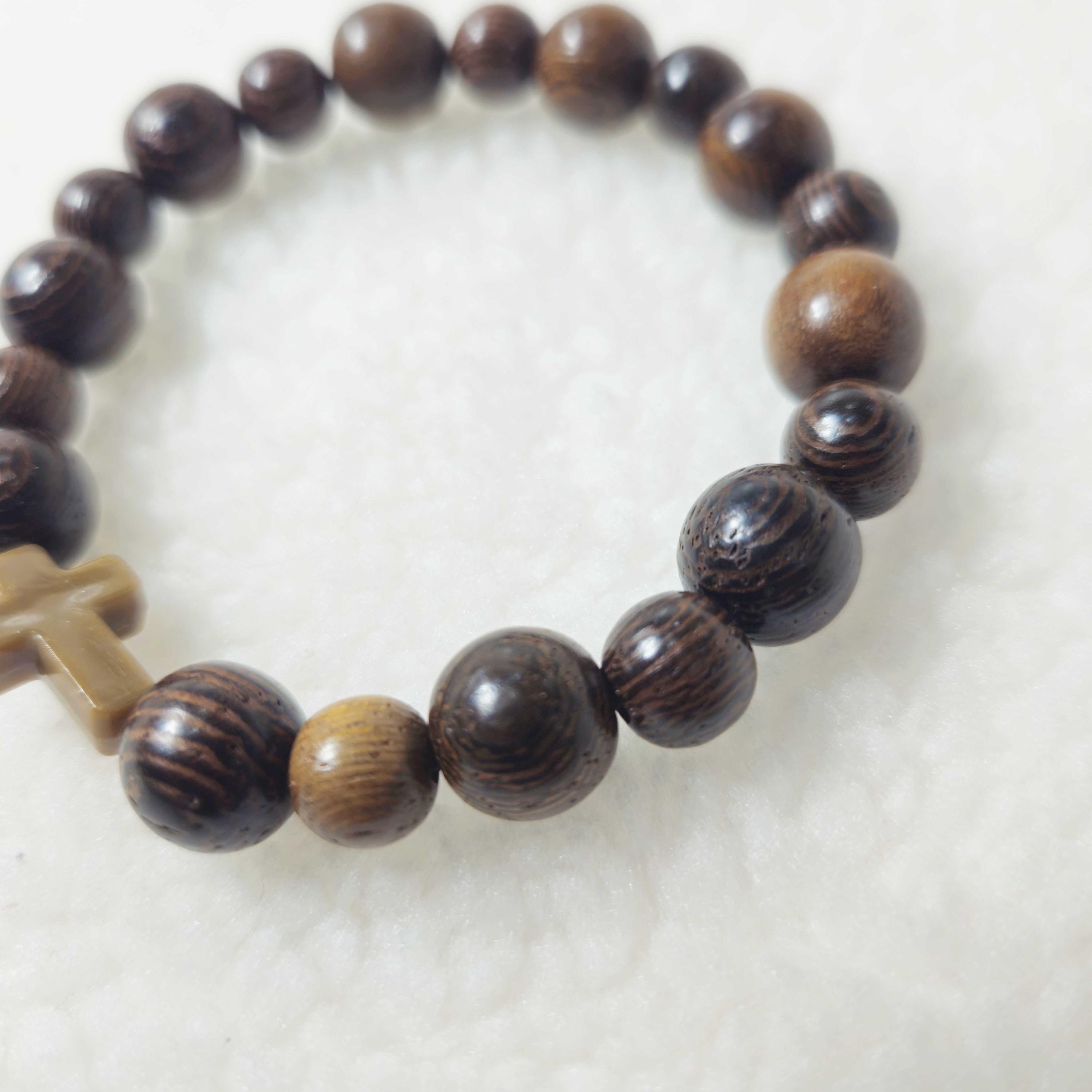 This elegant Catholic bracelet is handcrafted from black green cypress wood beads (10mm) and designed for prayer, meditation, and devotion. With a comfortable fit, it is ideal for teens and adults with wrist circumferences approximately 15–16 cm (5.9–6.3 inches). Perfect as a meaningful Catholic gift for birthdays, Christmas, confirmations, or spiritual milestones. Each bracelet is carefully crafted to be a treasured keepsake, encouraging daily prayer and devotion while serving as a beautiful expression of faith.