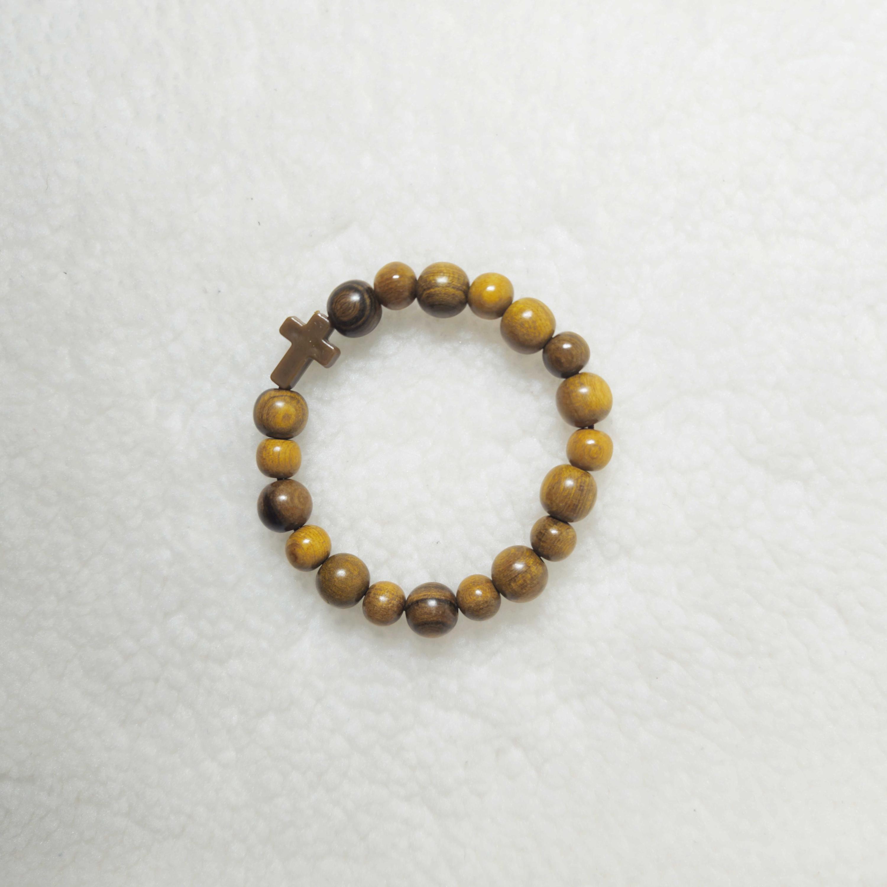This beautiful Catholic bracelet is handcrafted with yellow green cypress wood beads (10mm) and accented with 8mm decorative beads, perfect for prayer and devotion. The bracelet is ideal for children and teens with wrist circumferences approximately 13–14 cm (5.1–5.5 inches). A thoughtful gift for birthdays, Christmas, religious milestones, or daily prayer. Each bracelet is carefully made to be a cherished keepsake, helping young believers cultivate faith and devotion in a meaningful way.
